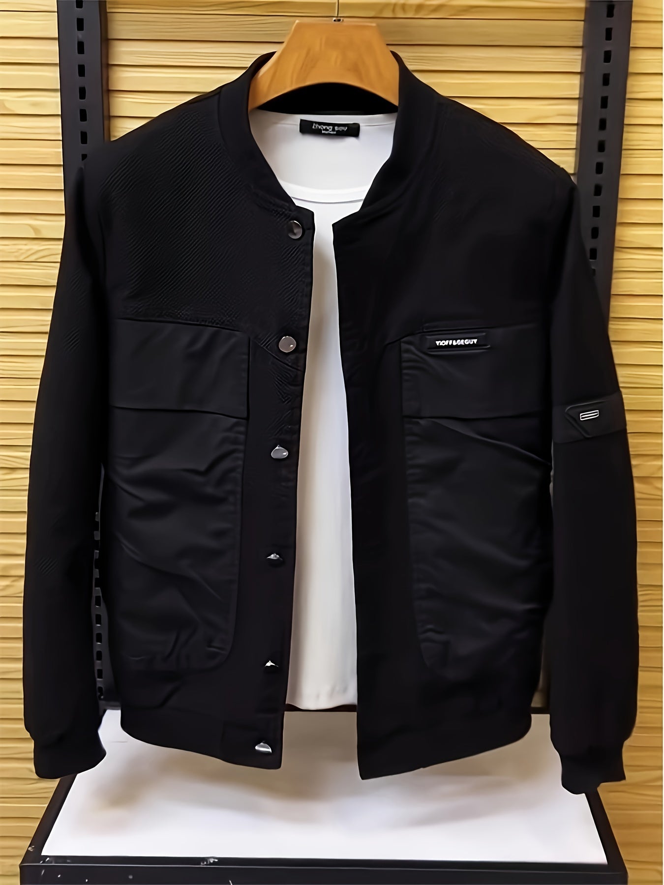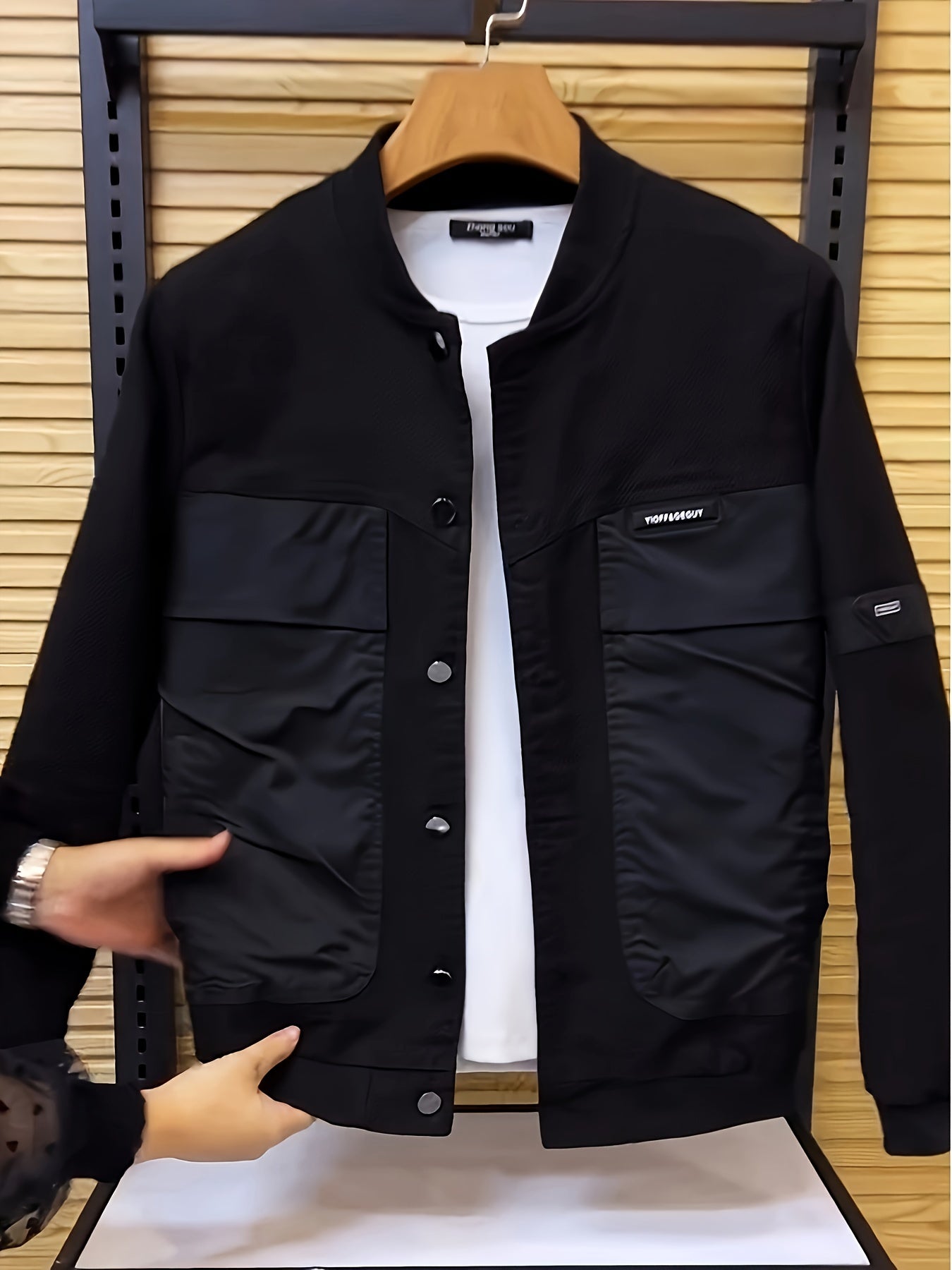 Տղամարդկանց առօրյա սպորտային հողմապաշտպան բաճկոն, բացօթյա միաձույլ դիզայն, գարուն/աշուն նորաձև բազմակողմանի բեյսբոլի օձիքով բաճկոն գրպաններով