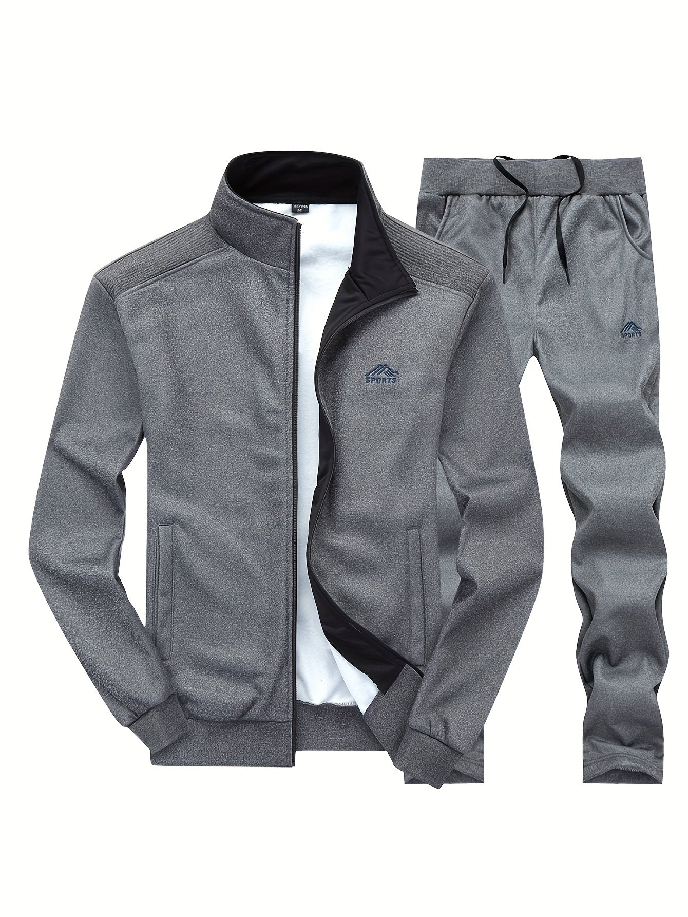 Men'S Casual Sportswear Set - Black Zip-Up Jacket & Pants with White Logo, Regular Fit, Spring/Fall Collection, Non-Stretch Fabric, Casual Attire|Zipup Jacket|Pants with Logo, Sweater Pants
