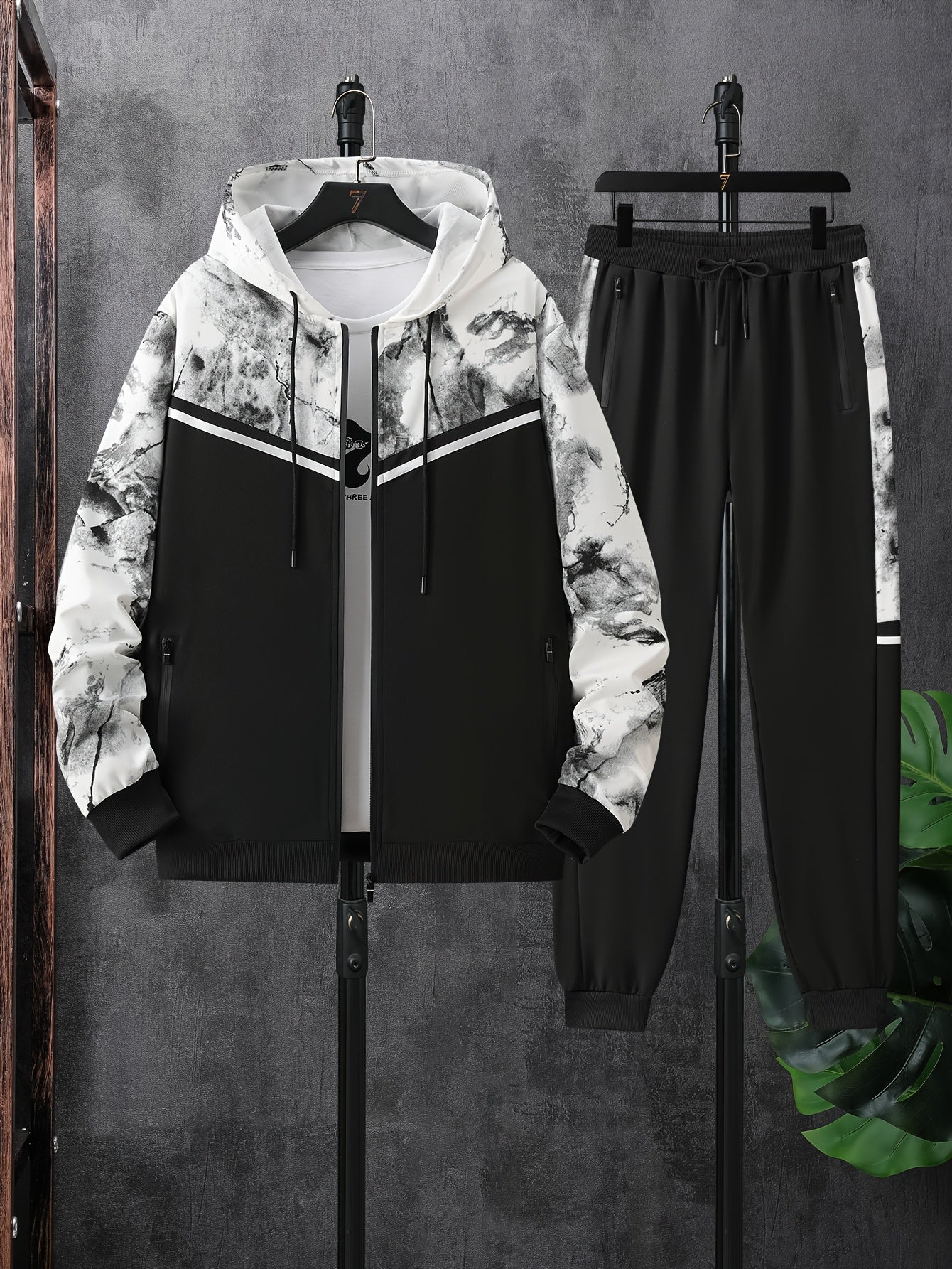 Տղամարդկանց առօրյա սպորտային հագուստի հավաքածու. Նոր ամառային նորաձև գլխարկով բաճկոն՝ երկու մասից բաղկացած հանդերձանք
