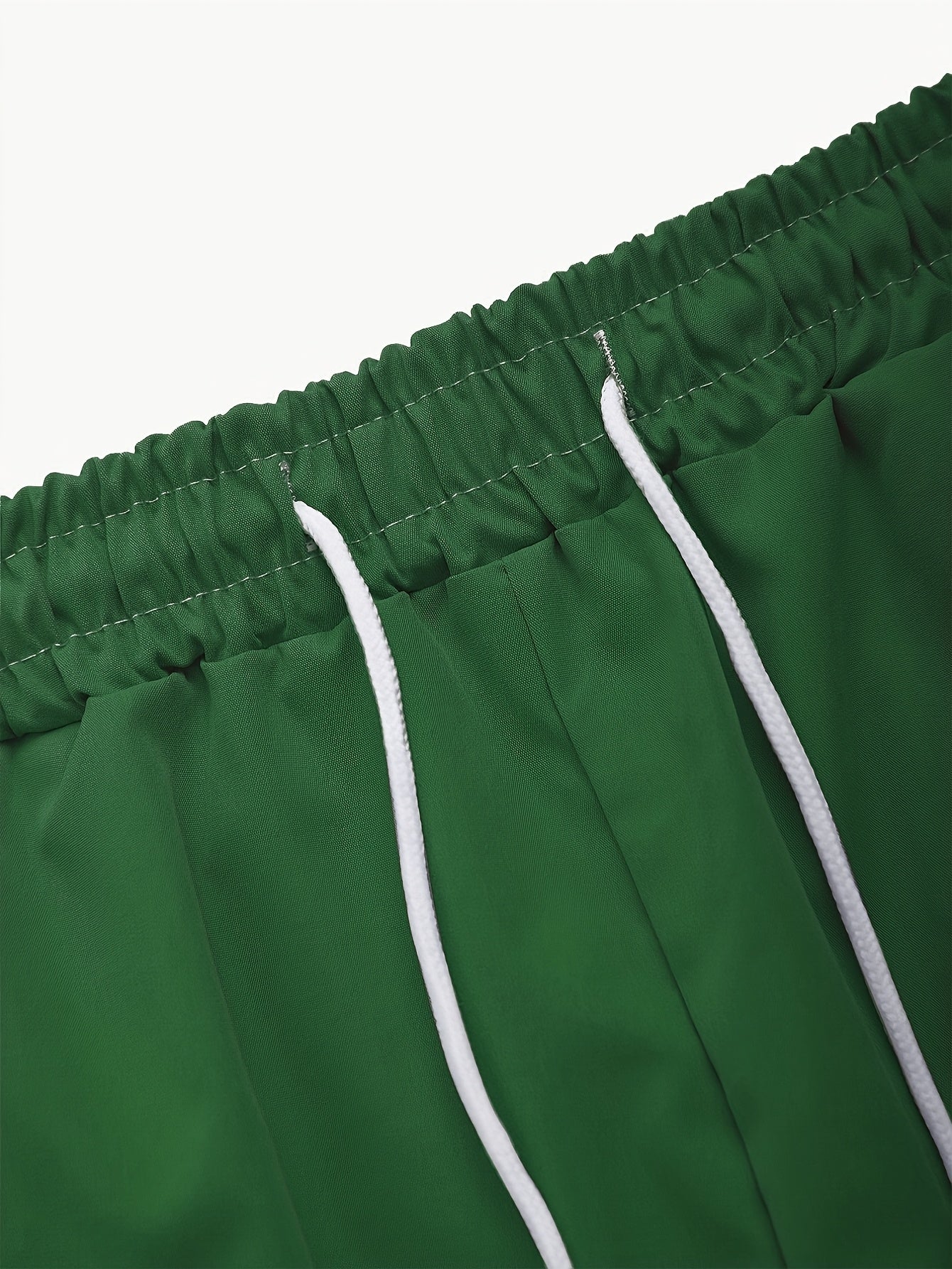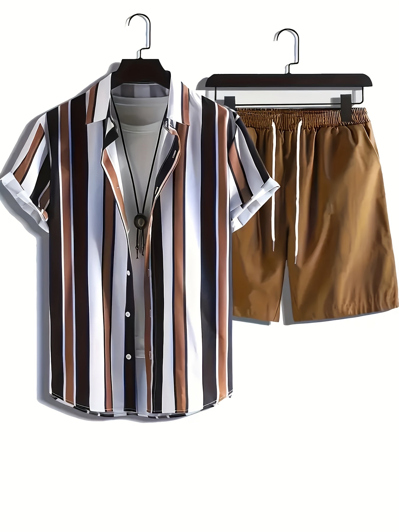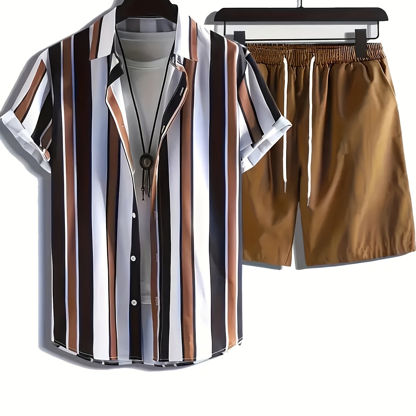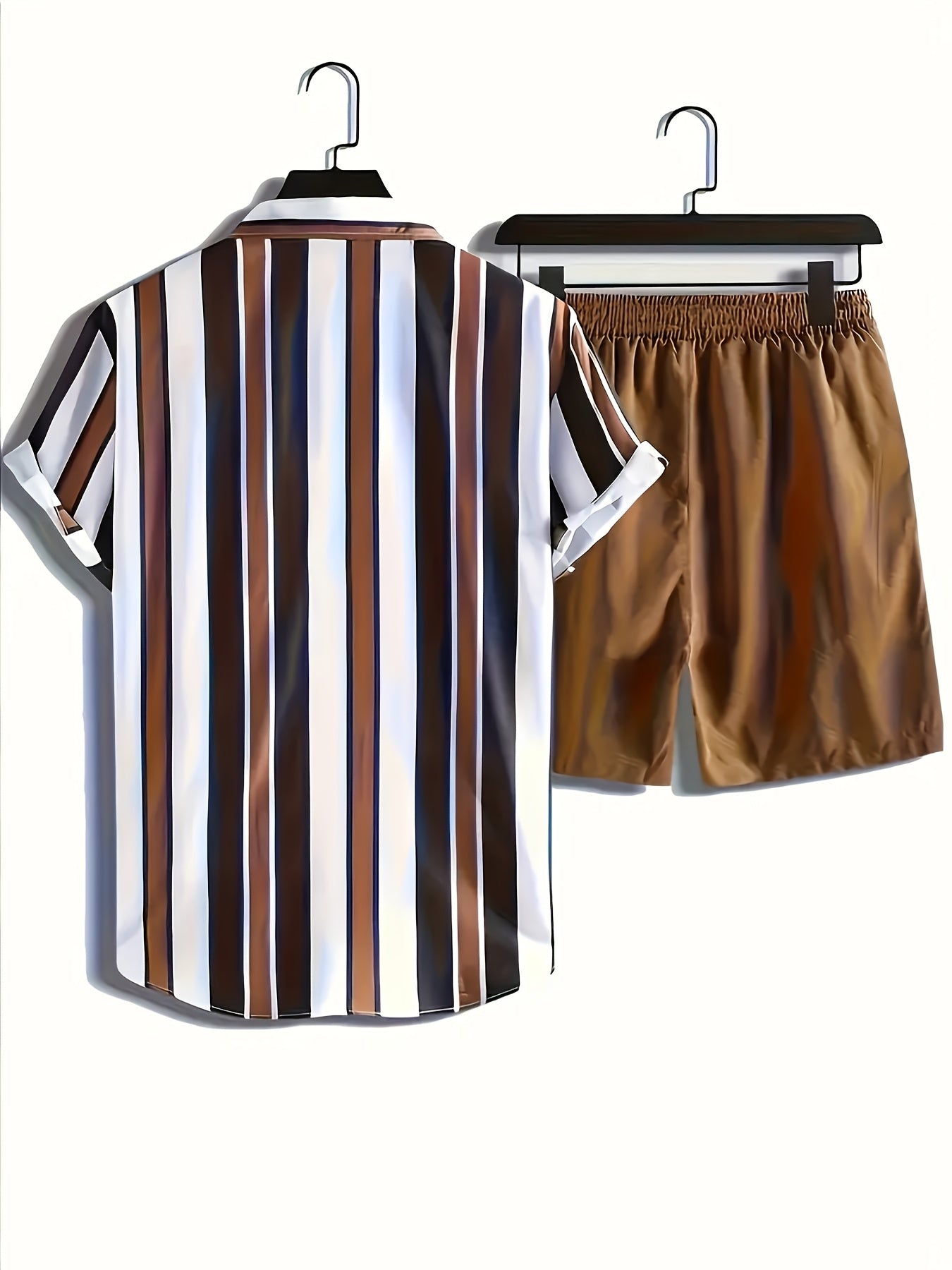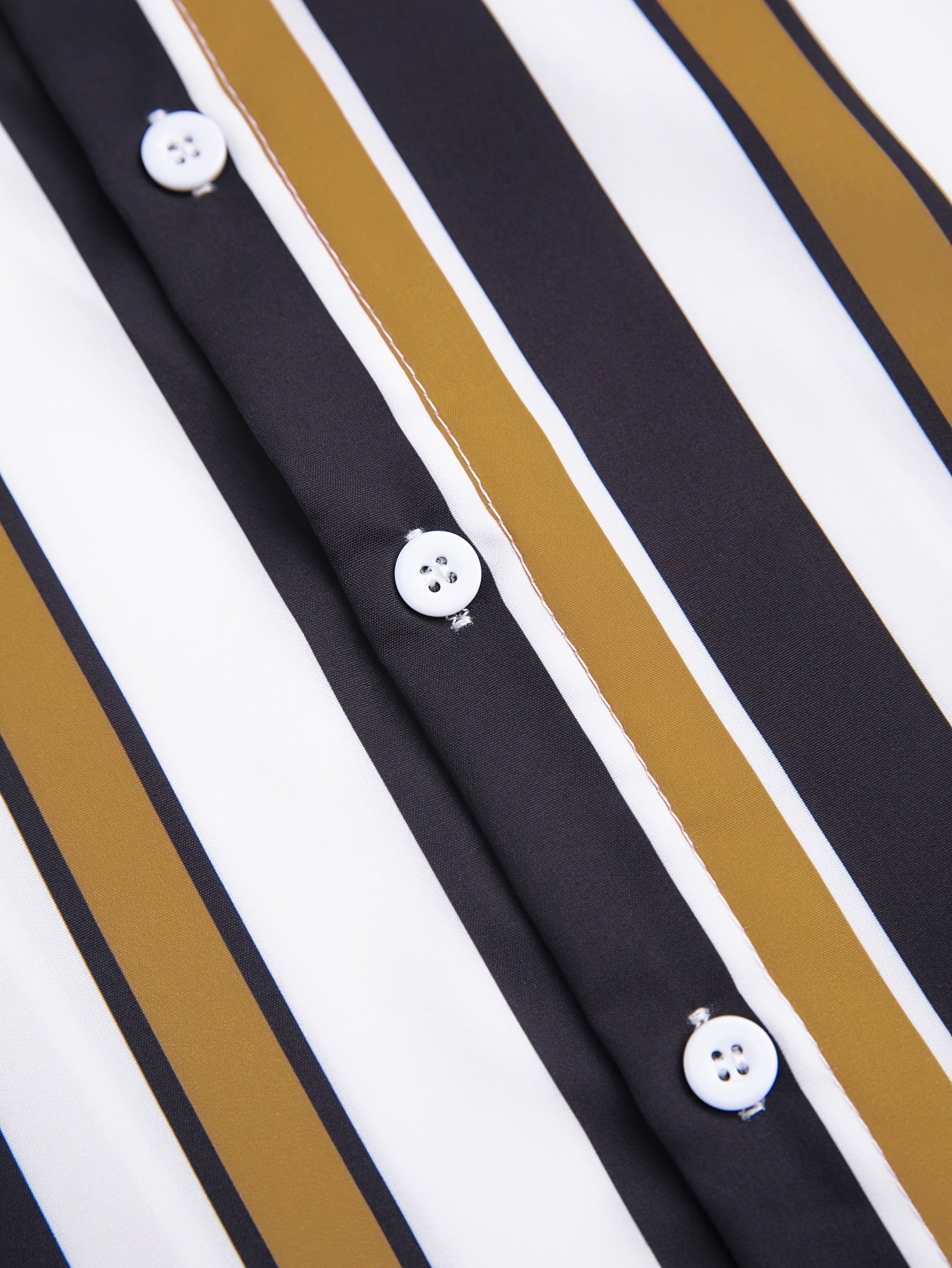 Տղամարդկանց սովորական գծավոր կոճակներով վերնաշապիկ և շորտեր սև, կանաչ և սպիտակ գույներով - թեթև պոլիեսթեր, լվացվող մեքենայում՝ բոլոր սեզոնների հարմարավետության համար