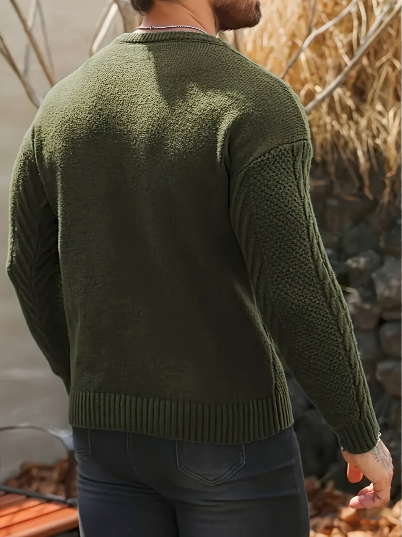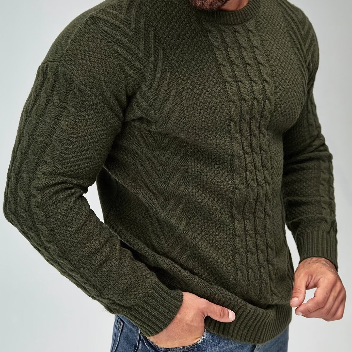 Men's Classic Autumn/Winter Textured T-Shirt, Round Neck Long Sleeve Knit Sweater, Fashion Casual Top, Suitable for Casual and Daily Wear, Men's Winter Clothing, Men's Sweater, Christmas Sweater, Men's Christmas Sweater, Wint
