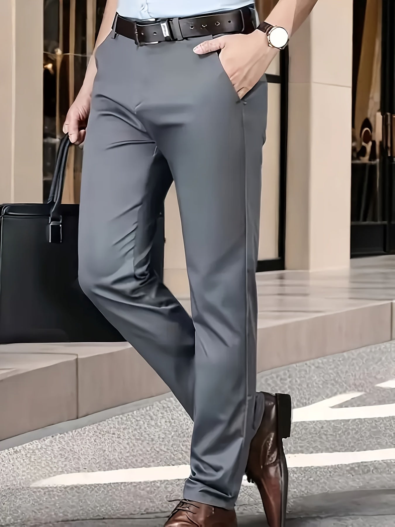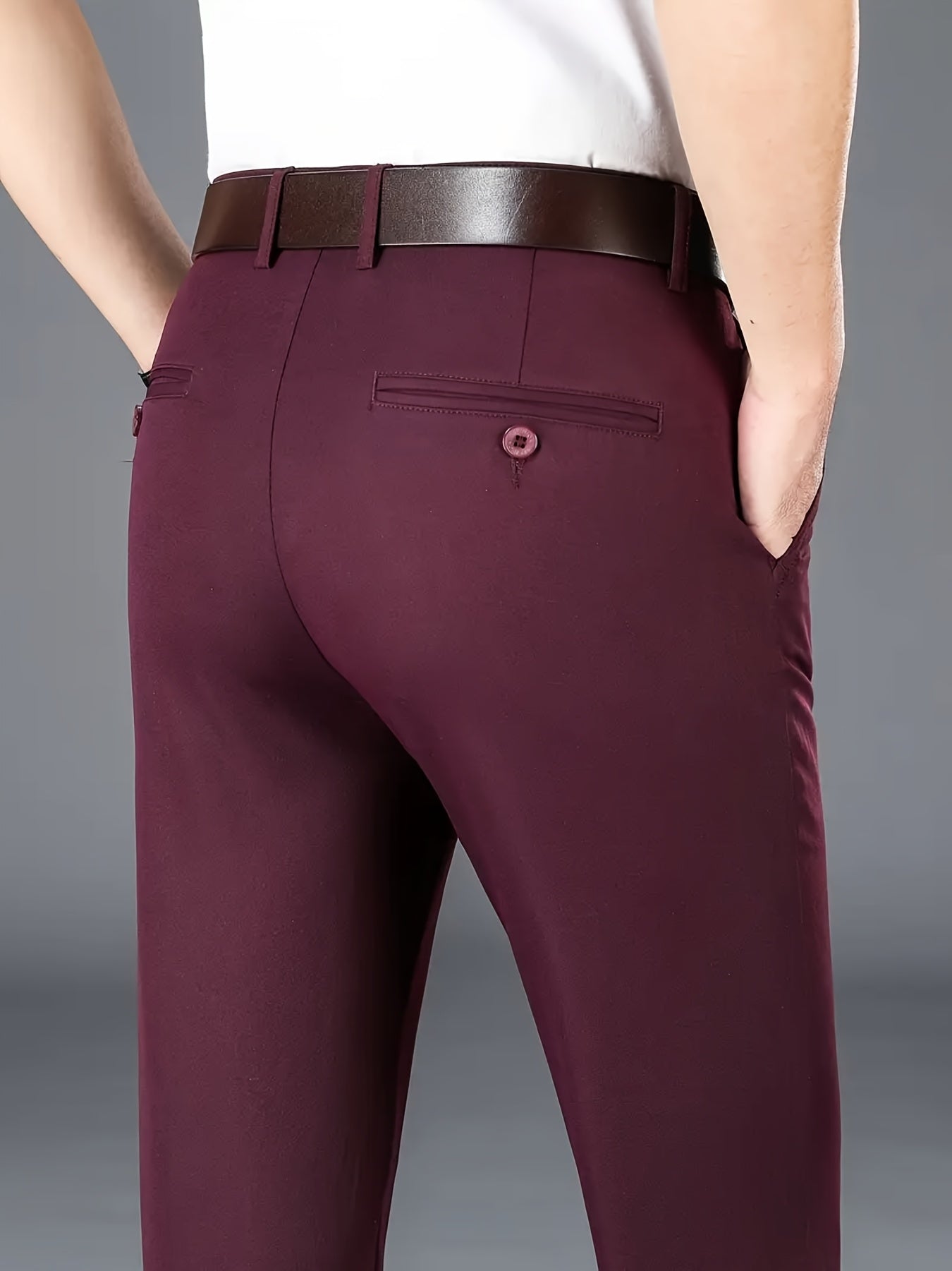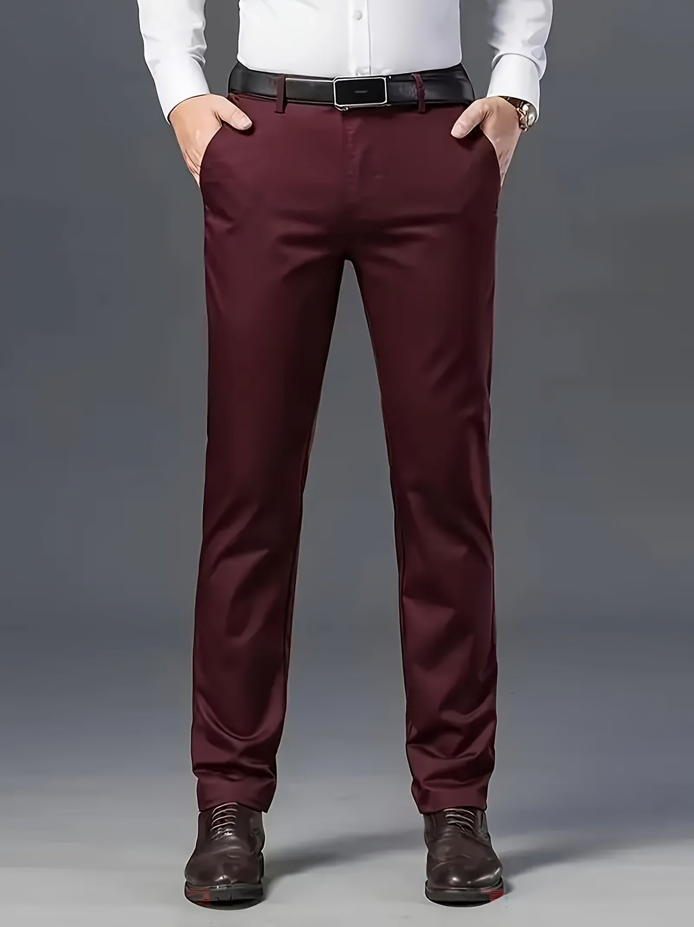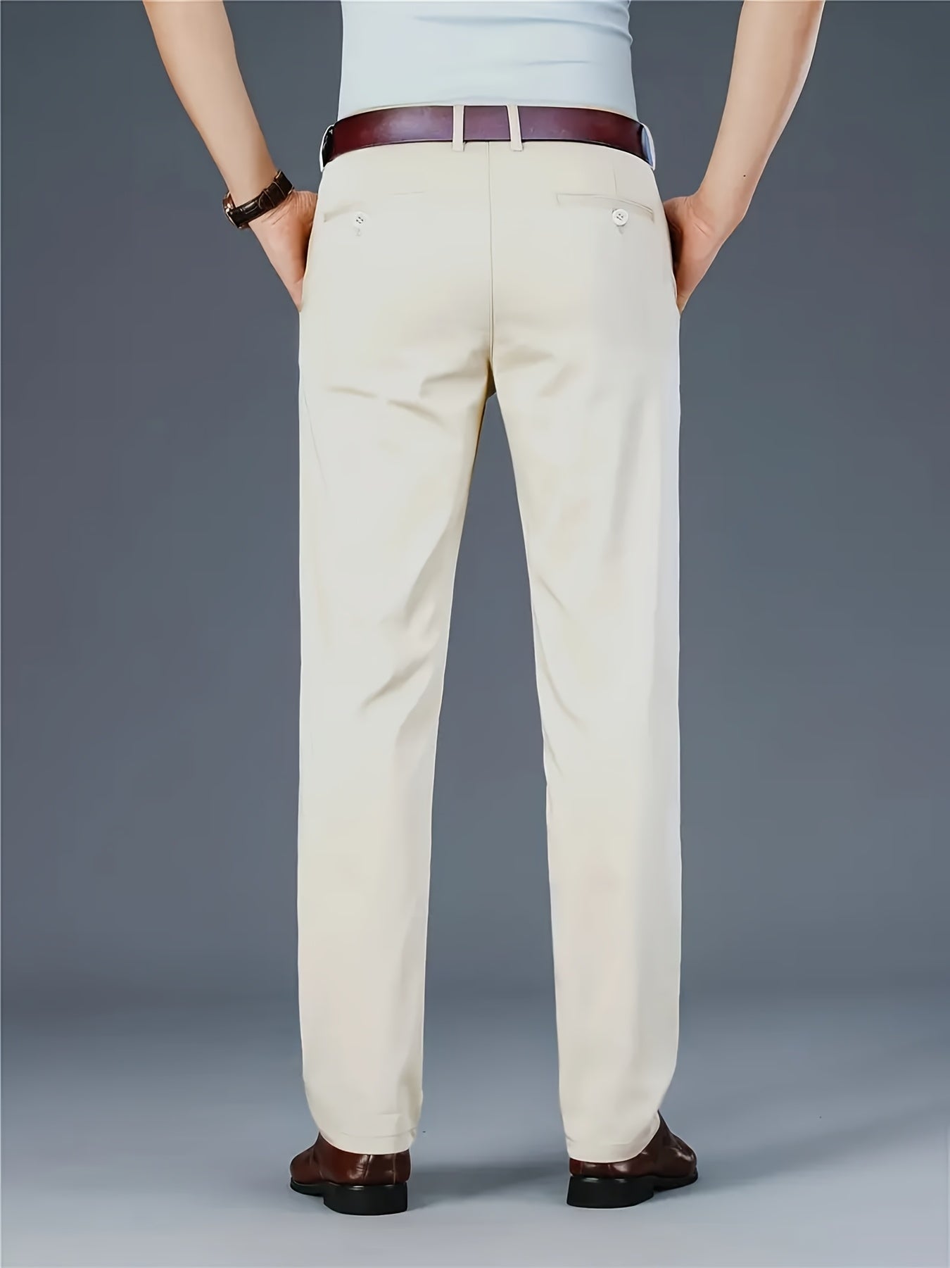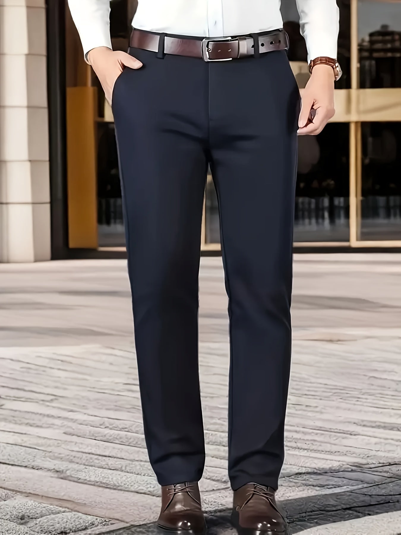 Տղամարդկանց դասական բիզնես շալվար, միաձույլ գույնի պատահական տաբատ, 100% պոլիեսթեր, սովորական, կայծակաճարմանդով, ամենօրյա հագուստի և նվերների համար, բոլոր սեզոնային, բոլոր սեզոնային տաբատներ | Շրջանակի խազ դիզայն | Պոլիեսթեր տաբատ