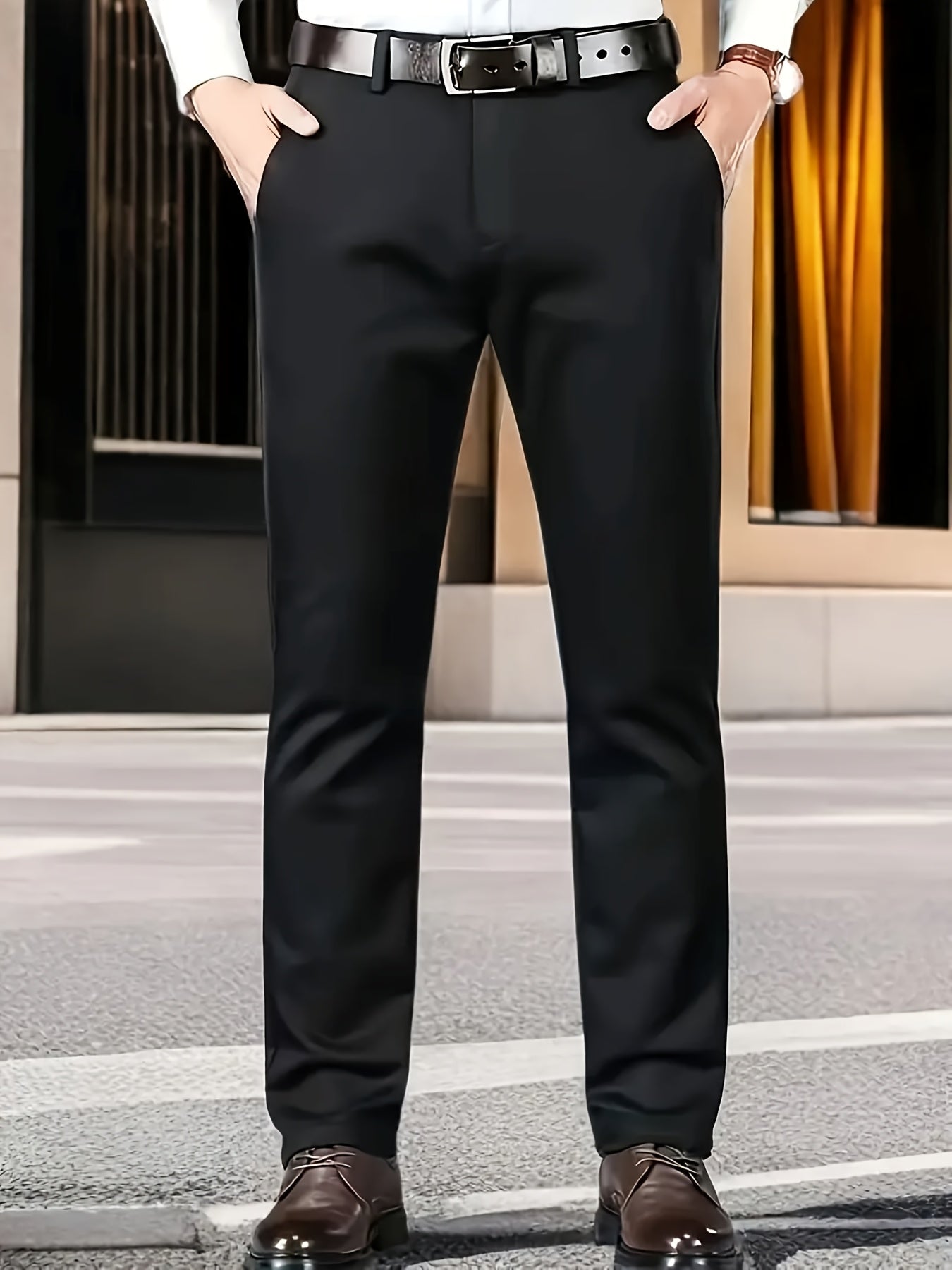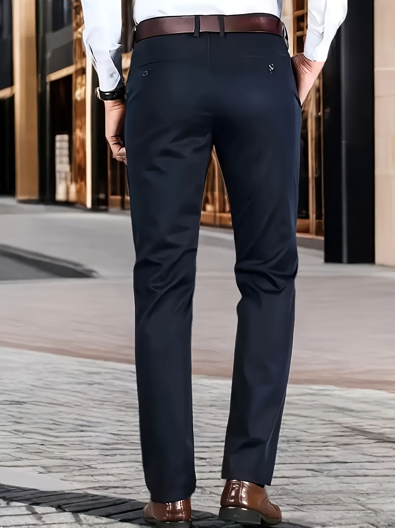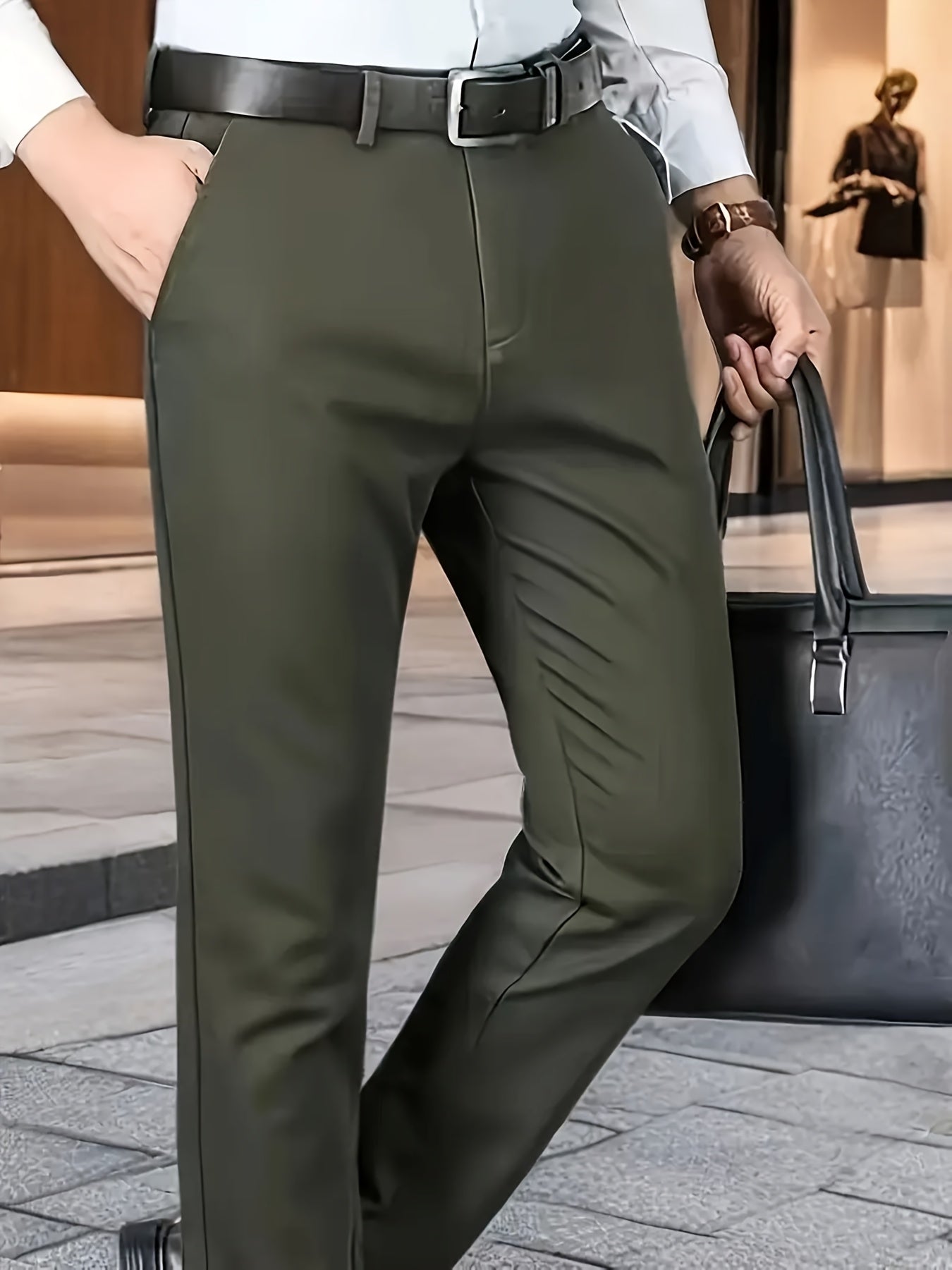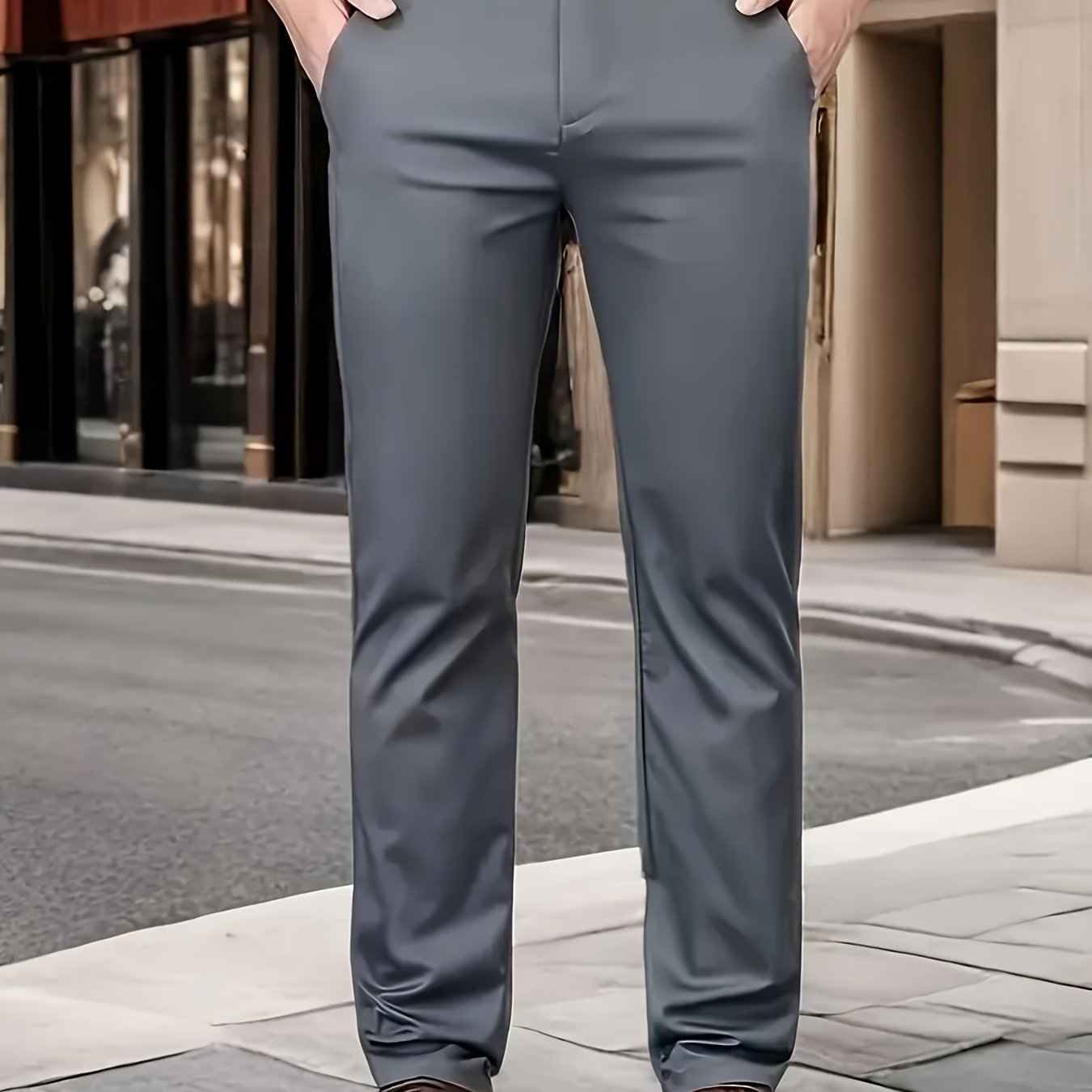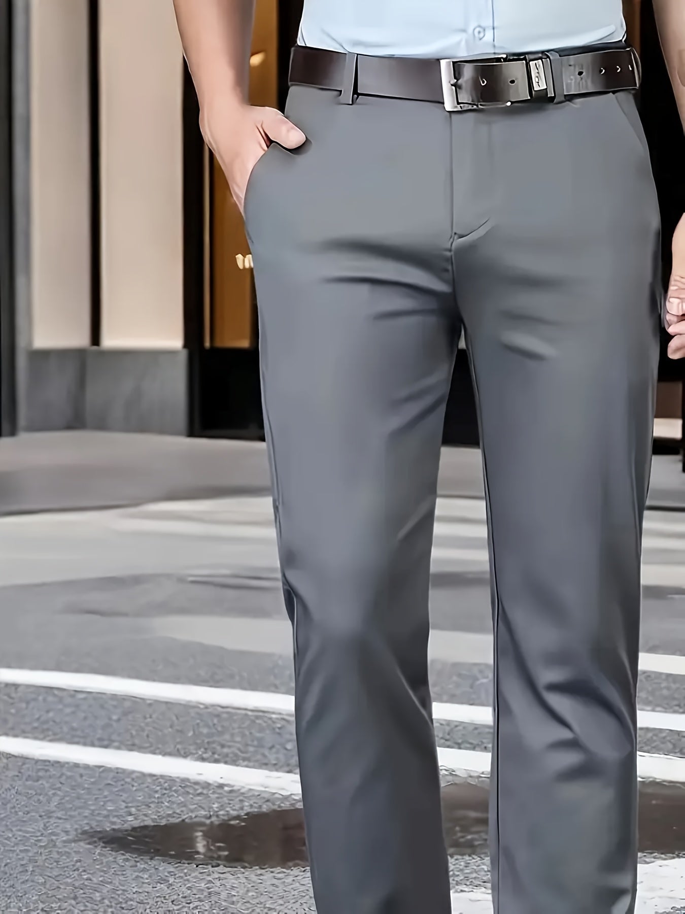Տղամարդկանց դասական բիզնես շալվար, միաձույլ գույնի պատահական տաբատ, 100% պոլիեսթեր, սովորական, կայծակաճարմանդով, ամենօրյա հագուստի և նվերների համար, բոլոր սեզոնային, բոլոր սեզոնային տաբատներ | Շրջանակի խազ դիզայն | Պոլիեսթեր տաբատ