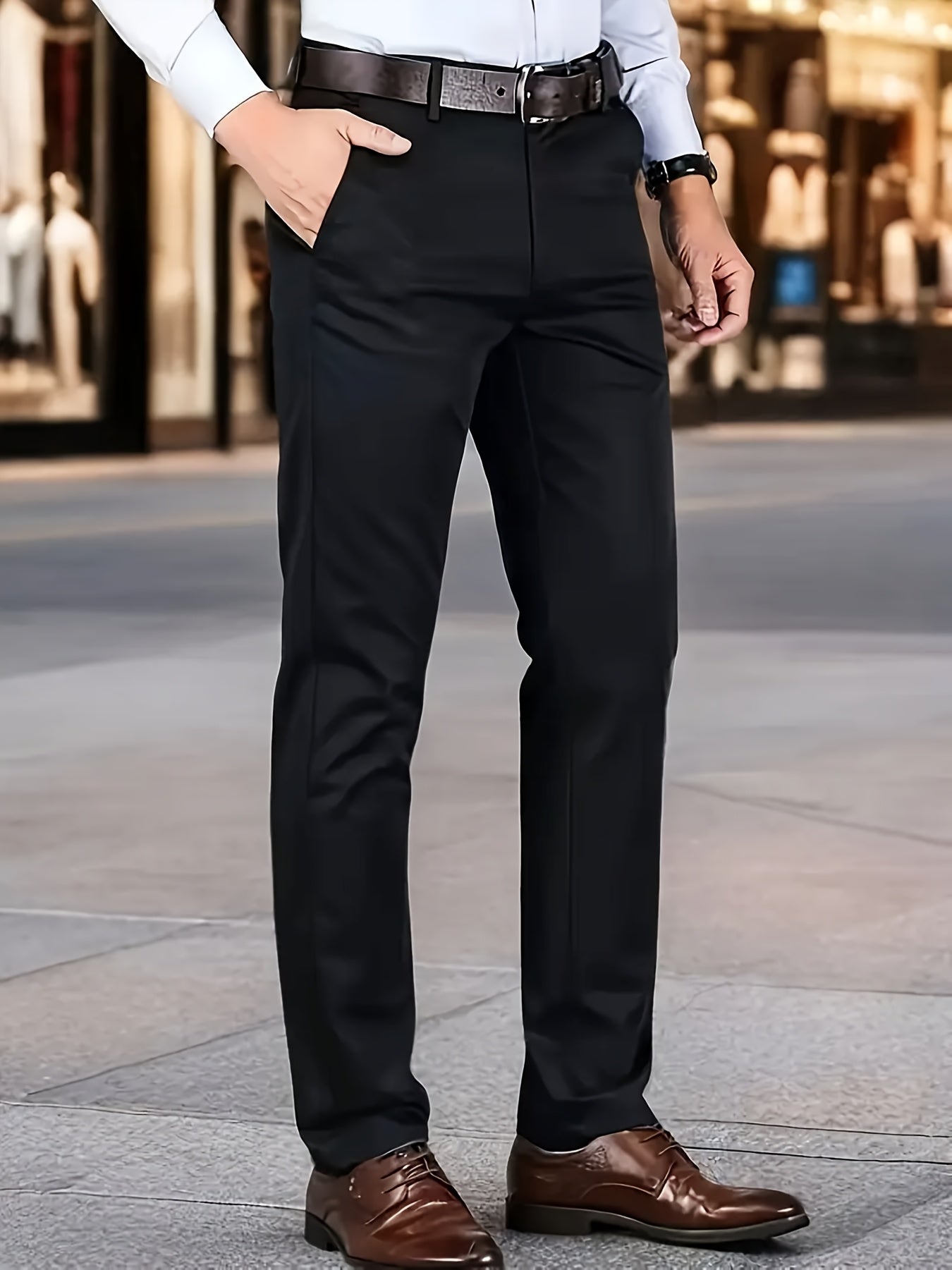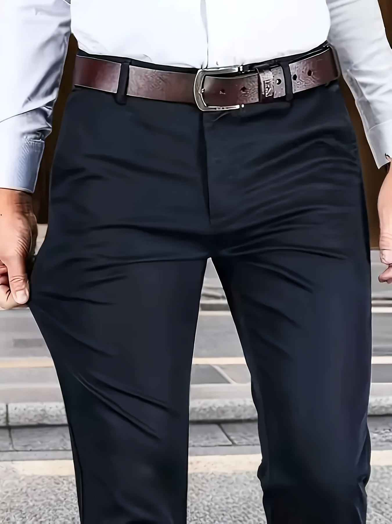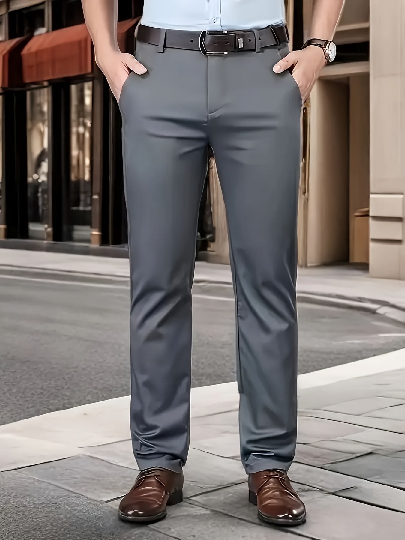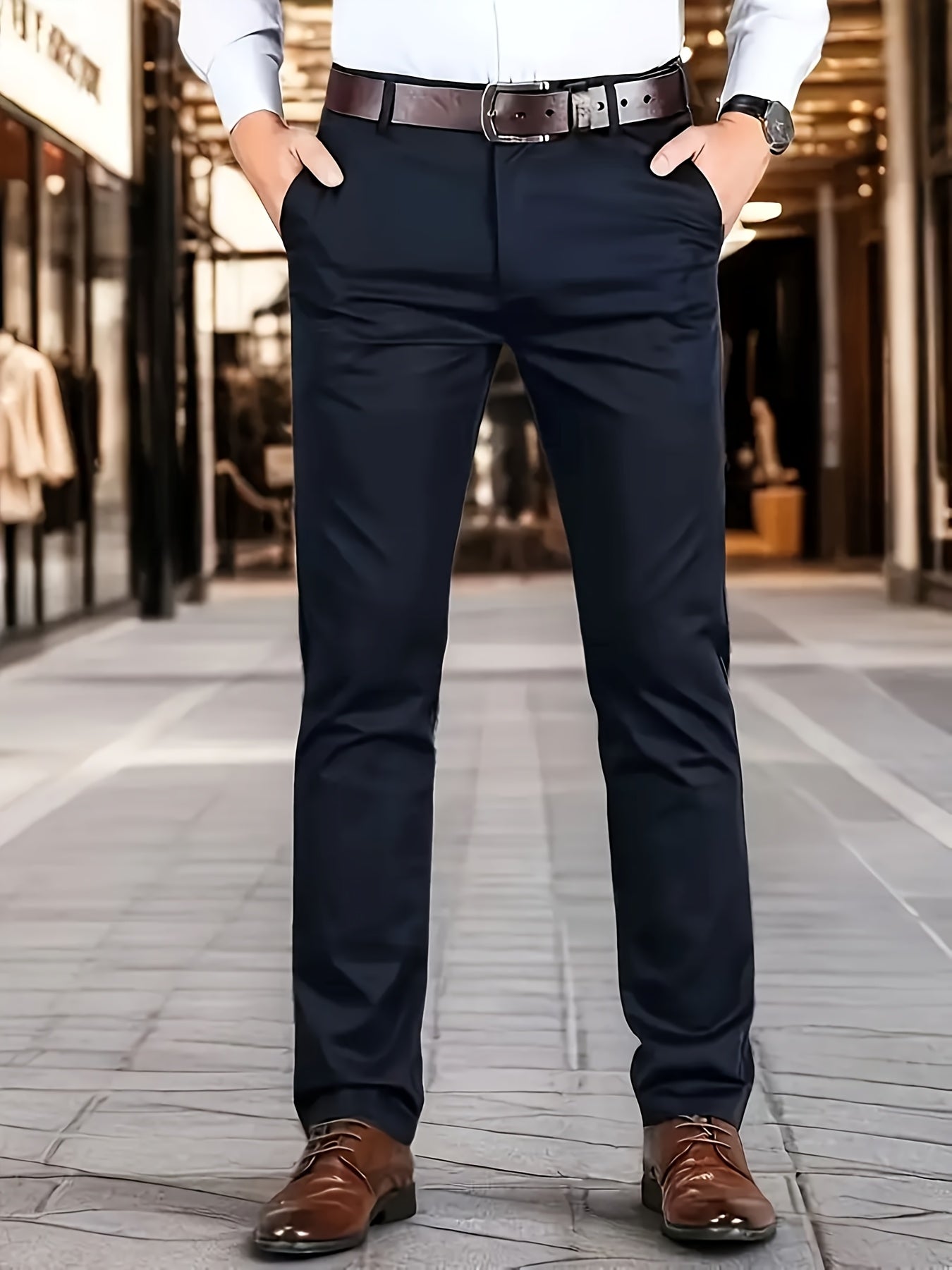 Տղամարդկանց դասական բիզնես շալվար, միաձույլ գույնի պատահական տաբատ, 100% պոլիեսթեր, սովորական, կայծակաճարմանդով, ամենօրյա հագուստի և նվերների համար, բոլոր սեզոնային, բոլոր սեզոնային տաբատներ | Շրջանակի խազ դիզայն | Պոլիեսթեր տաբատ