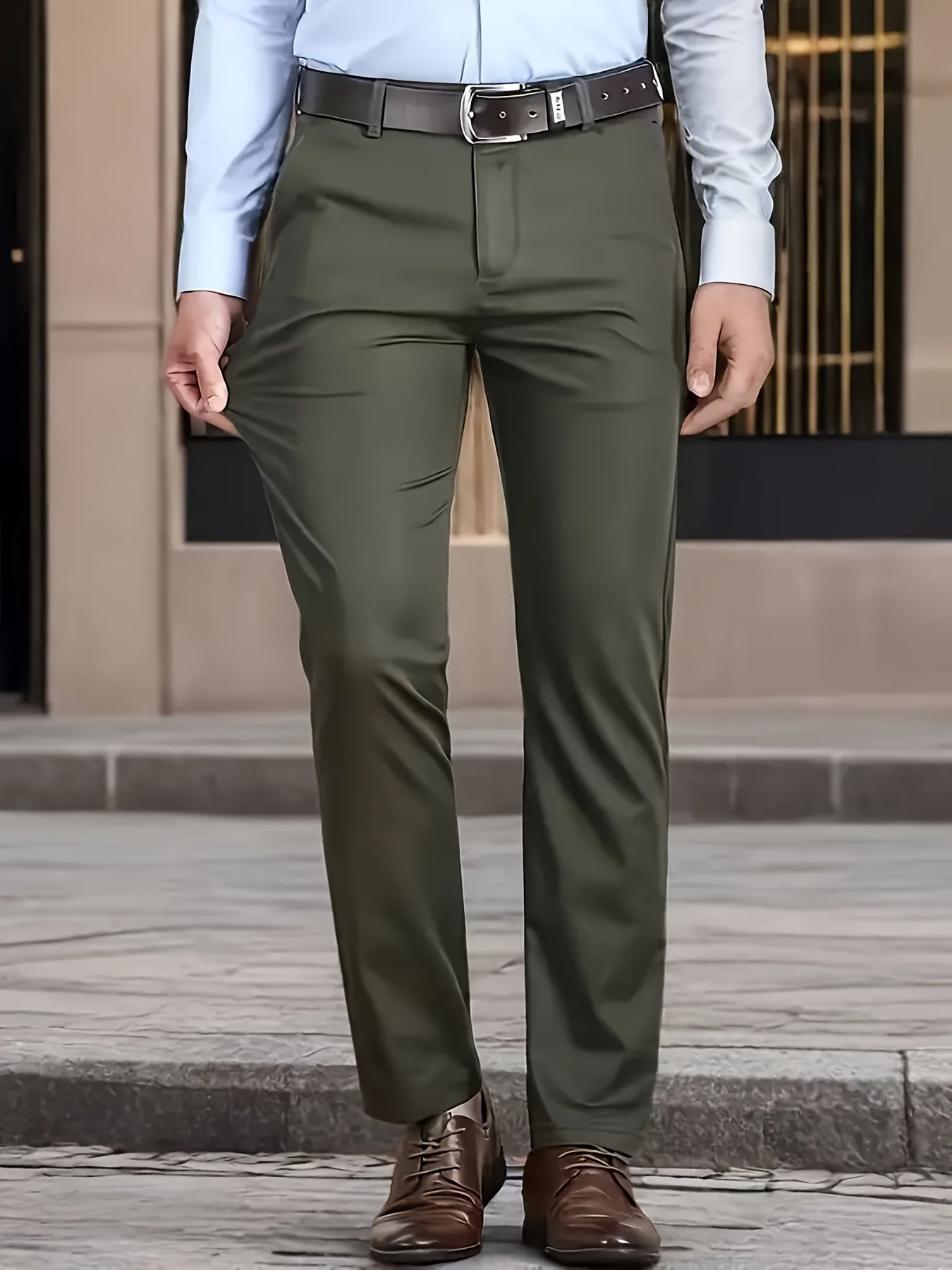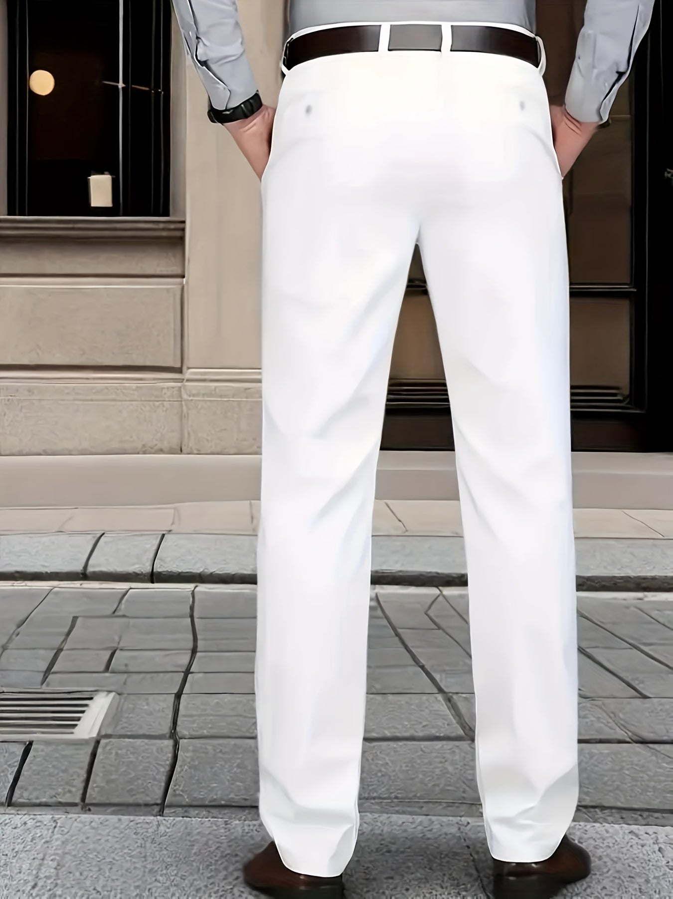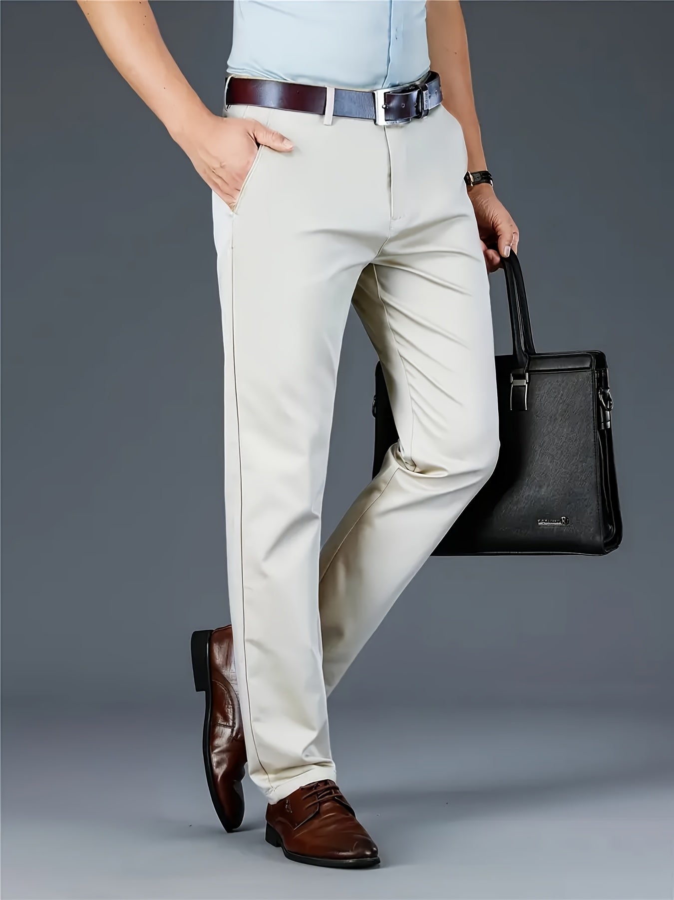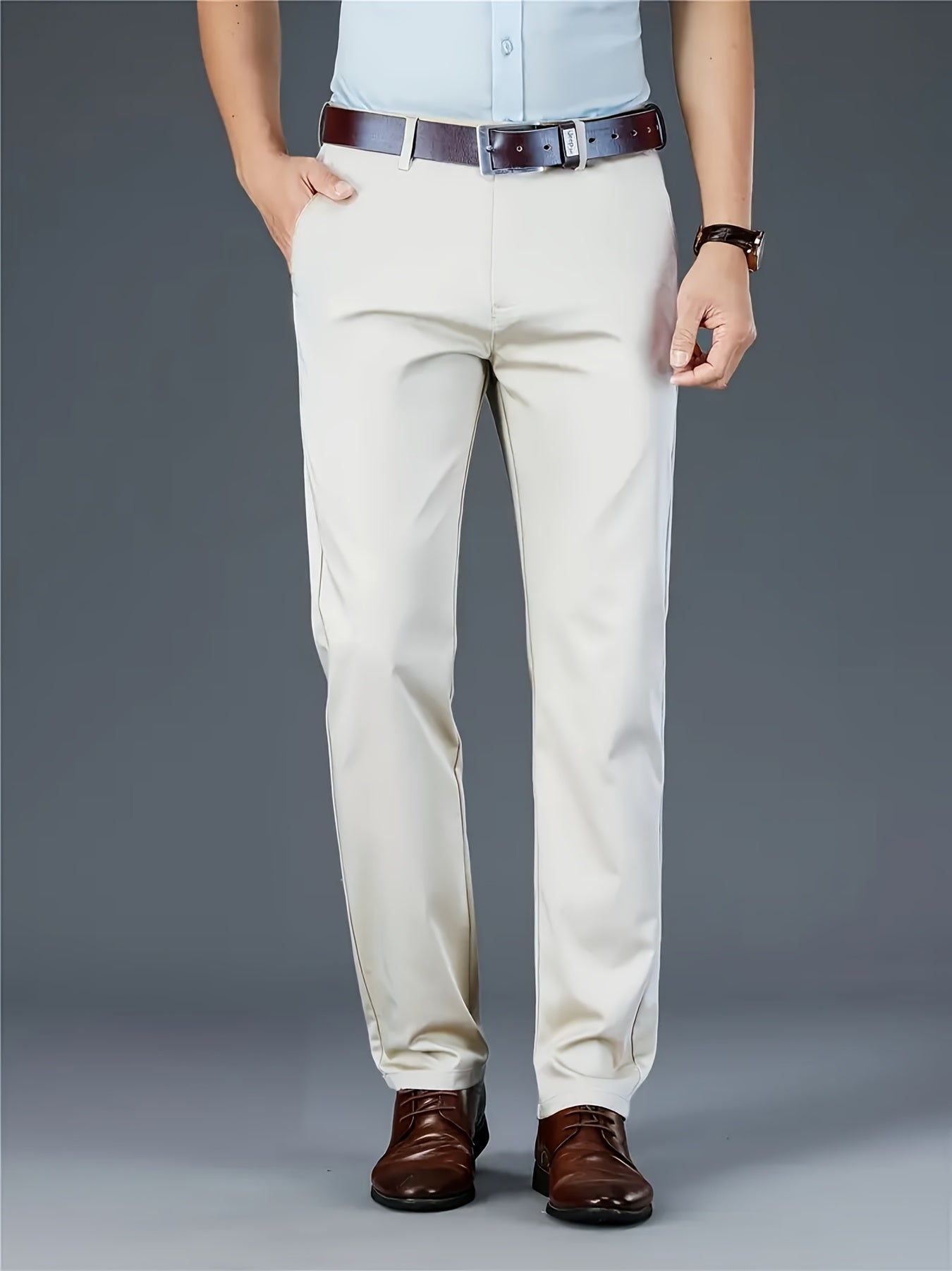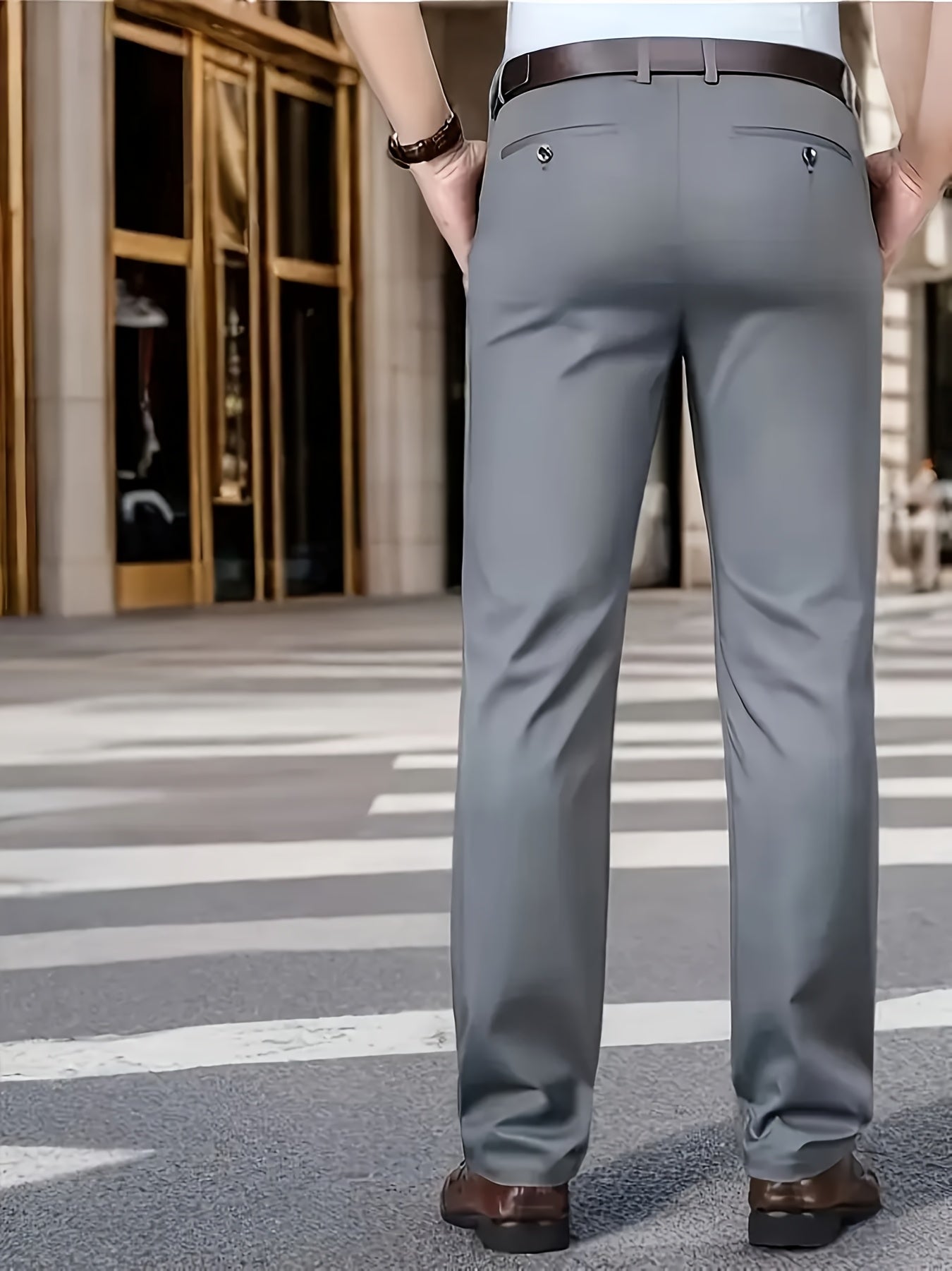 Տղամարդկանց դասական բիզնես շալվար, միաձույլ գույնի պատահական տաբատ, 100% պոլիեսթեր, սովորական, կայծակաճարմանդով, ամենօրյա հագուստի և նվերների համար, բոլոր սեզոնային, բոլոր սեզոնային տաբատներ | Շրջանակի խազ դիզայն | Պոլիեսթեր տաբատ