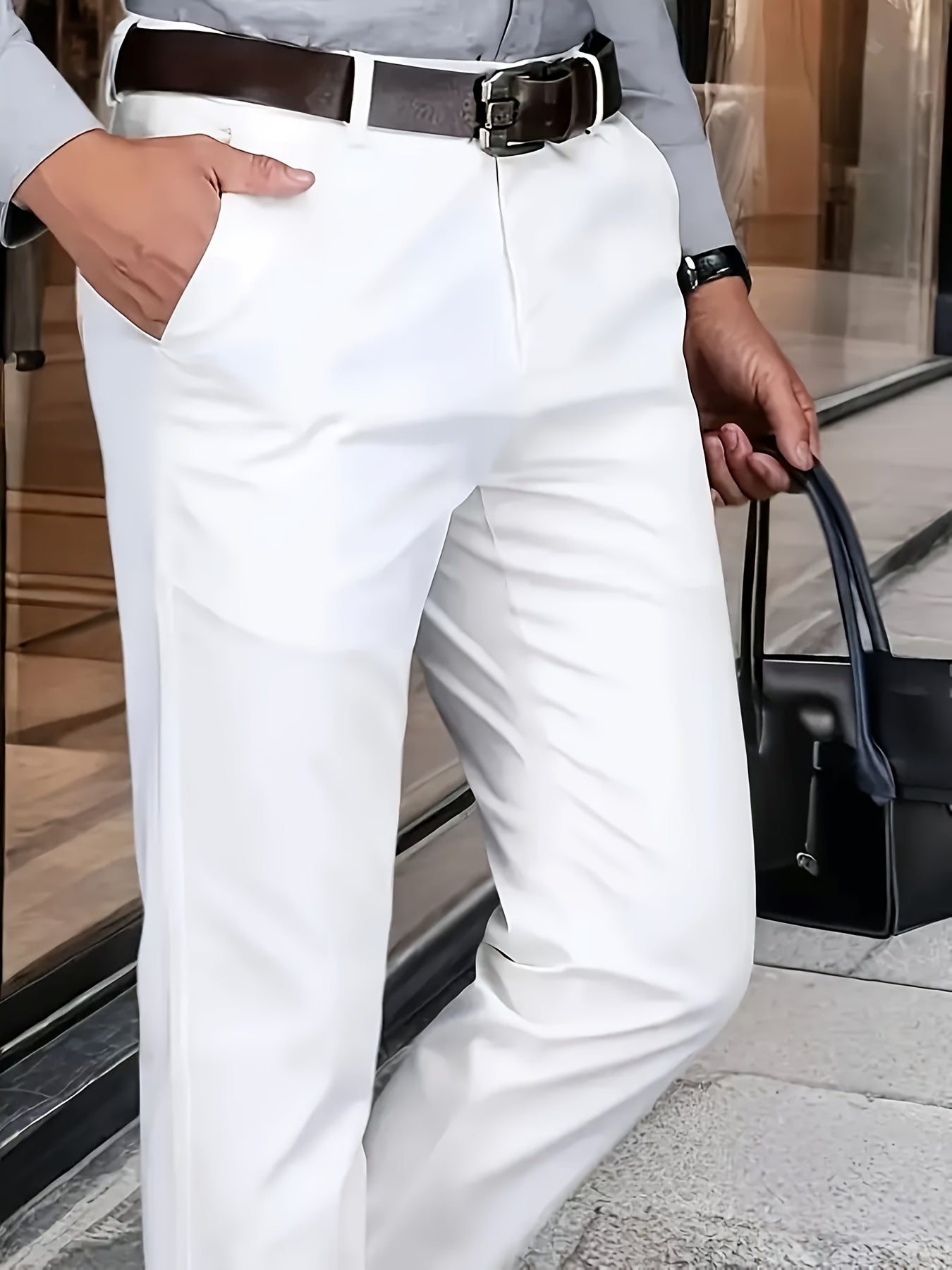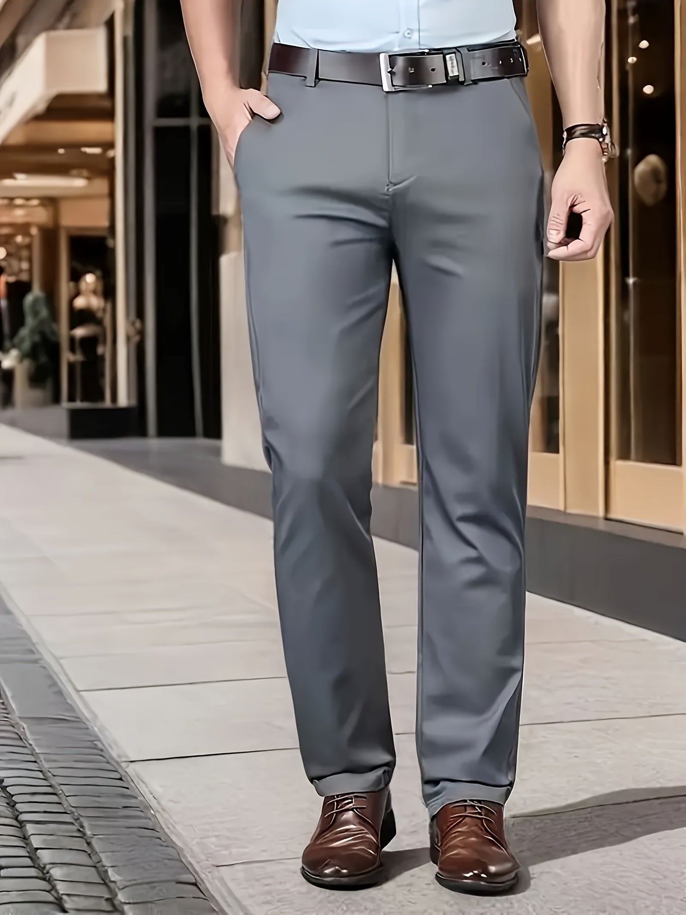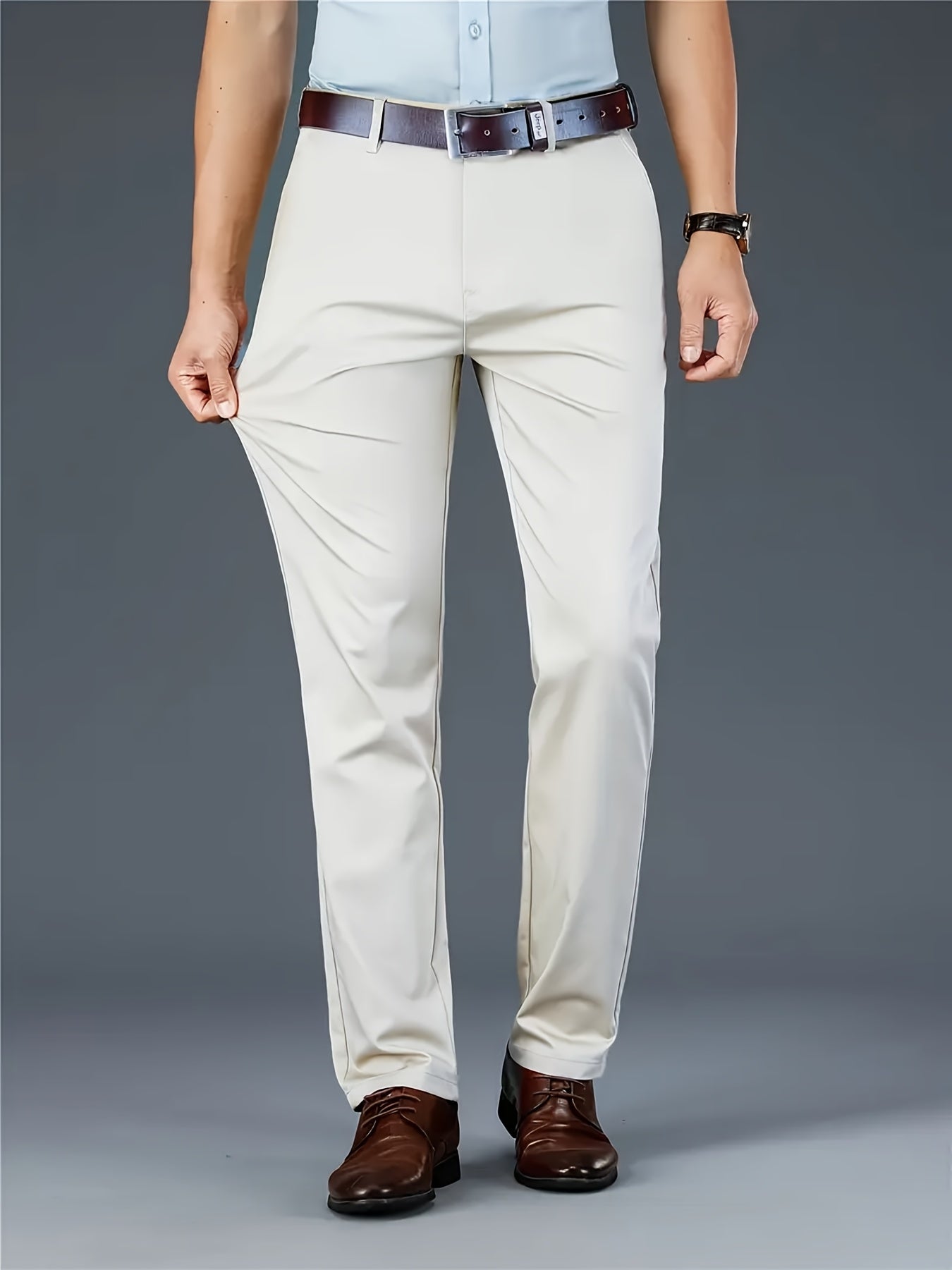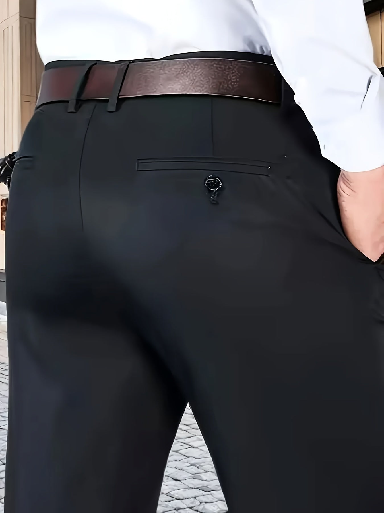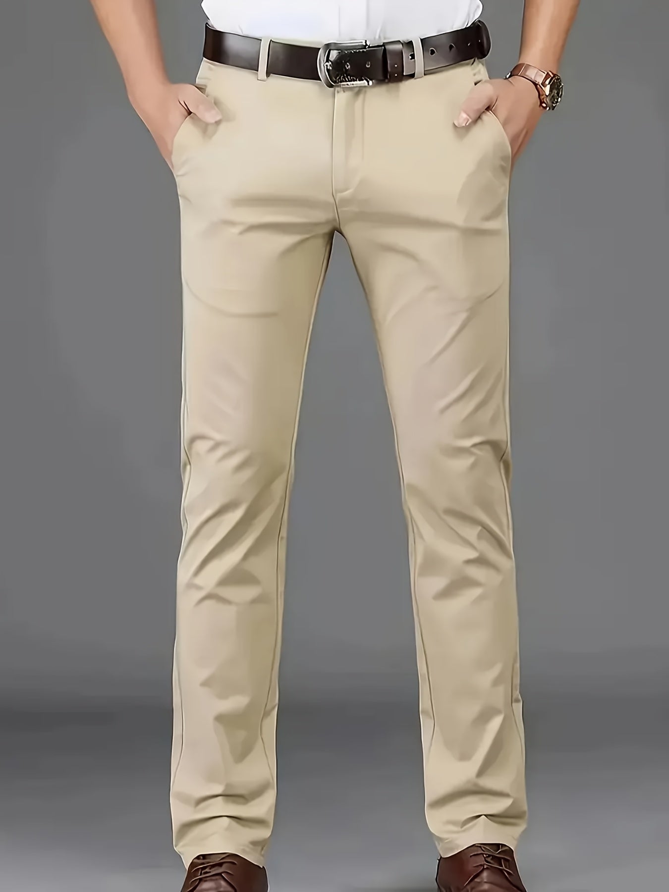 Տղամարդկանց դասական բիզնես շալվար, միաձույլ գույնի պատահական տաբատ, 100% պոլիեսթեր, սովորական, կայծակաճարմանդով, ամենօրյա հագուստի և նվերների համար, բոլոր սեզոնային, բոլոր սեզոնային տաբատներ | Շրջանակի խազ դիզայն | Պոլիեսթեր տաբատ