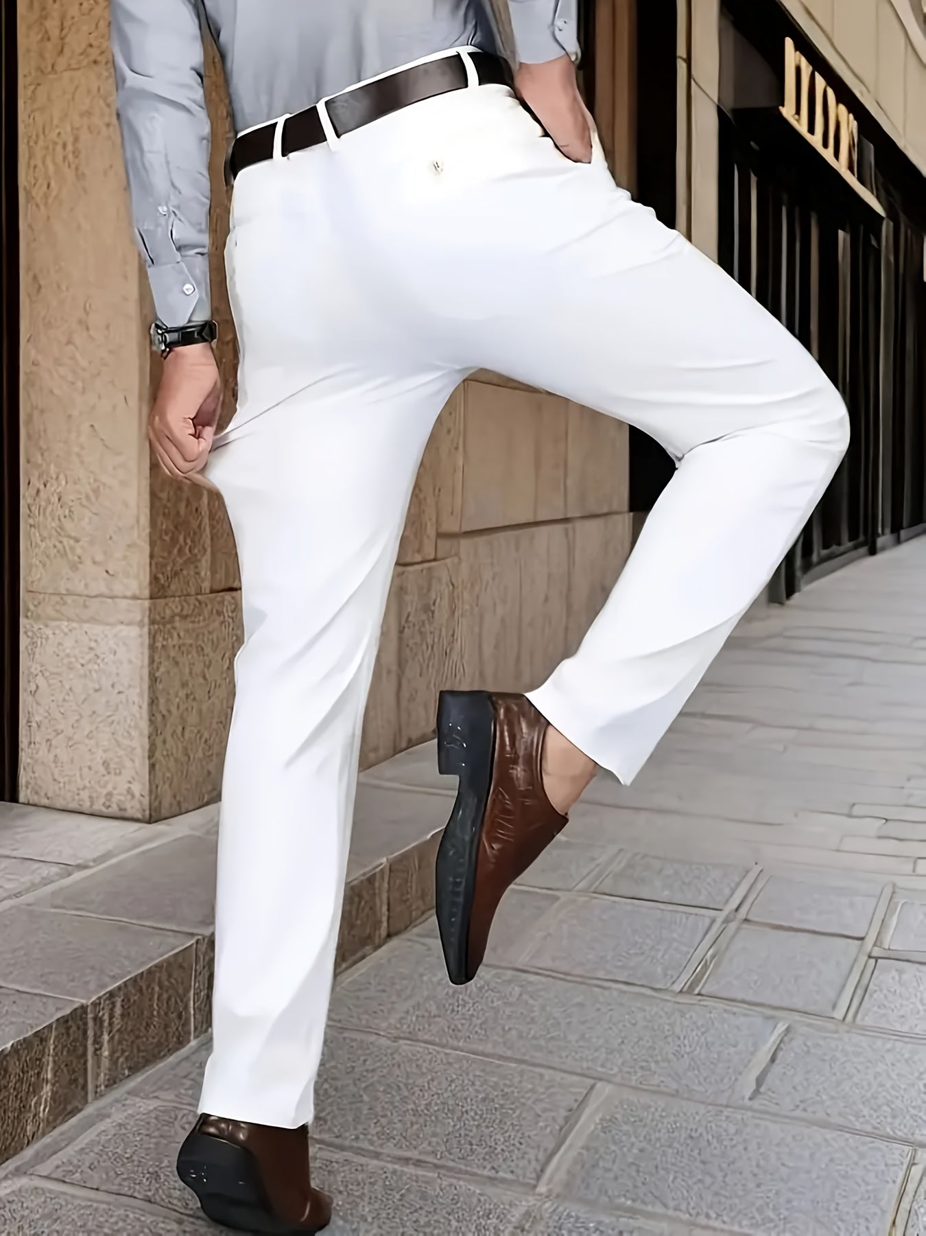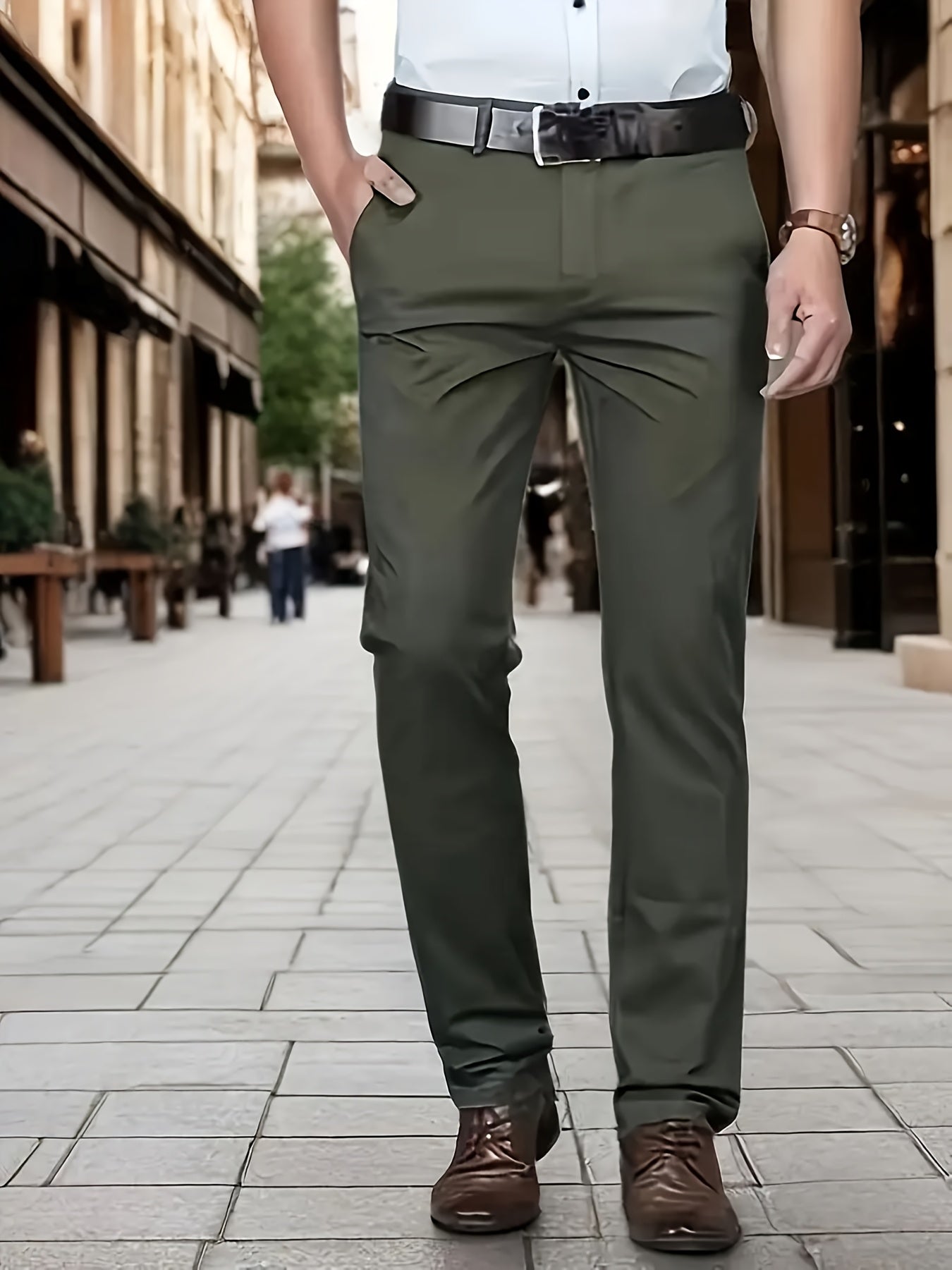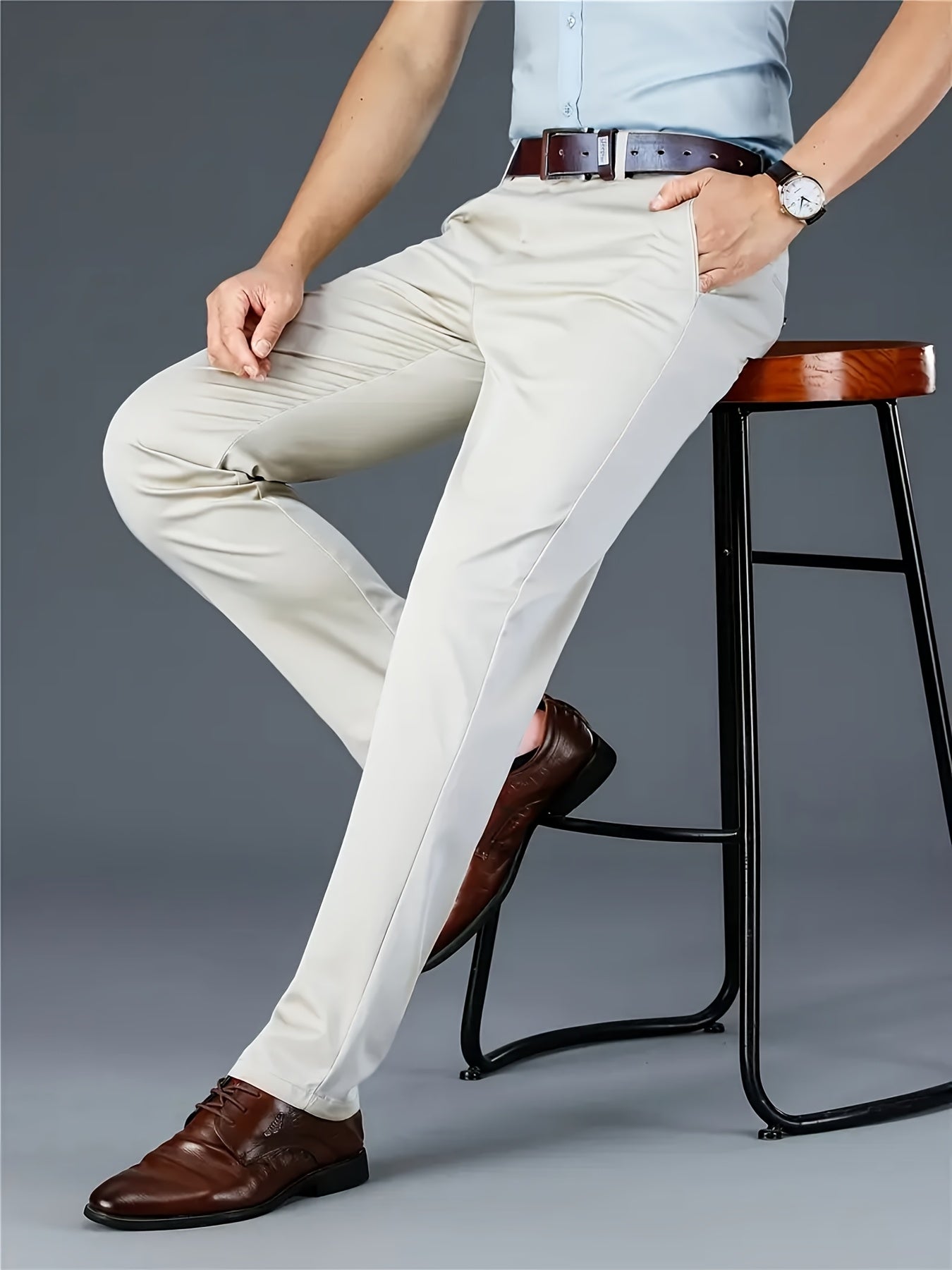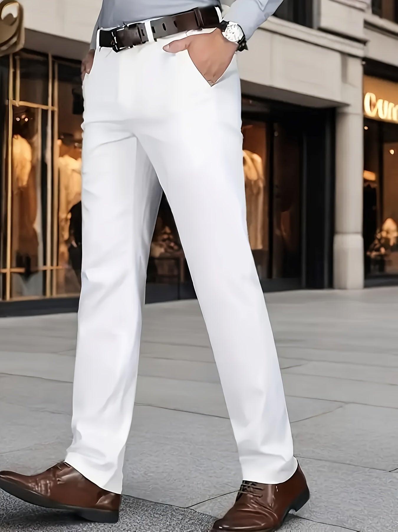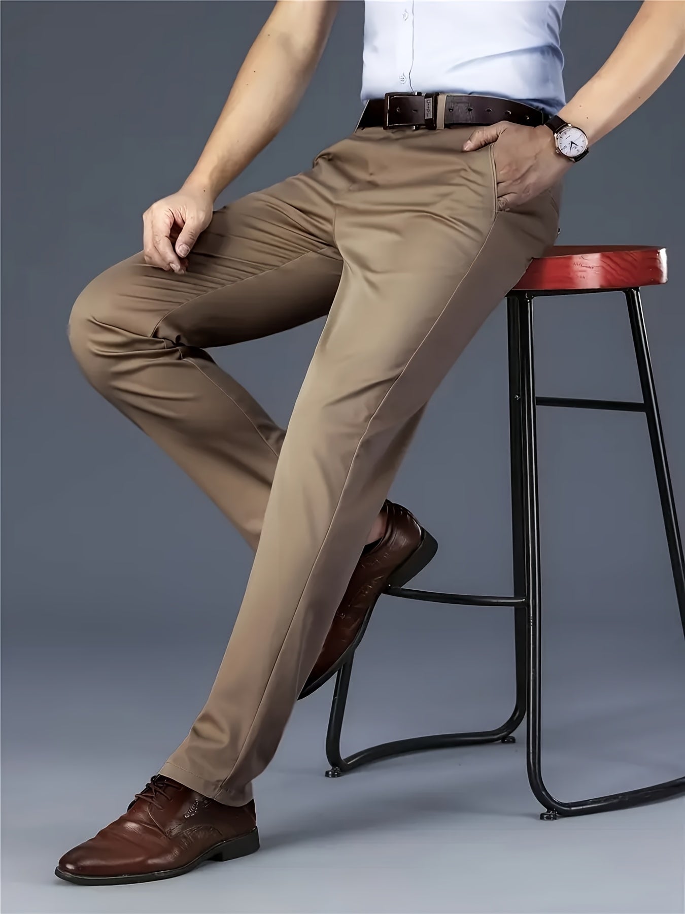 Տղամարդկանց դասական բիզնես շալվար, միաձույլ գույնի պատահական տաբատ, 100% պոլիեսթեր, սովորական, կայծակաճարմանդով, ամենօրյա հագուստի և նվերների համար, բոլոր սեզոնային, բոլոր սեզոնային տաբատներ | Շրջանակի խազ դիզայն | Պոլիեսթեր տաբատ