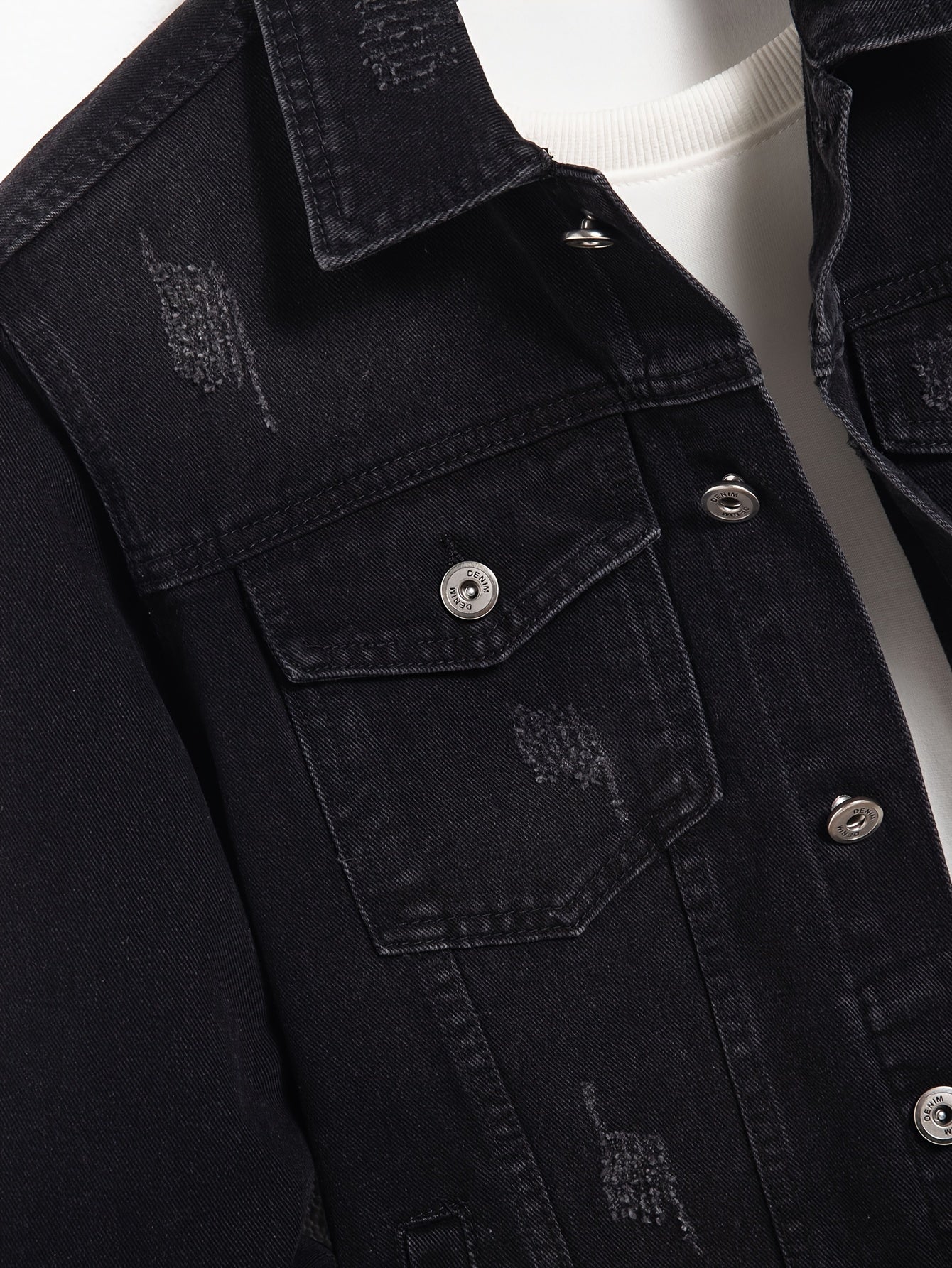 Տղամարդկանց դասական ջինսե բաճկոն՝ սովորական, չձգվող բամբակյա խառնուրդ, լվացվող մեքենայով օձիքով