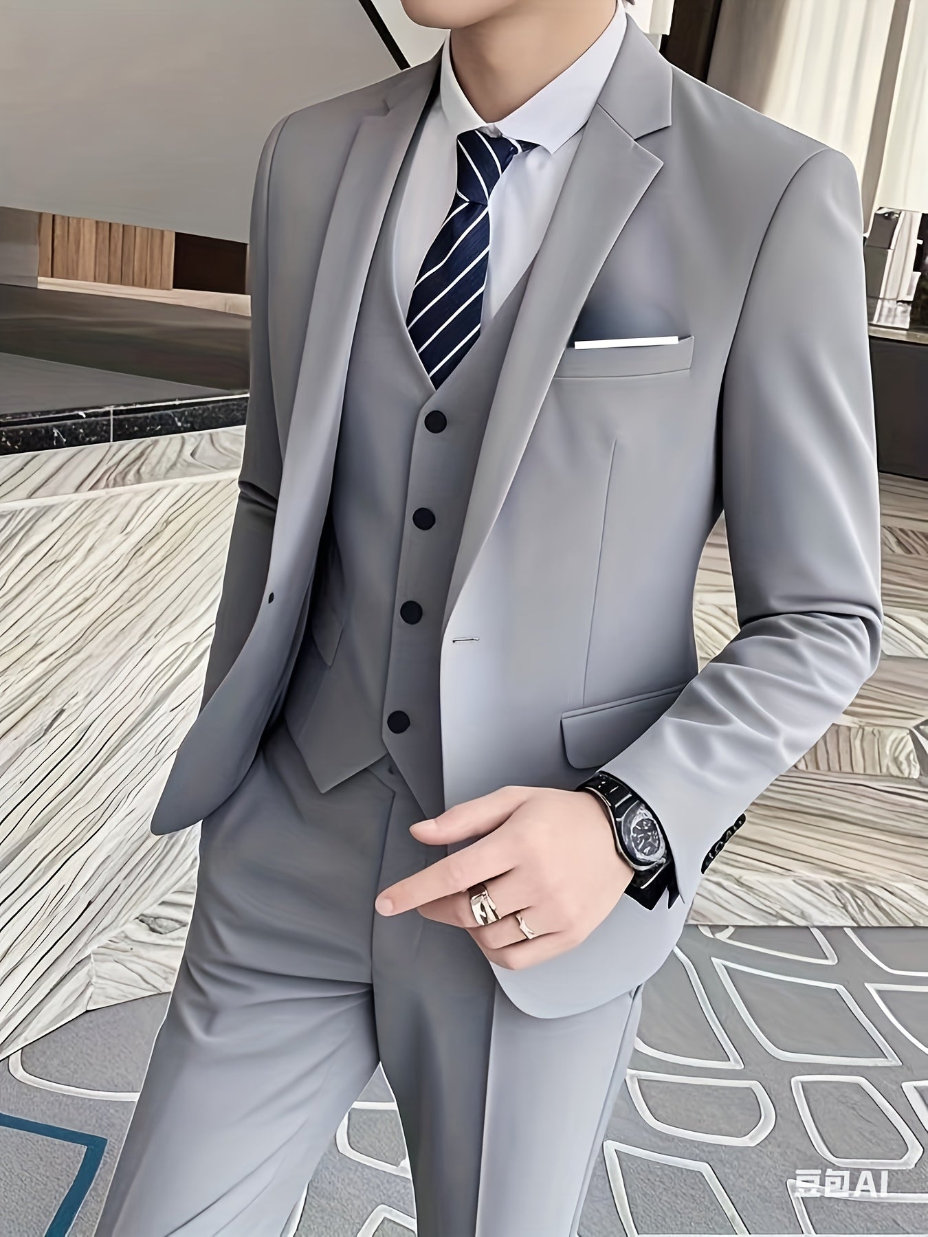 Տղամարդկանց դասական էլեգանտ միաձույլ բարձրորակ կոստյում 3 հատ Կոմպլեկտ, կոստյումներ, բաճկոններ և տաբատներ՝ հարմար հարսանիքների, երեկույթների, ավարտական արարողությունների համար