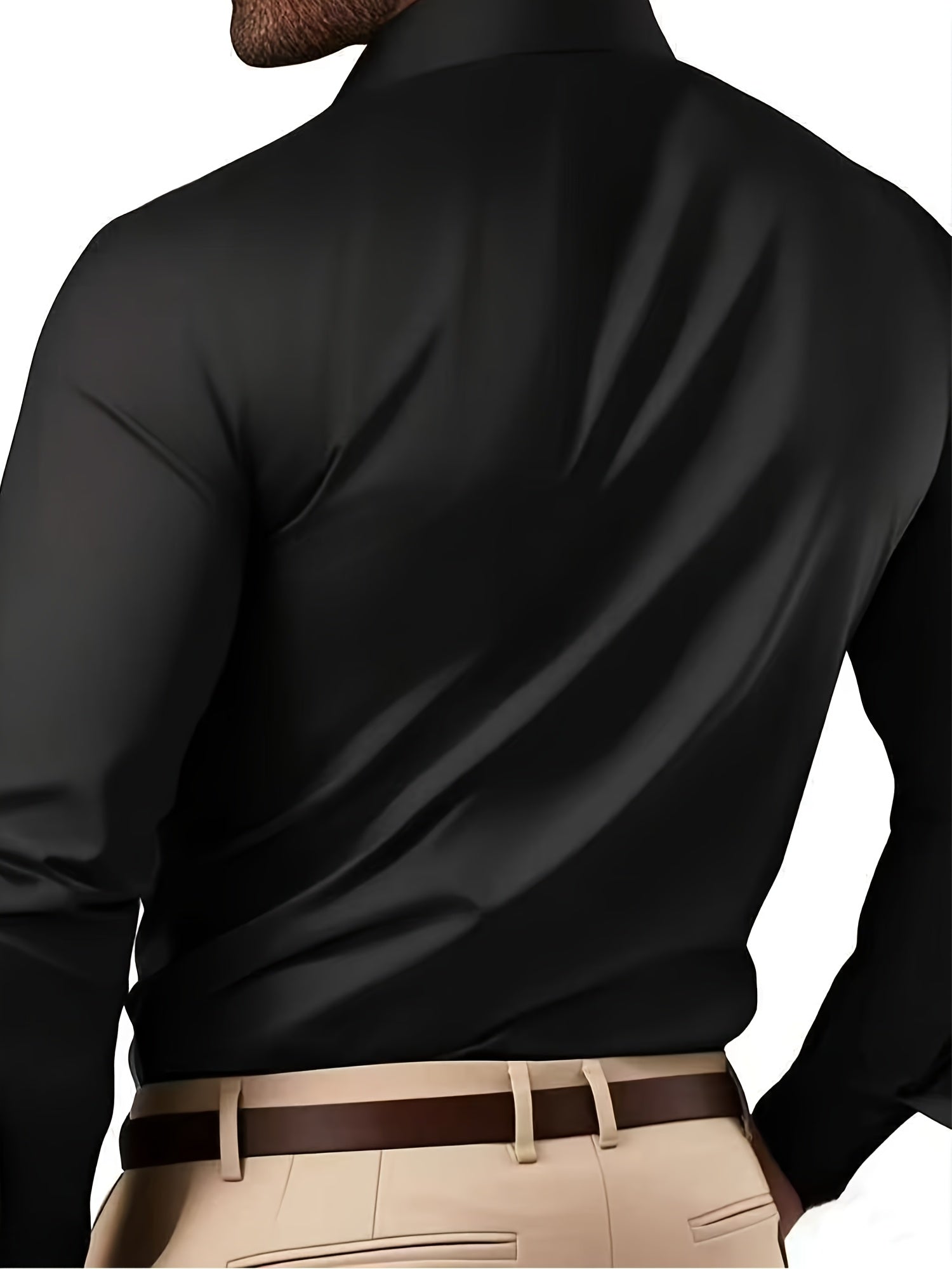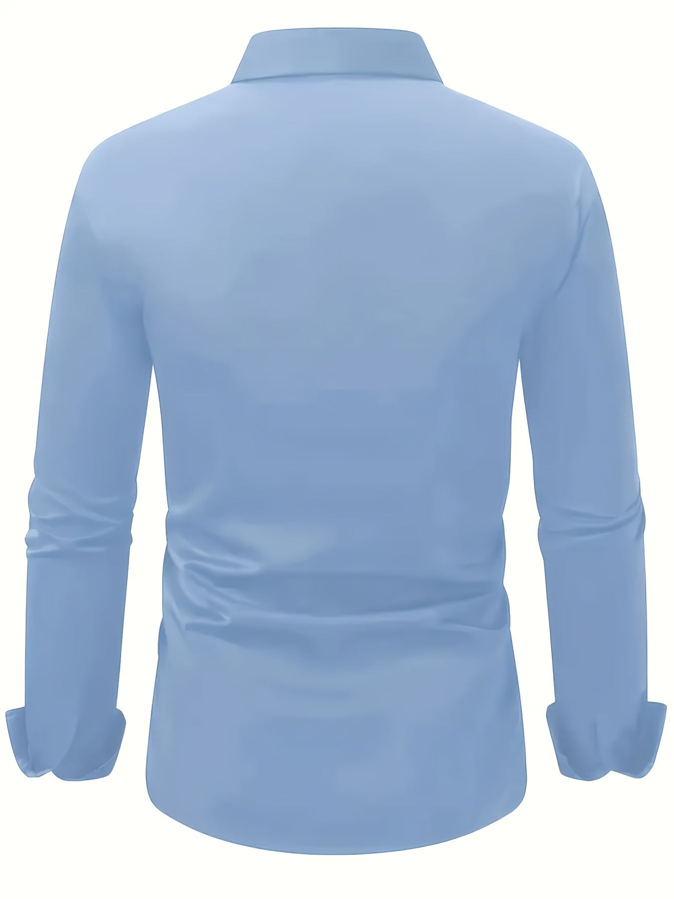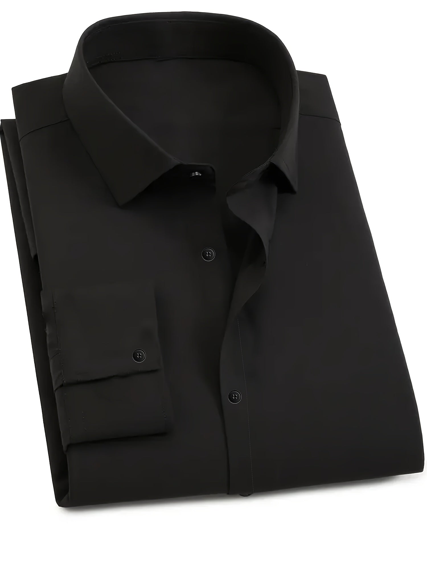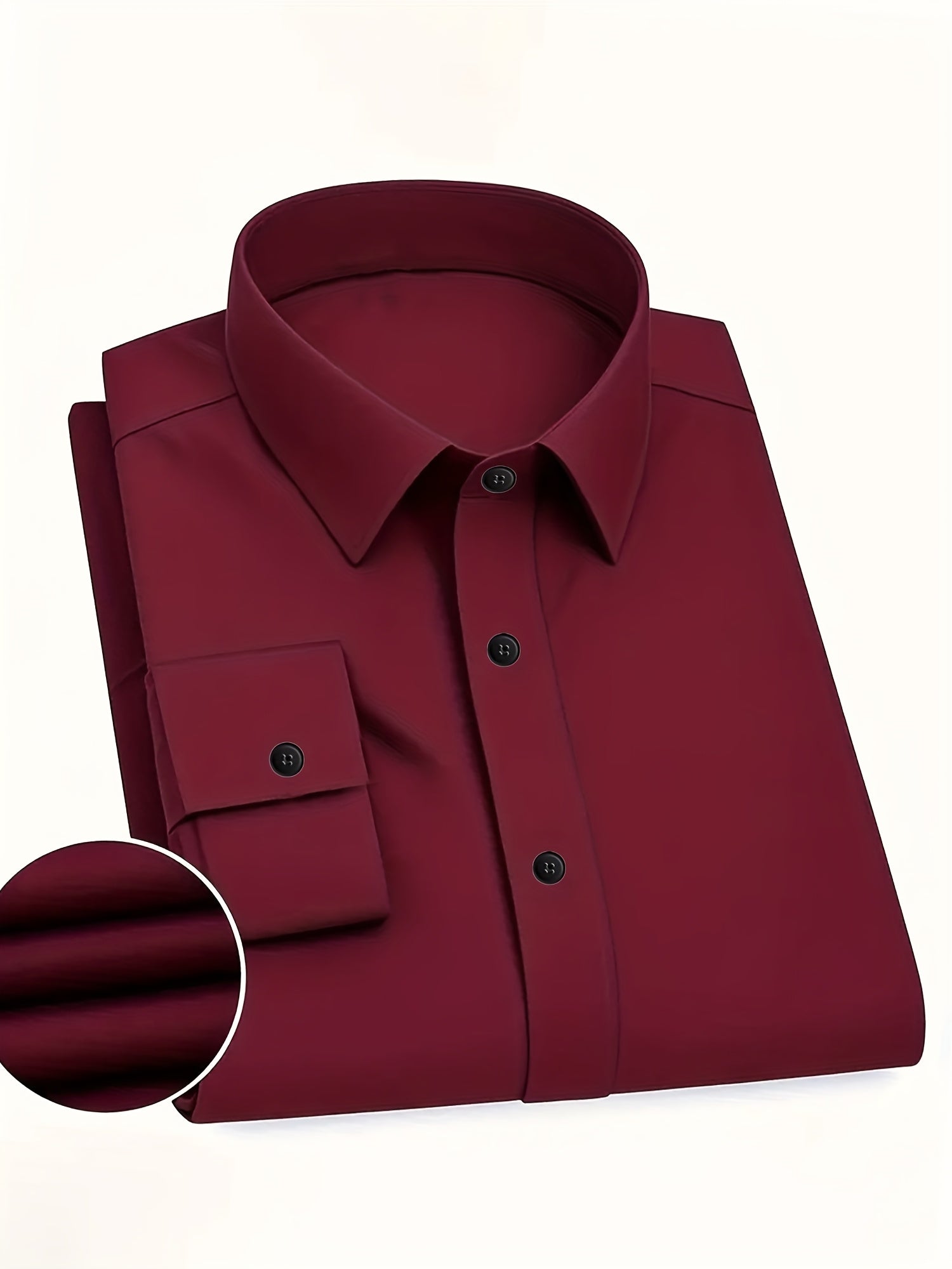 Տղամարդու դասական միագույն երկարաթև վերնաշապիկ՝ սովորական չափսի, կետավոր օձիքով, չձգվող գործվածք՝ գրասենյակի, բիզնեսի և առօրյա հագուստի համար, բոլոր եղանակների բազմակողմանի զգեստապահարանի կեռիկ, ամենօրյա հարմարավետություն, նրբագեղ տեսք, հեշտ խնամքի նյութ