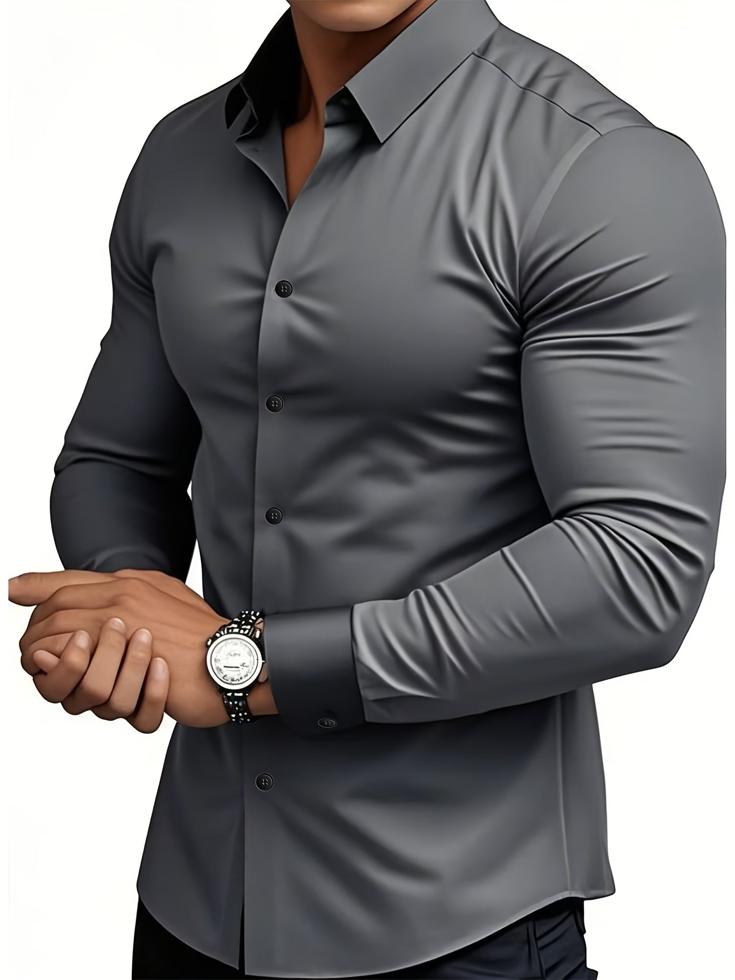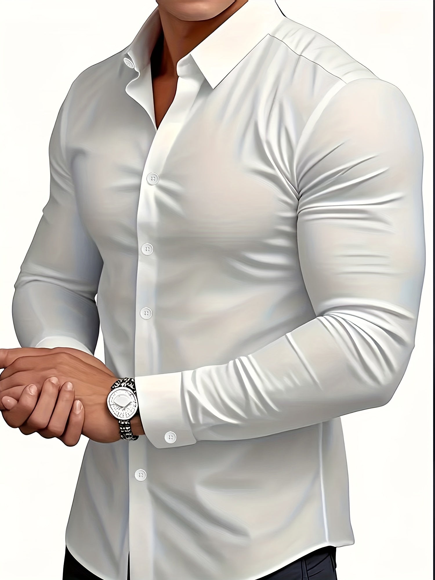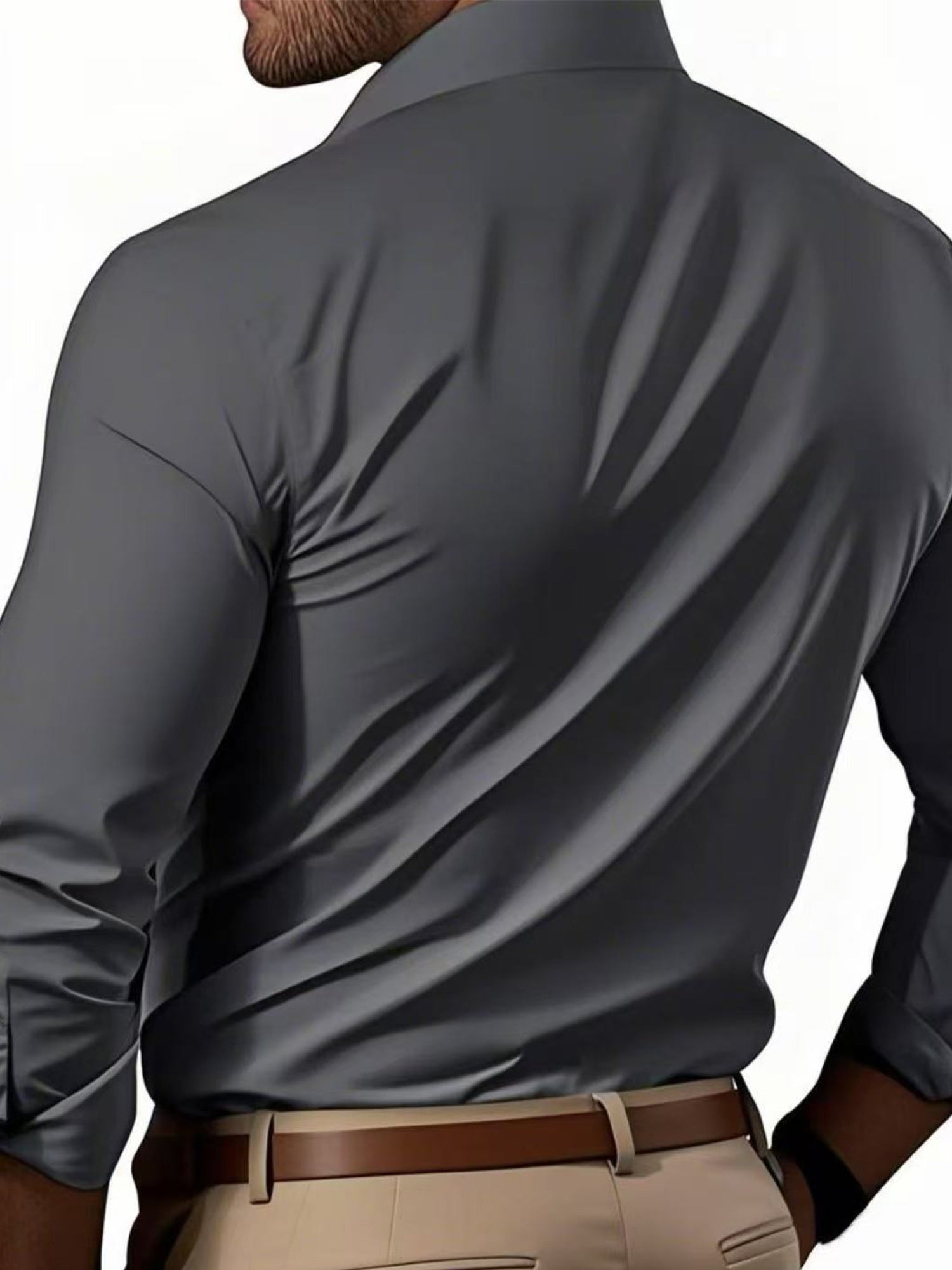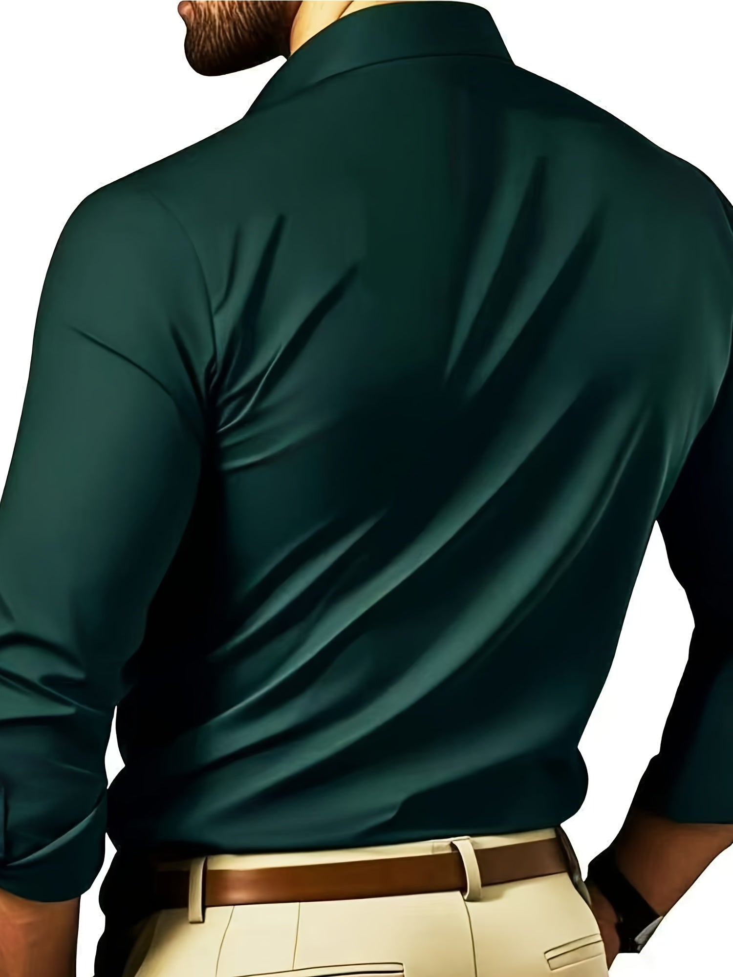 Տղամարդու դասական միագույն երկարաթև վերնաշապիկ՝ սովորական չափսի, կետավոր օձիքով, չձգվող գործվածք՝ գրասենյակի, բիզնեսի և առօրյա հագուստի համար, բոլոր եղանակների բազմակողմանի զգեստապահարանի կեռիկ, ամենօրյա հարմարավետություն, նրբագեղ տեսք, հեշտ խնամքի նյութ