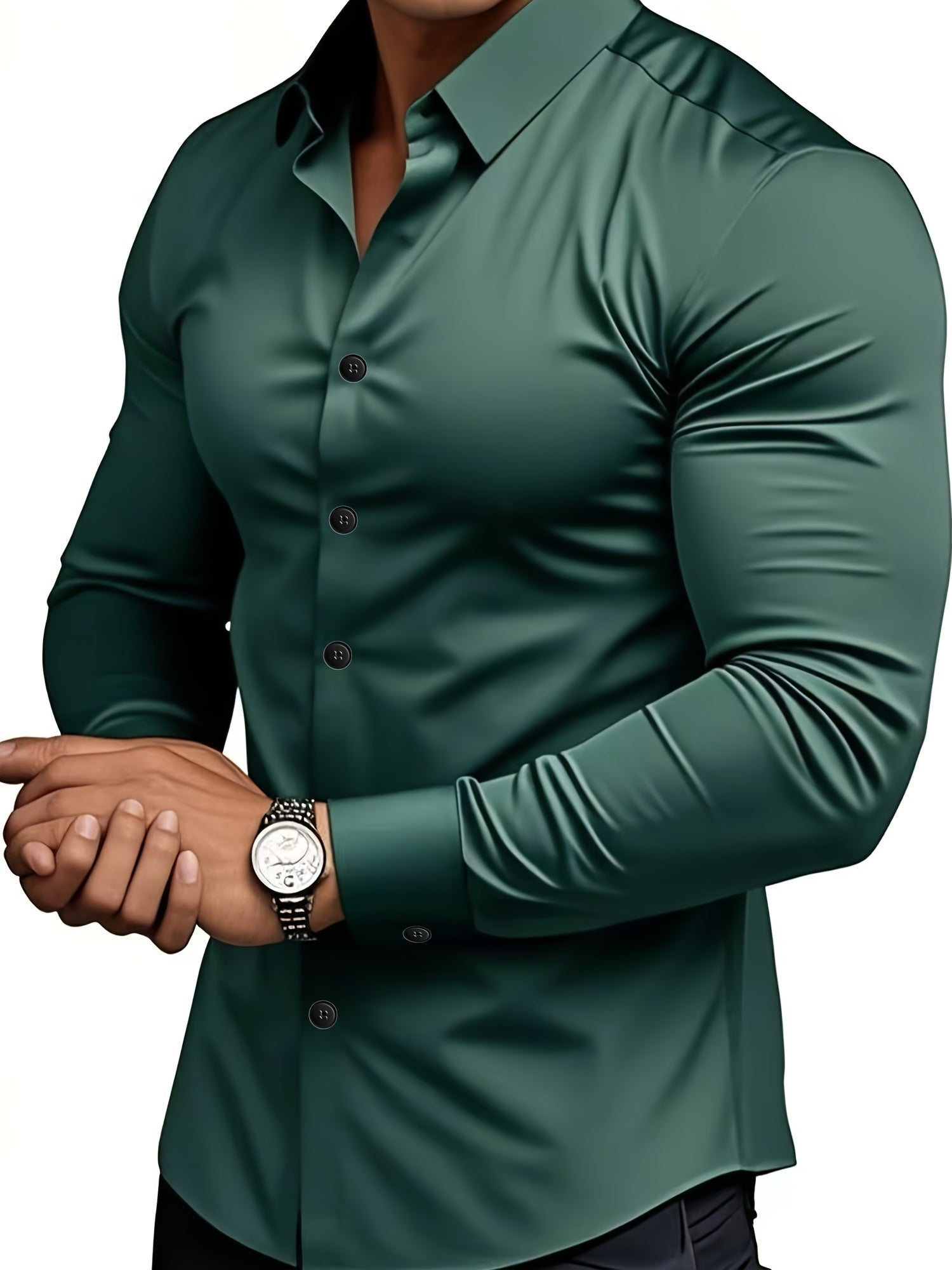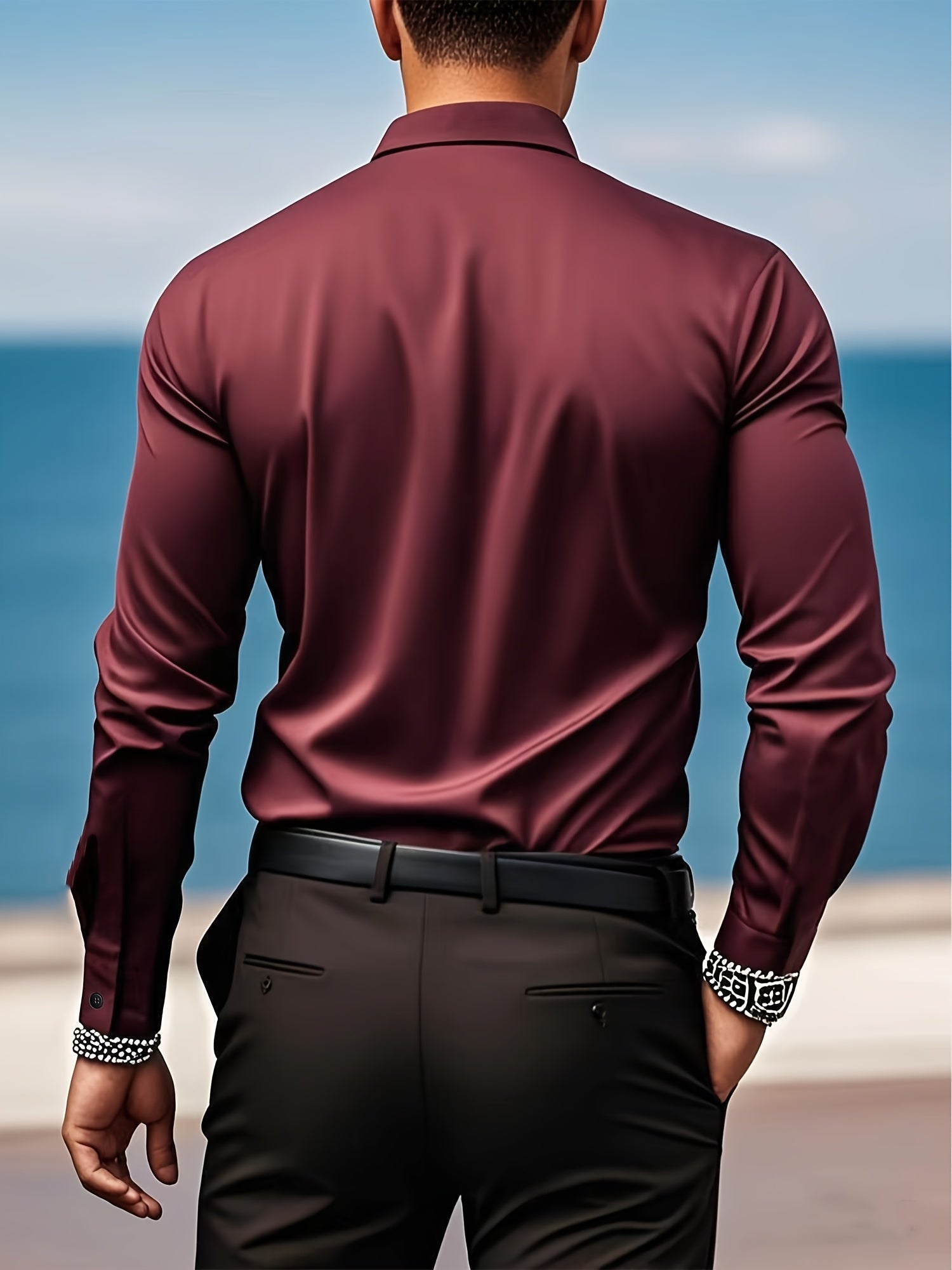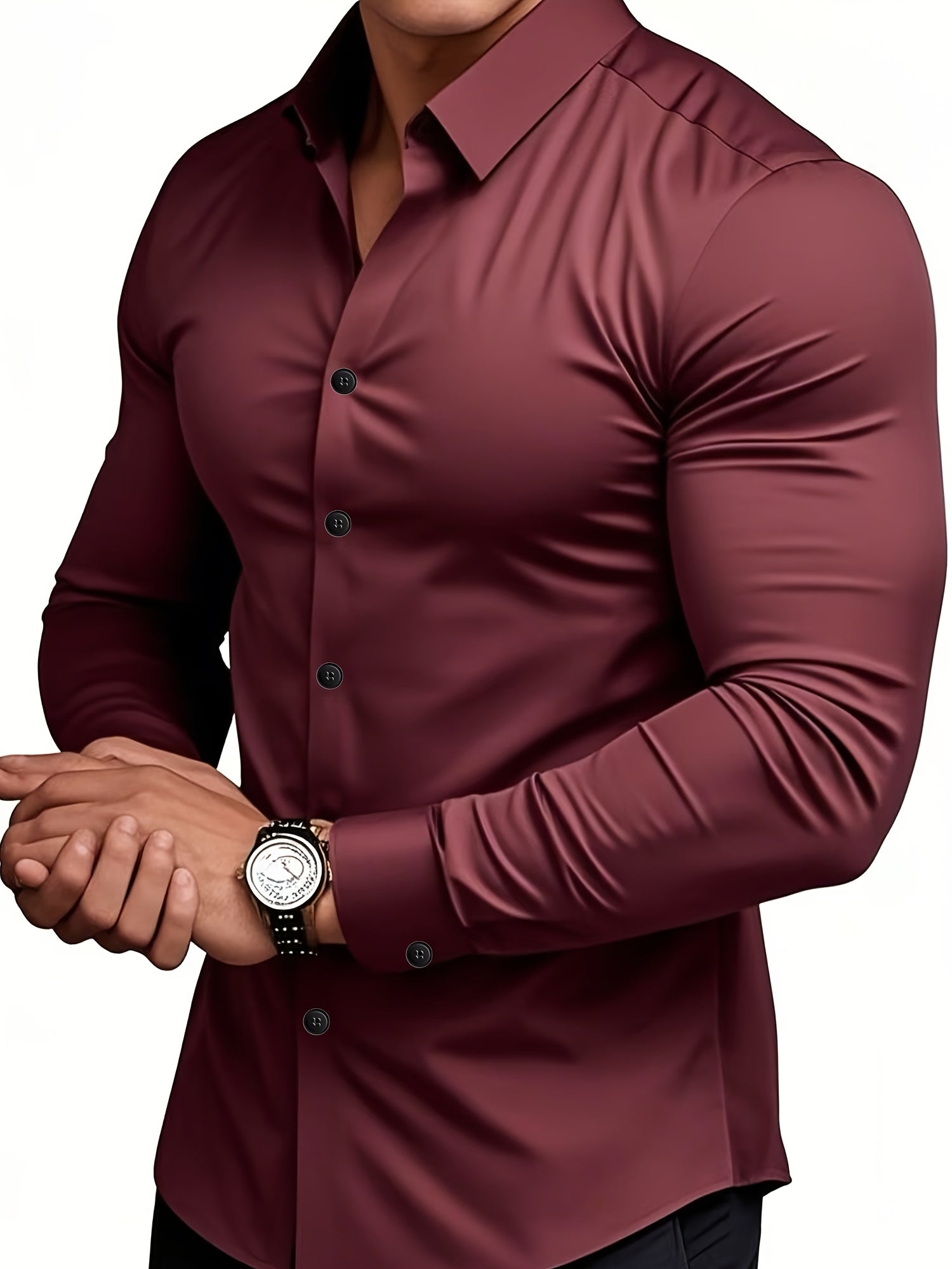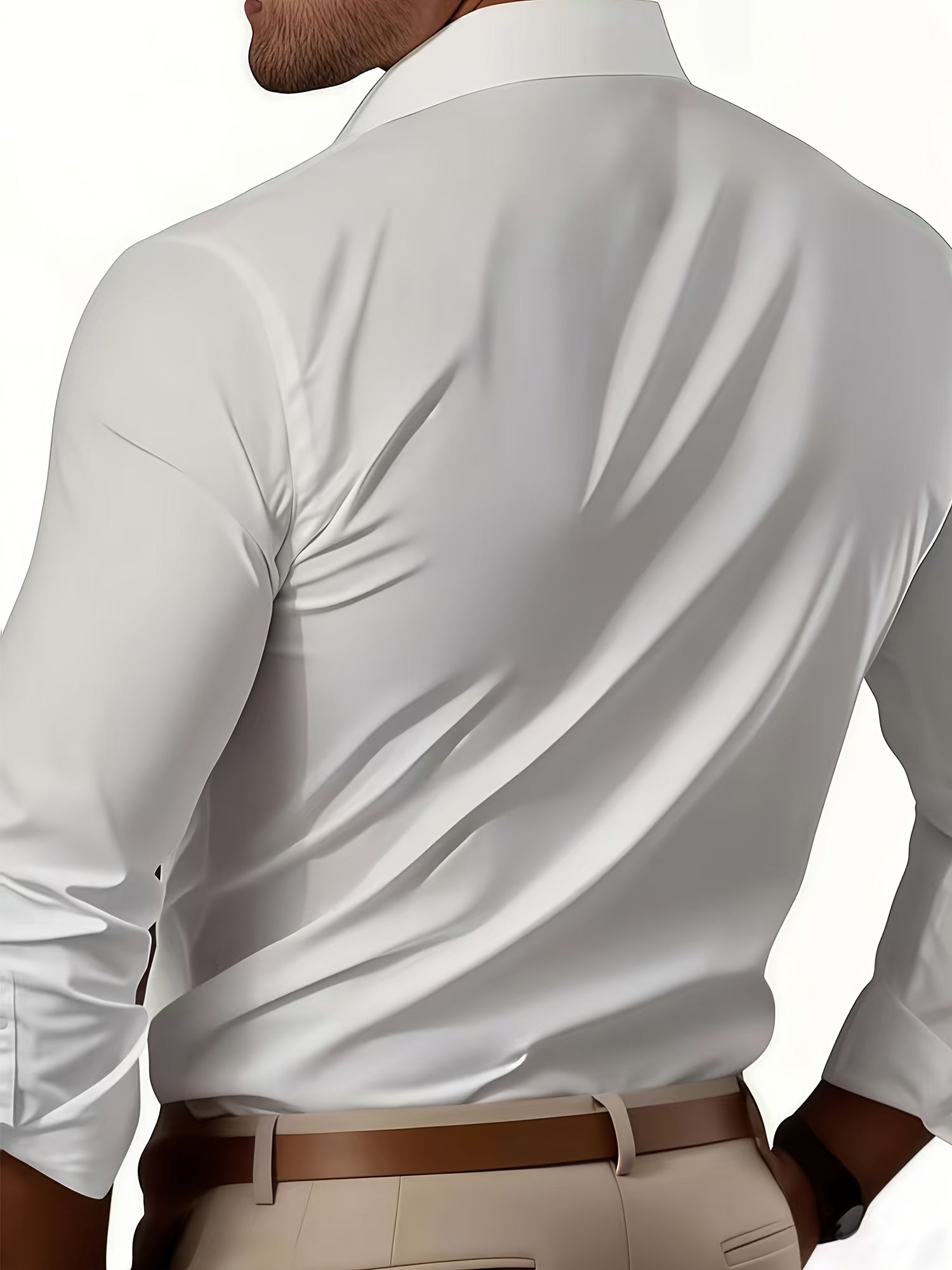 Տղամարդու դասական միագույն երկարաթև վերնաշապիկ՝ սովորական չափսի, կետավոր օձիքով, չձգվող գործվածք՝ գրասենյակի, բիզնեսի և առօրյա հագուստի համար, բոլոր եղանակների բազմակողմանի զգեստապահարանի կեռիկ, ամենօրյա հարմարավետություն, նրբագեղ տեսք, հեշտ խնամքի նյութ