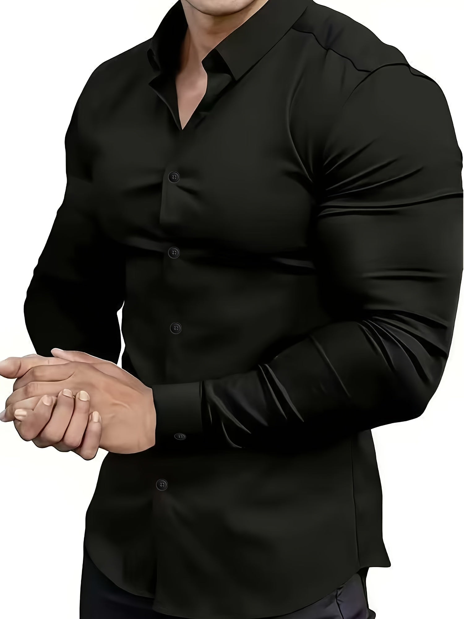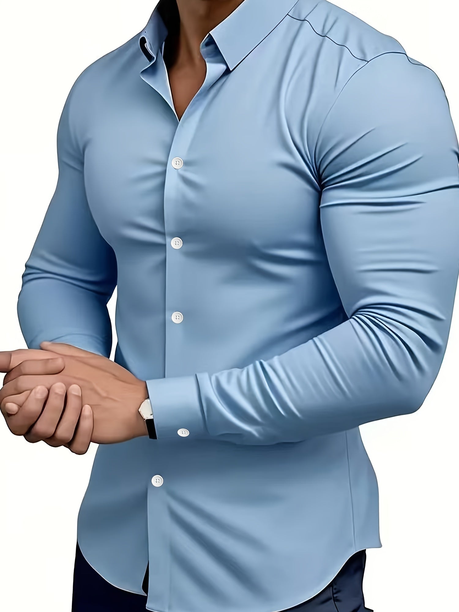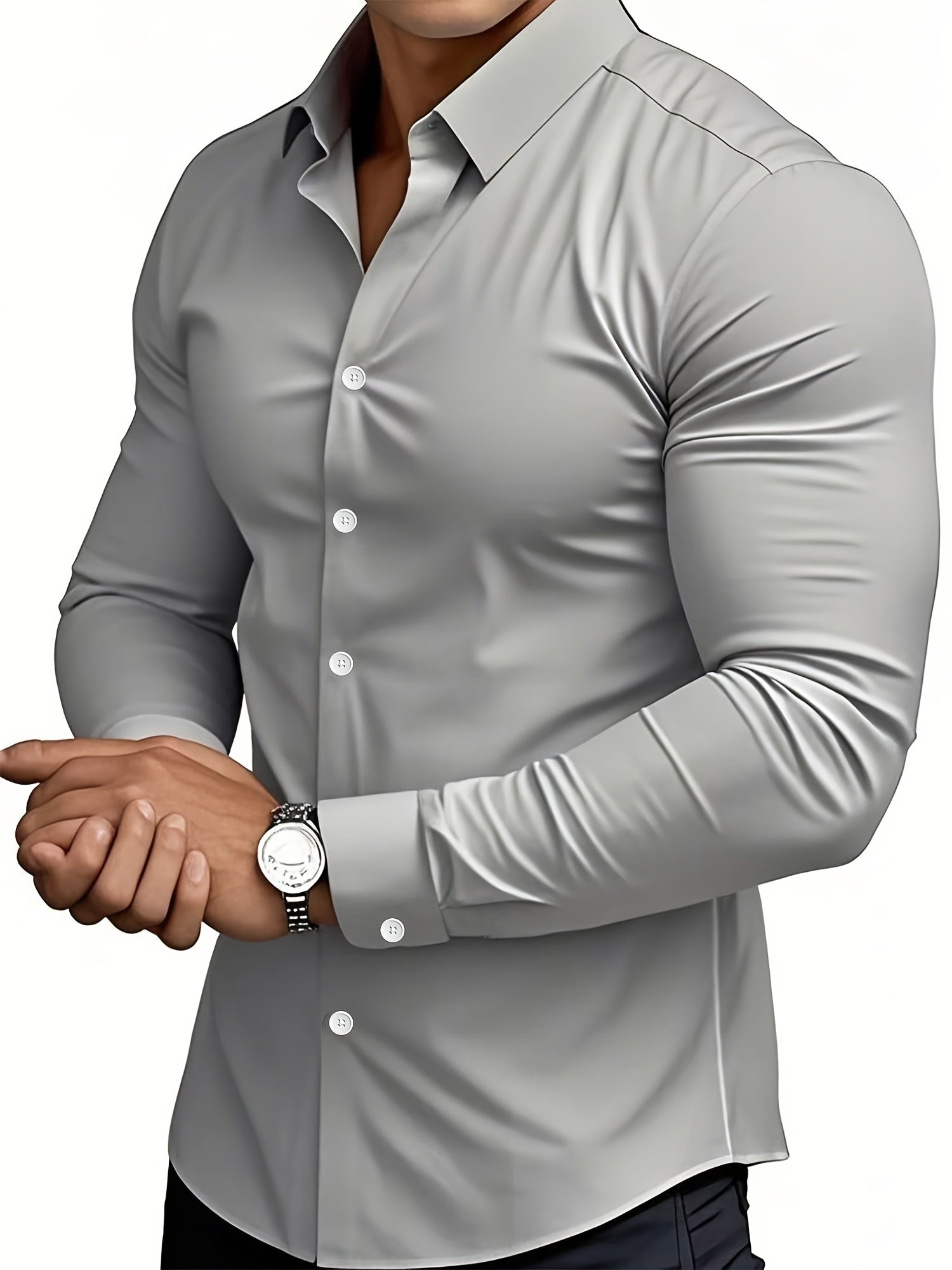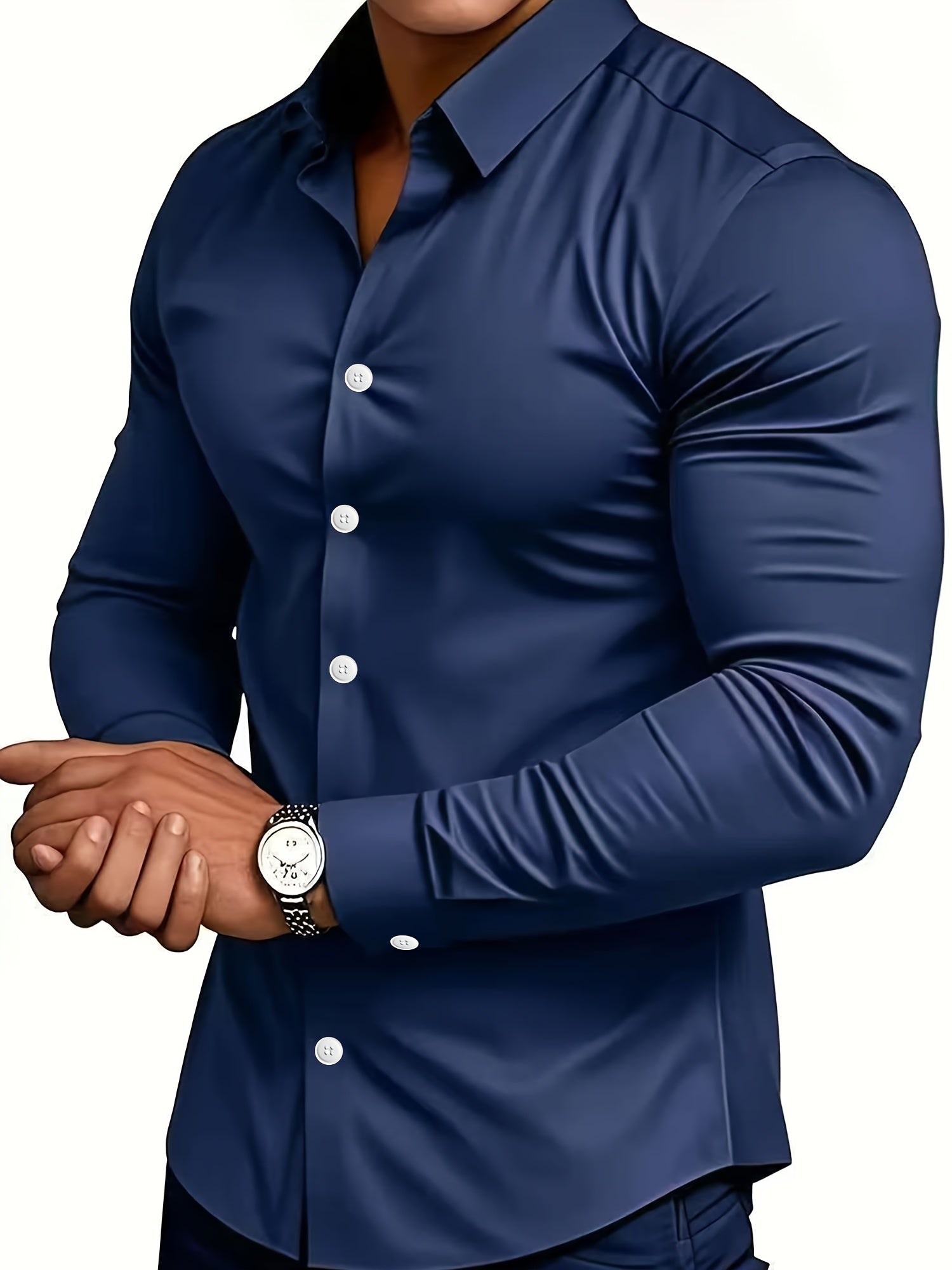 Տղամարդու դասական միագույն երկարաթև վերնաշապիկ՝ սովորական չափսի, կետավոր օձիքով, չձգվող գործվածք՝ գրասենյակի, բիզնեսի և առօրյա հագուստի համար, բոլոր եղանակների բազմակողմանի զգեստապահարանի կեռիկ, ամենօրյա հարմարավետություն, նրբագեղ տեսք, հեշտ խնամքի նյութ