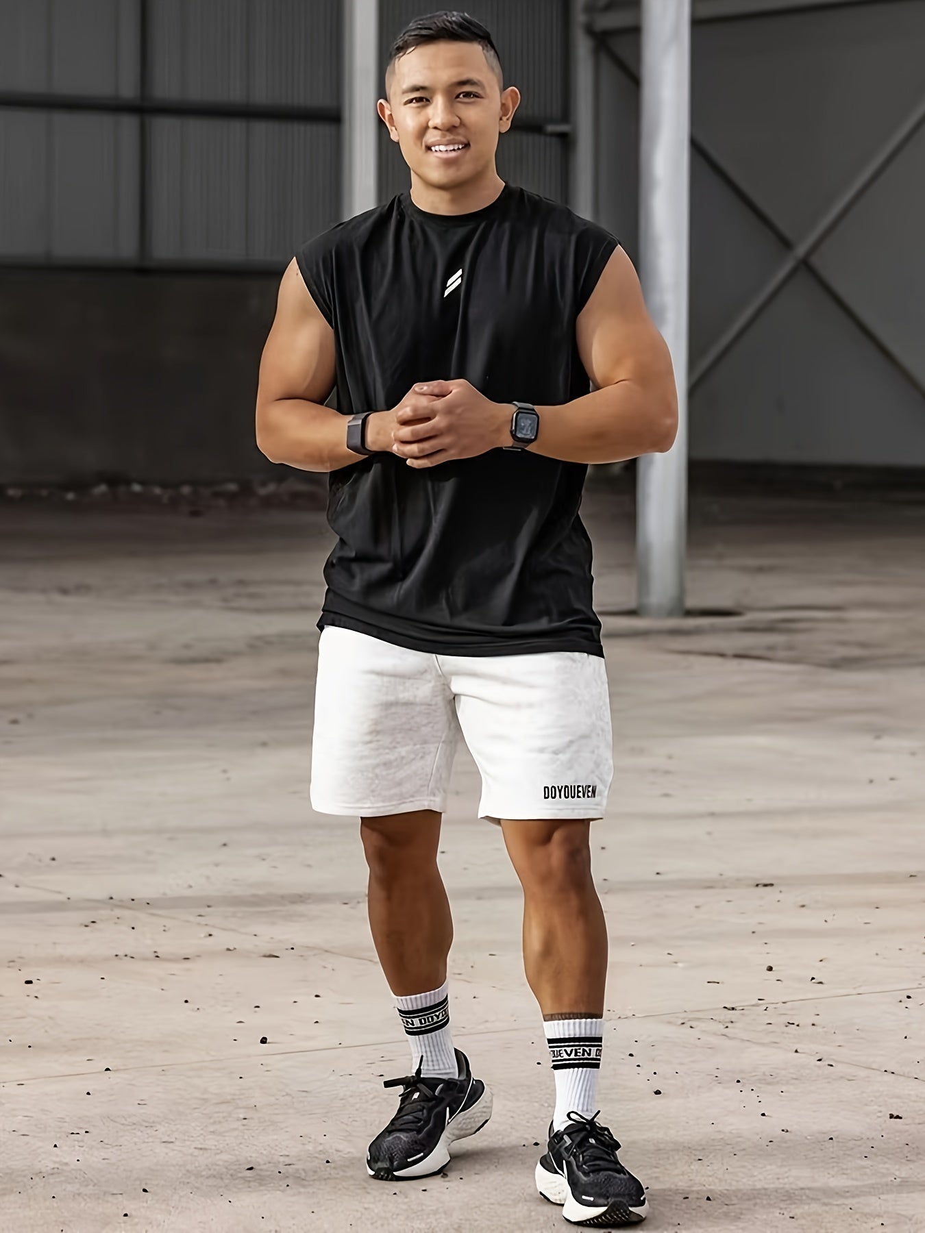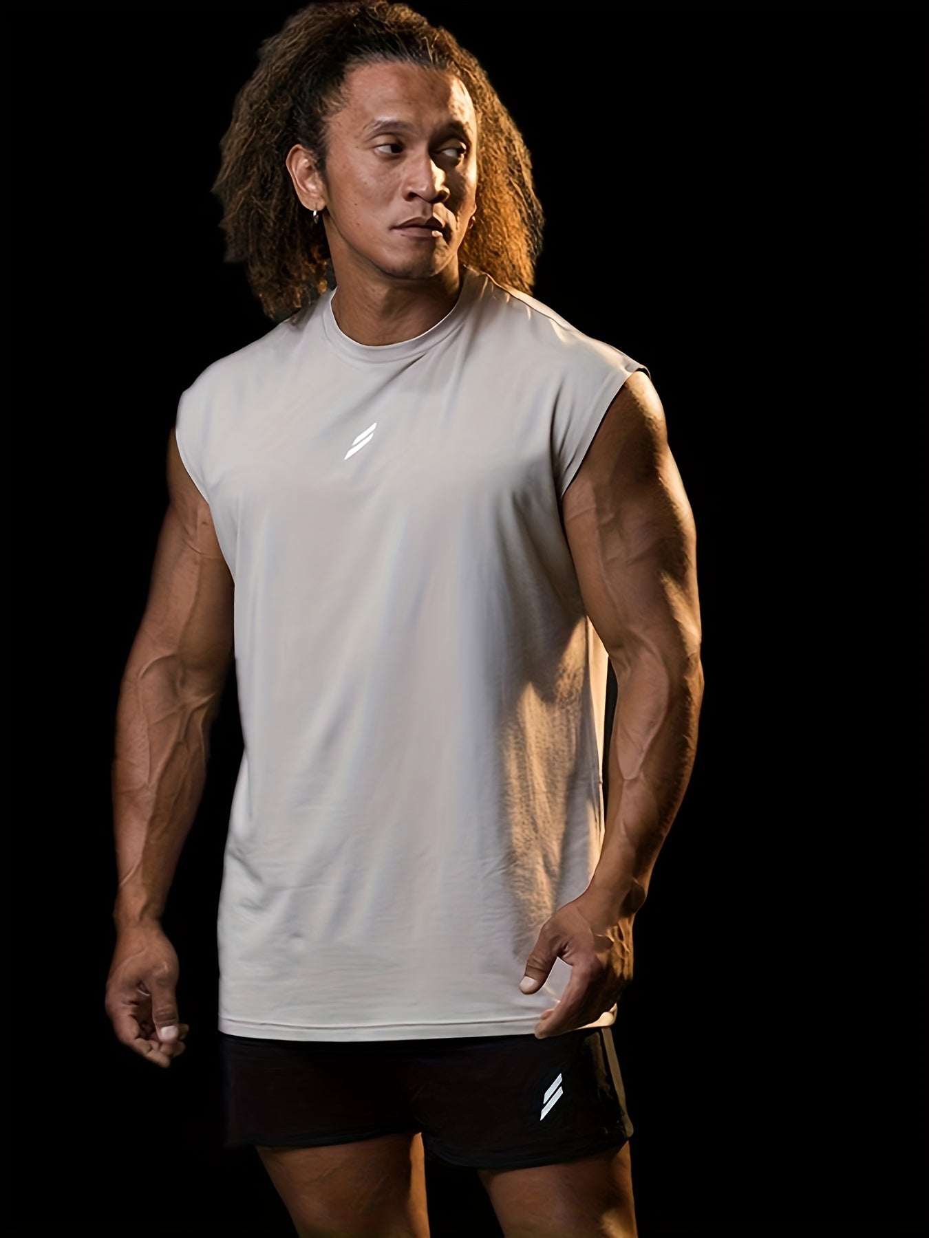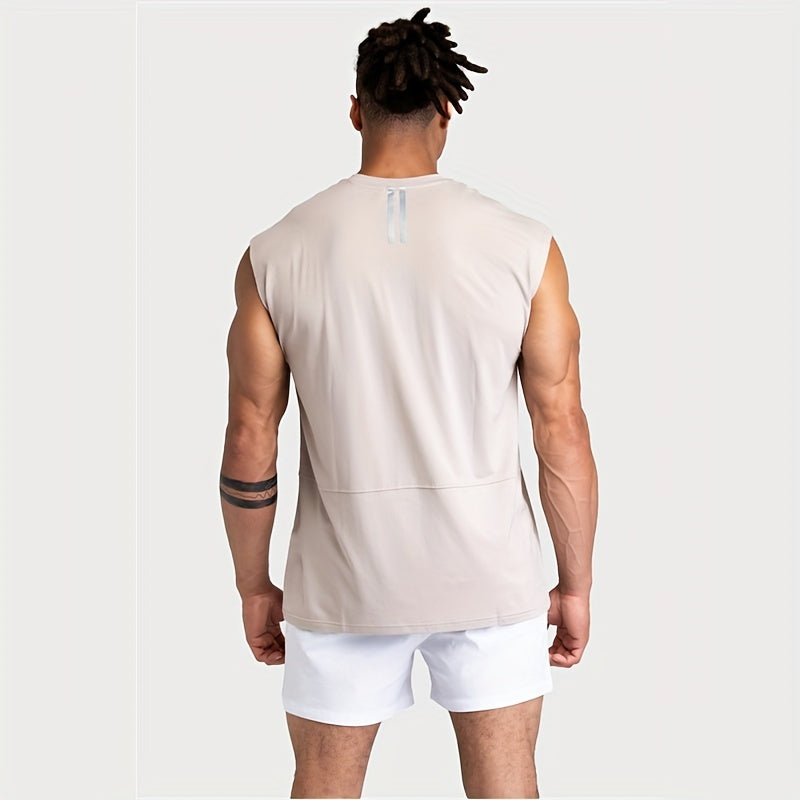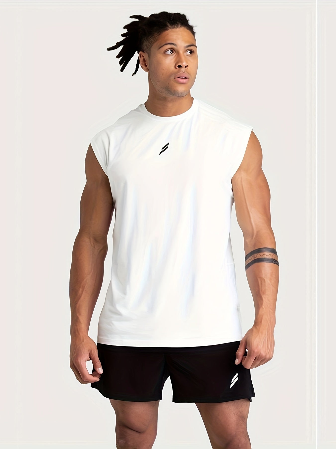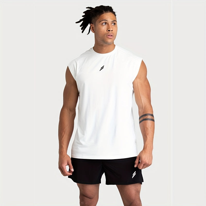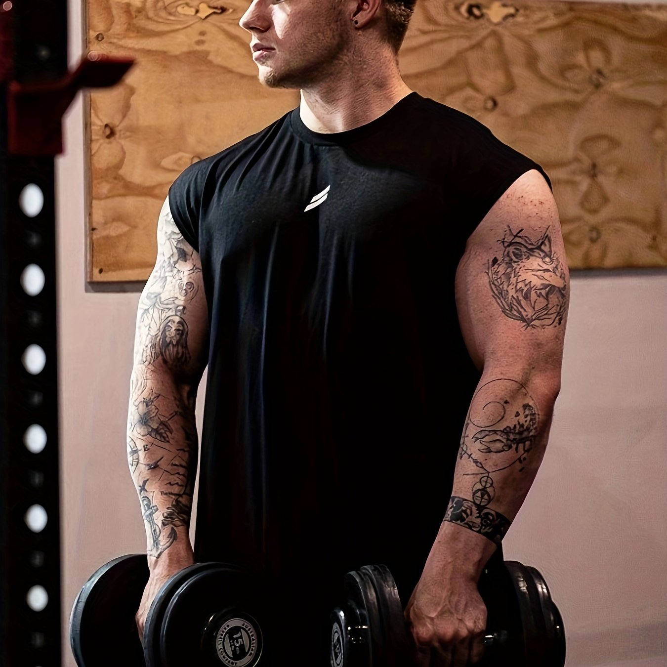 Տղամարդկանց բամբակյա խառնուրդ անթև տանկի վերնաշապիկ, պատահական պարանոցի սպորտային ժիլետ ամառային մարզասրահի մարզումների համար