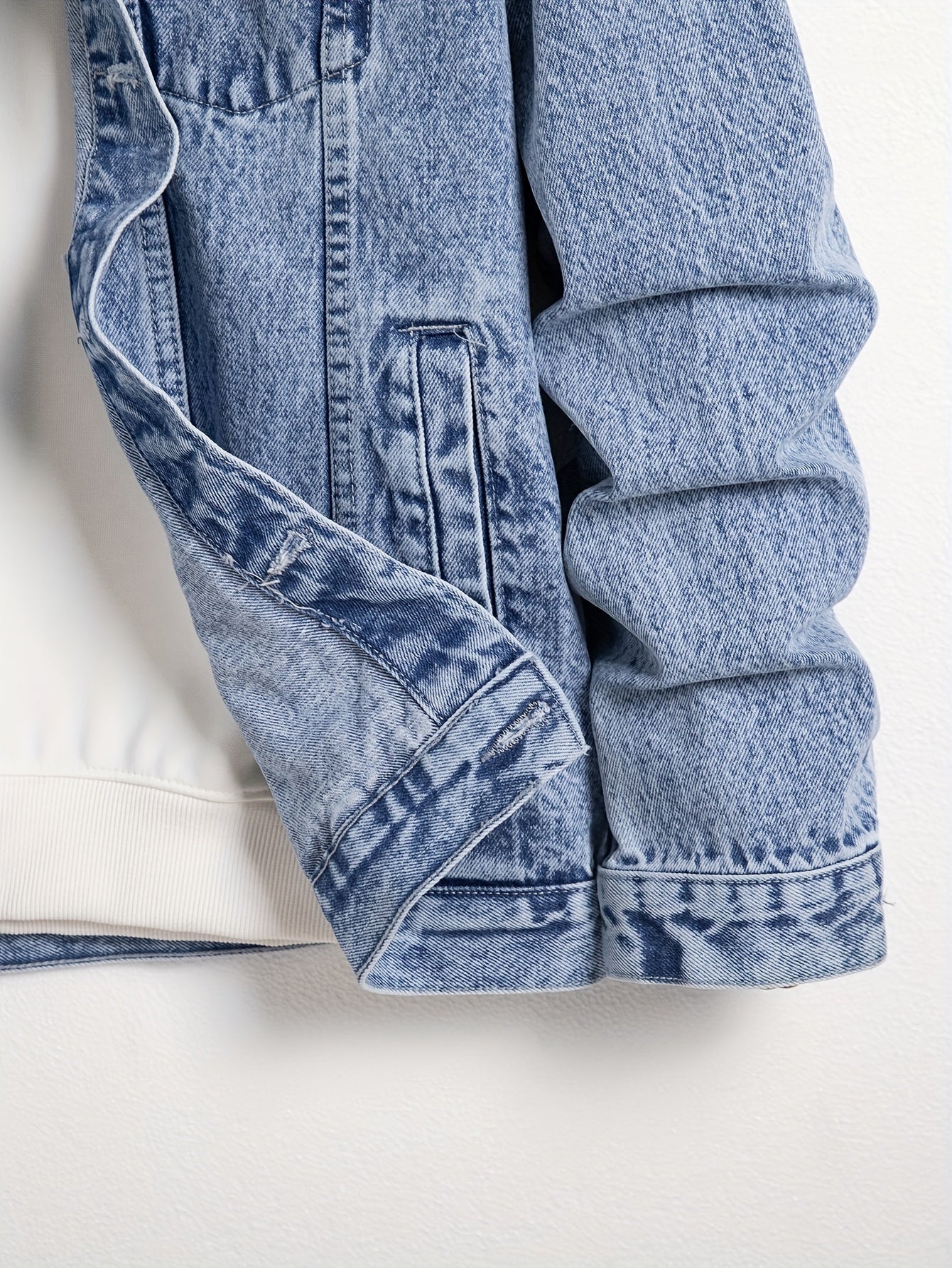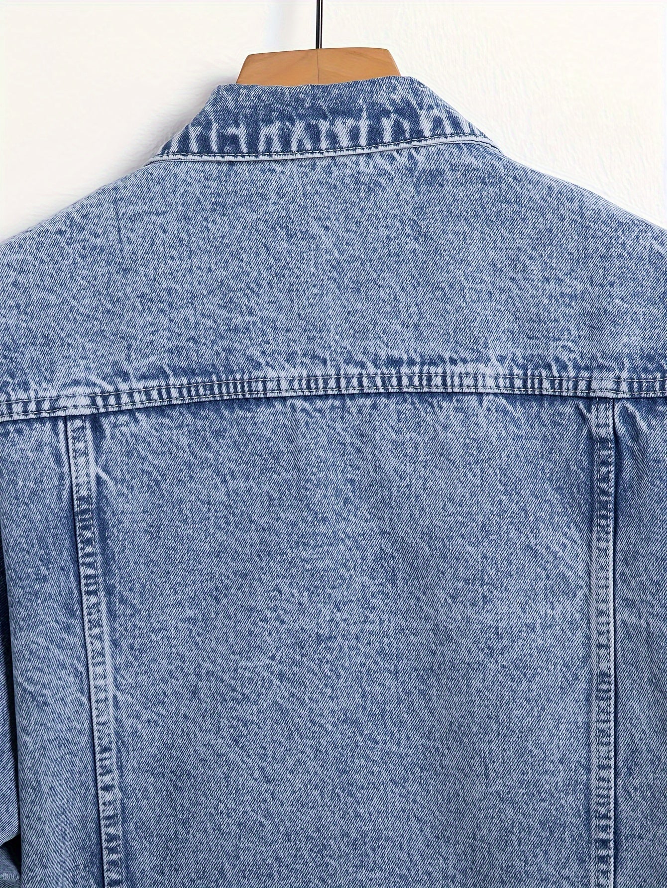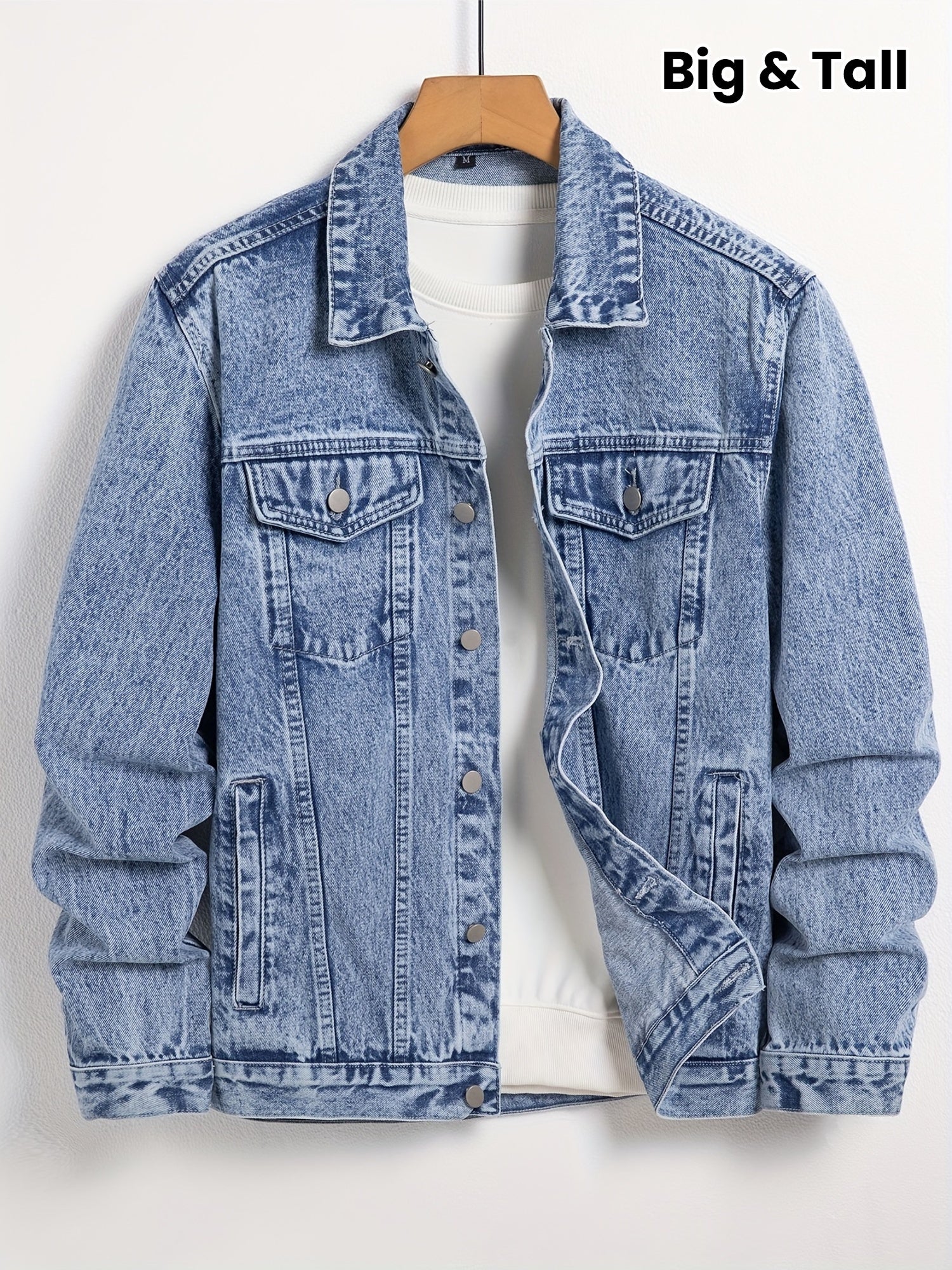 Տղամարդկանց ջինսե բաճկոն, շրջվող օձիք, սովորական պիտանի դասական դիզայնի ջինսե վերարկու գարնան և աշնան համար