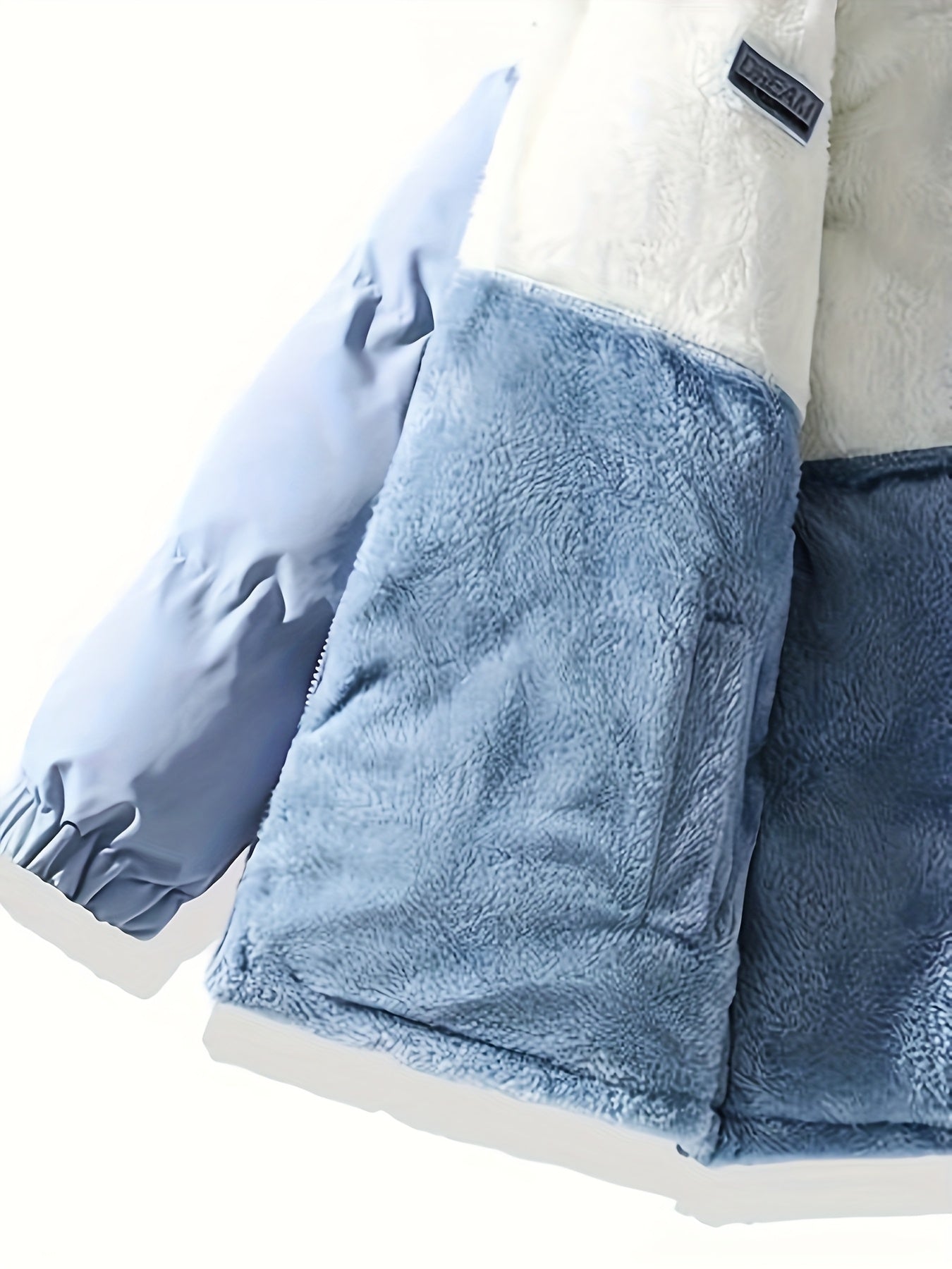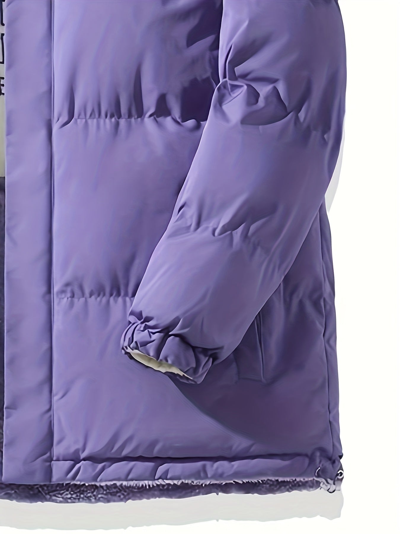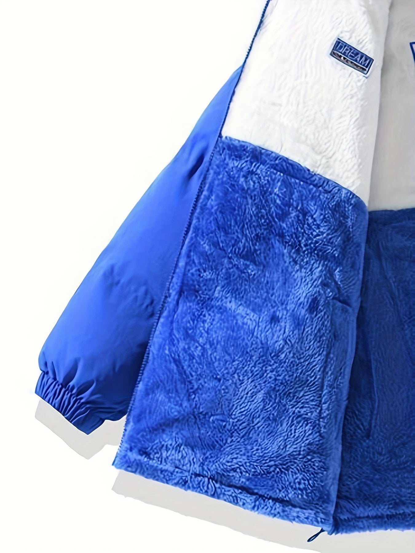 Տղամարդու երկկողմանի բրդյա ծածկույթով հաստ բաճկոն՝ առօրյա կանգնած օձիքով՝ տառերի տպագրությամբ, սովորական չափսերով, գրպաններով, պոլիեսթերային լցոնով, բազմակողմանի աշուն/ձմեռ համար, ձմեռային բաճկոն