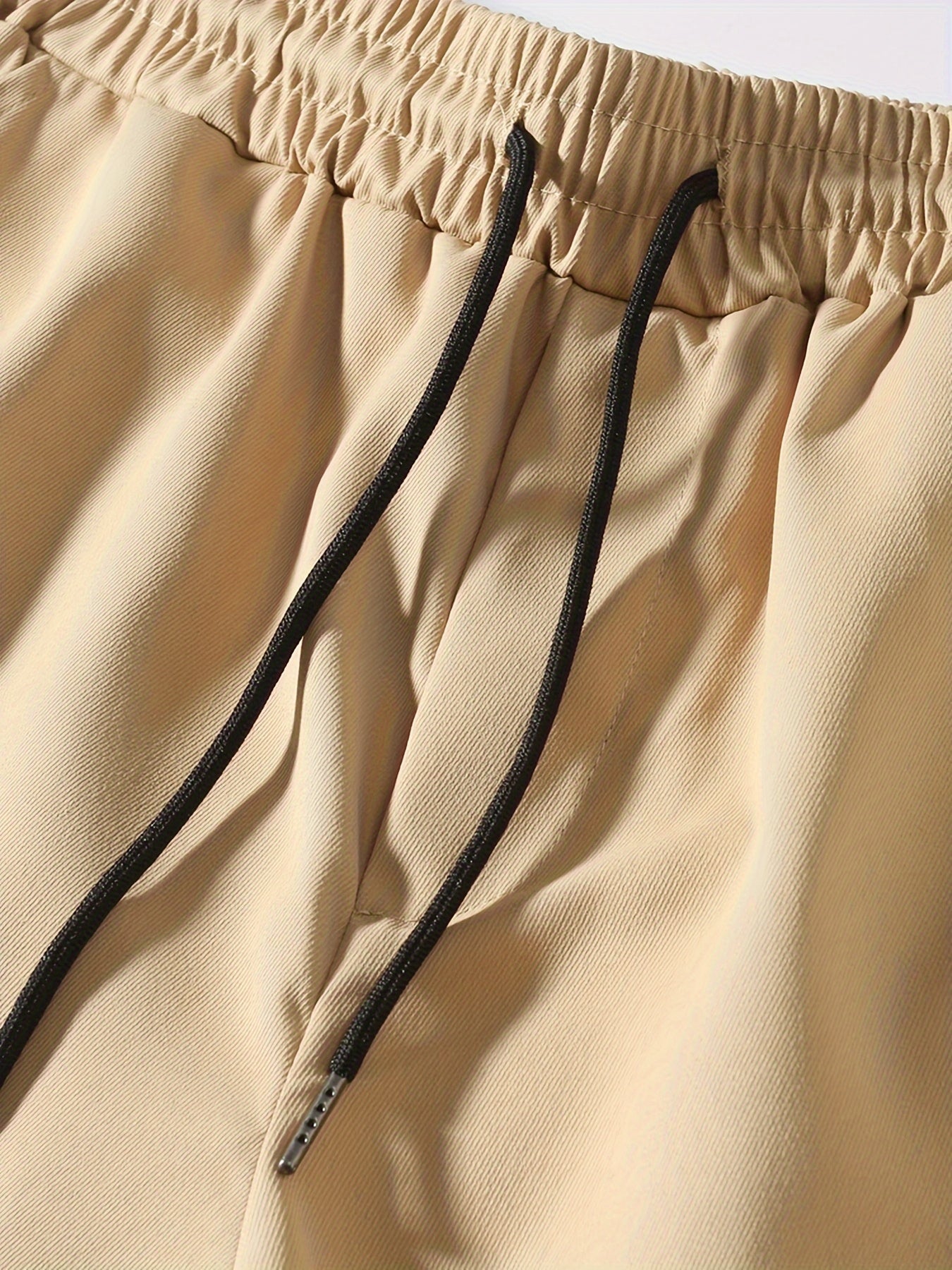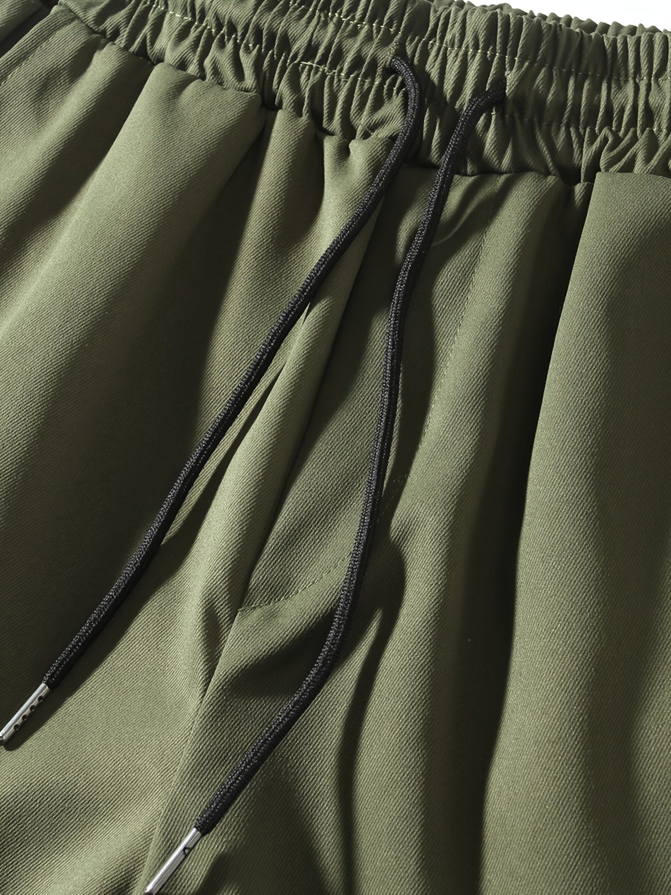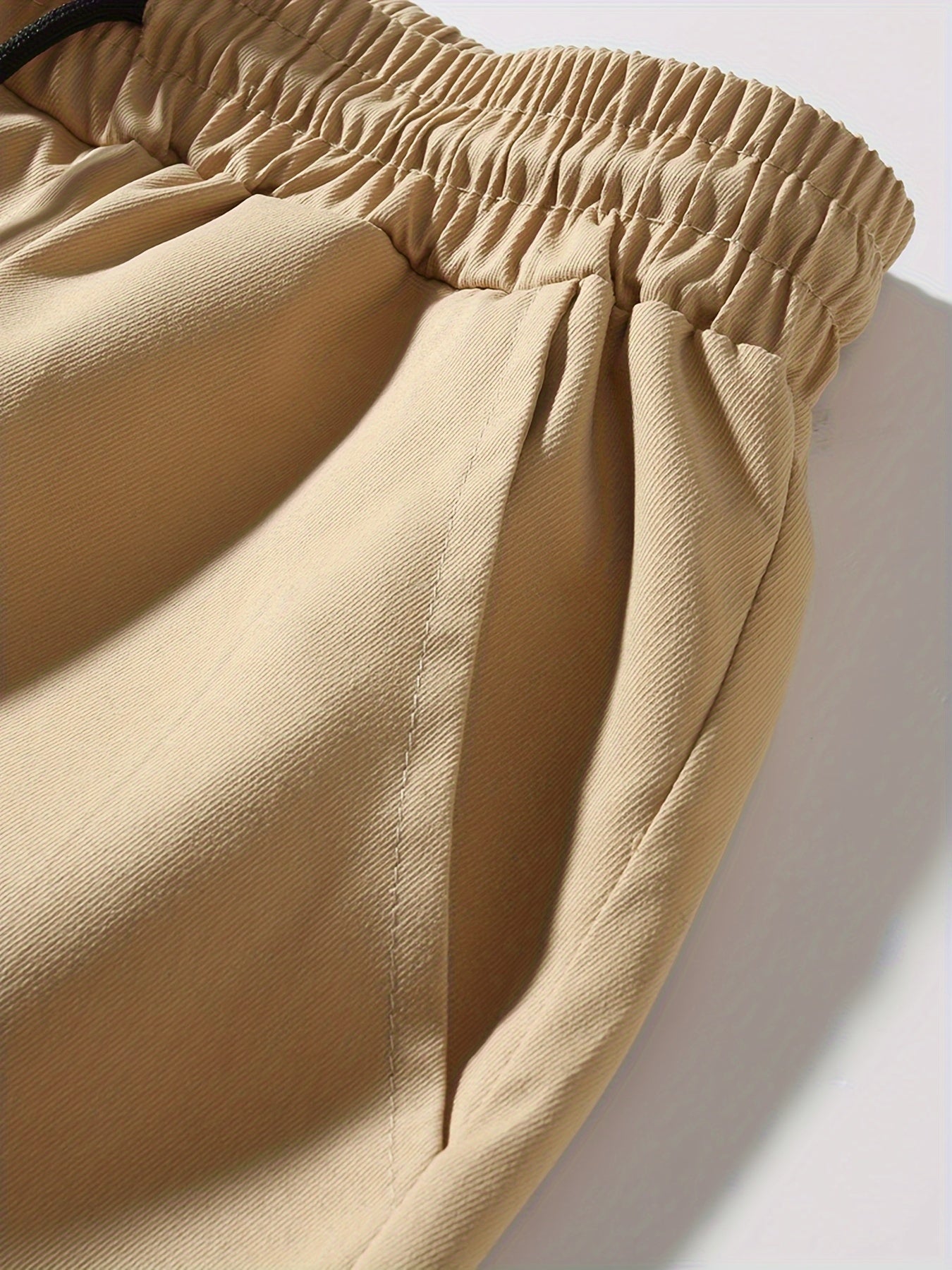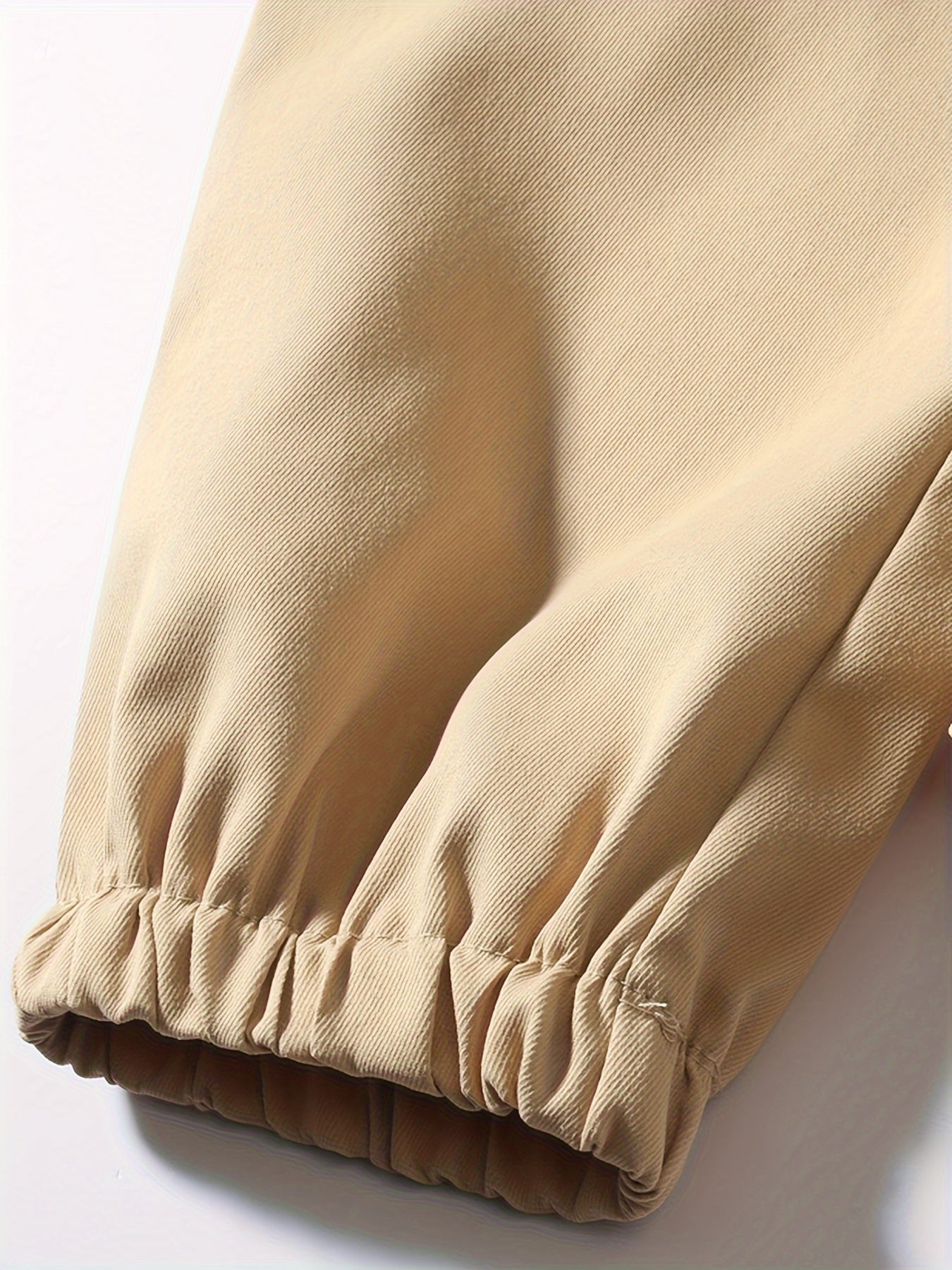 Տղամարդկանց նորաձև բեռների շալվար, 100% պոլիեսթեր հյուսված գործվածք, բոլոր սեզոնային ազատ ձևավորումը գոտկատեղով, բազմագրպանային ձևավորում, միաձույլ գույն, միջին գոտկատեղ, սովորական երկարություն, չձգվող, հանգստյան օրերի համար սովորական վազք - 160 գ/մ²