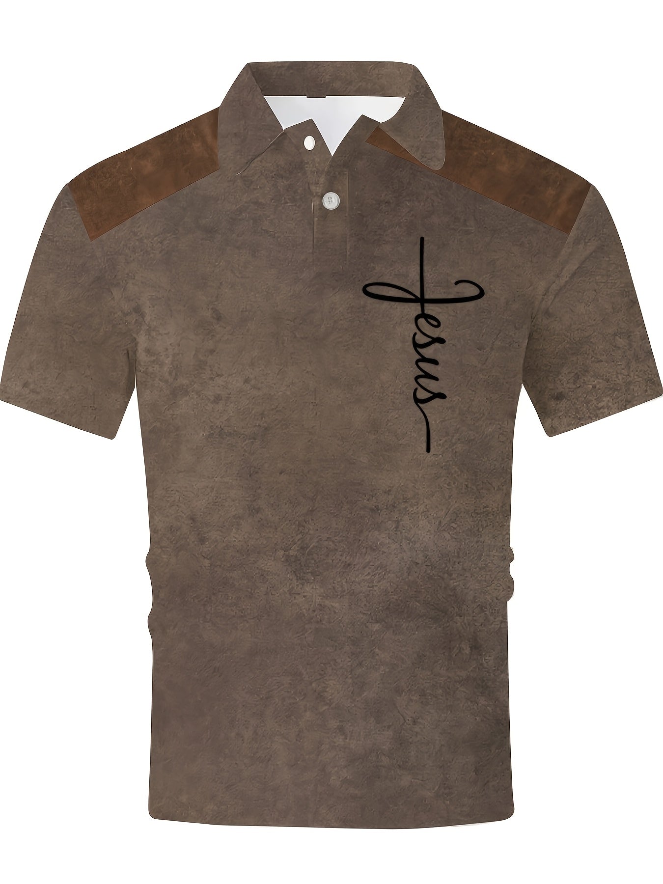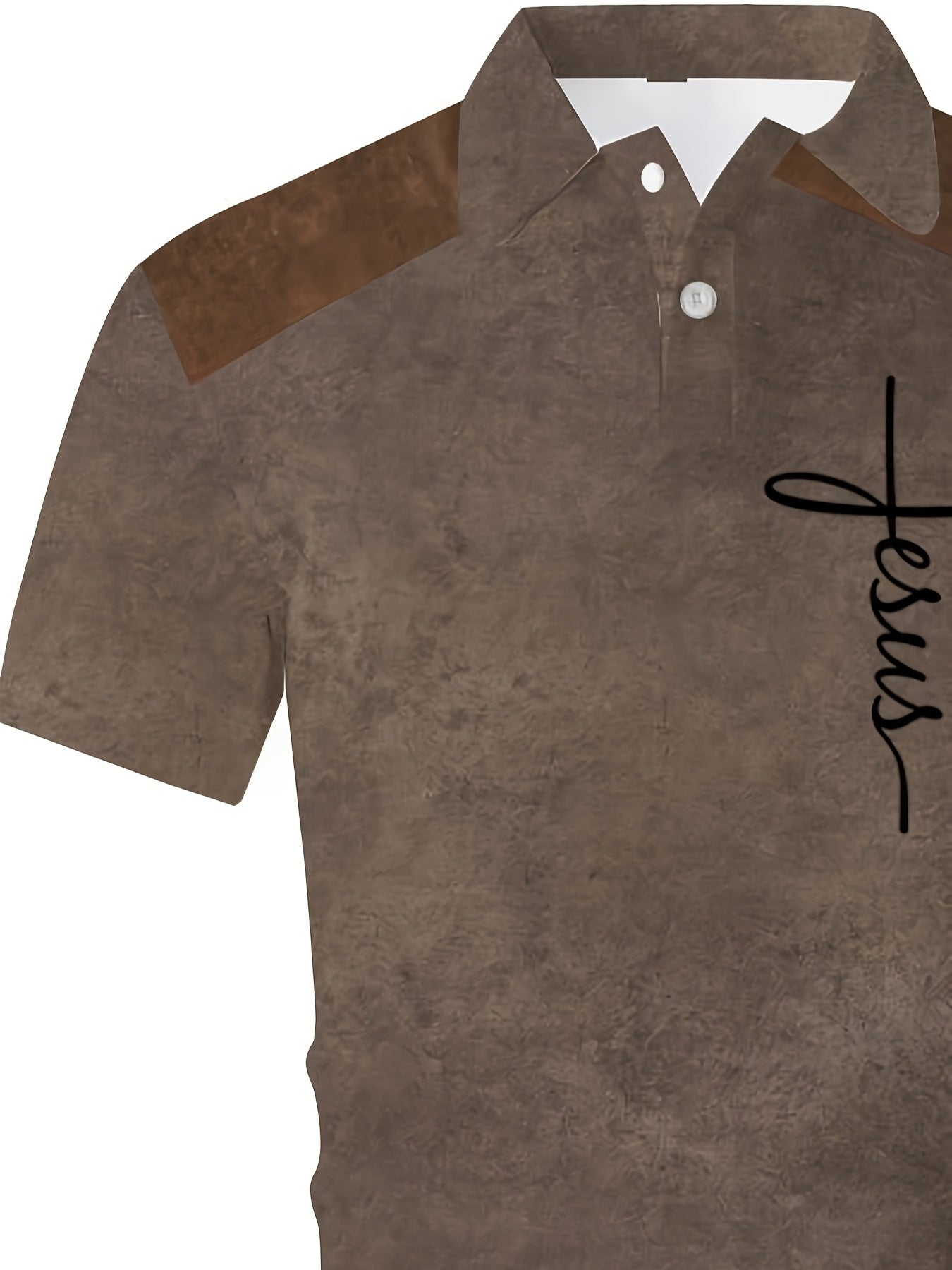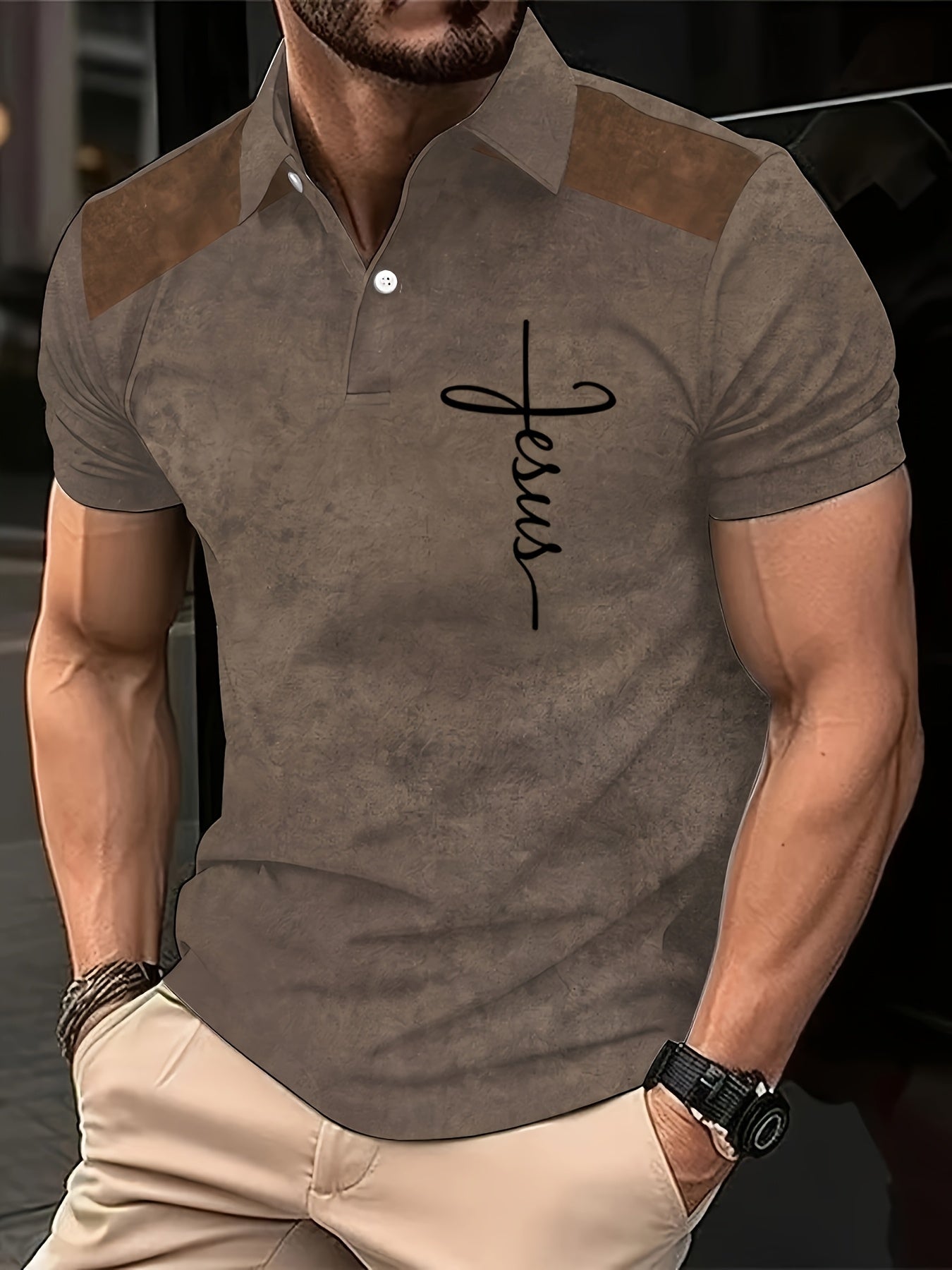Տղամարդկանց Նորաձևություն Պատահական անհատականության կարճաթև մանյակ պոլո վերնաշապիկ, Vintage Splicing անգլերեն տառերով տպագիր, ամառային հագուստ