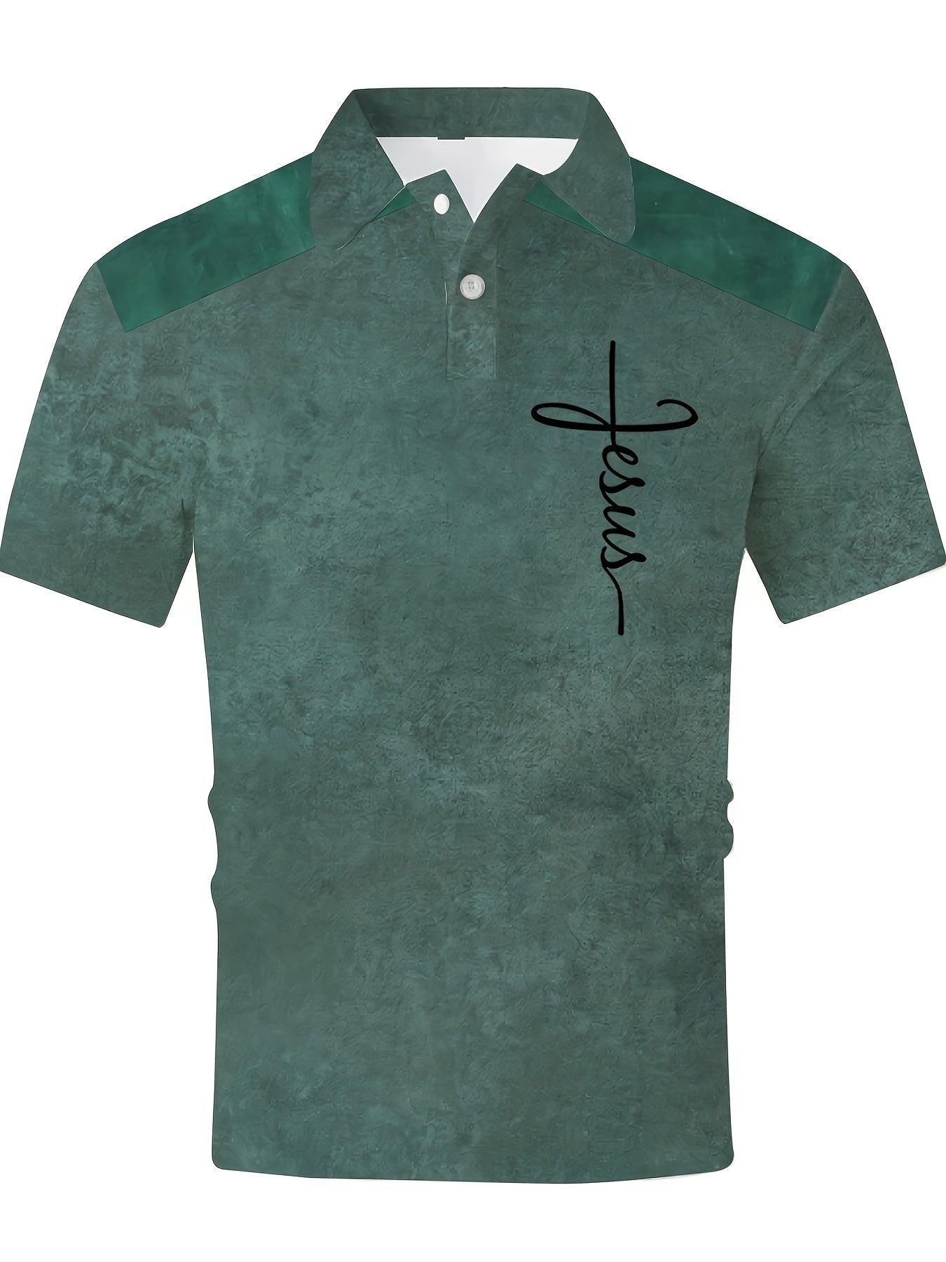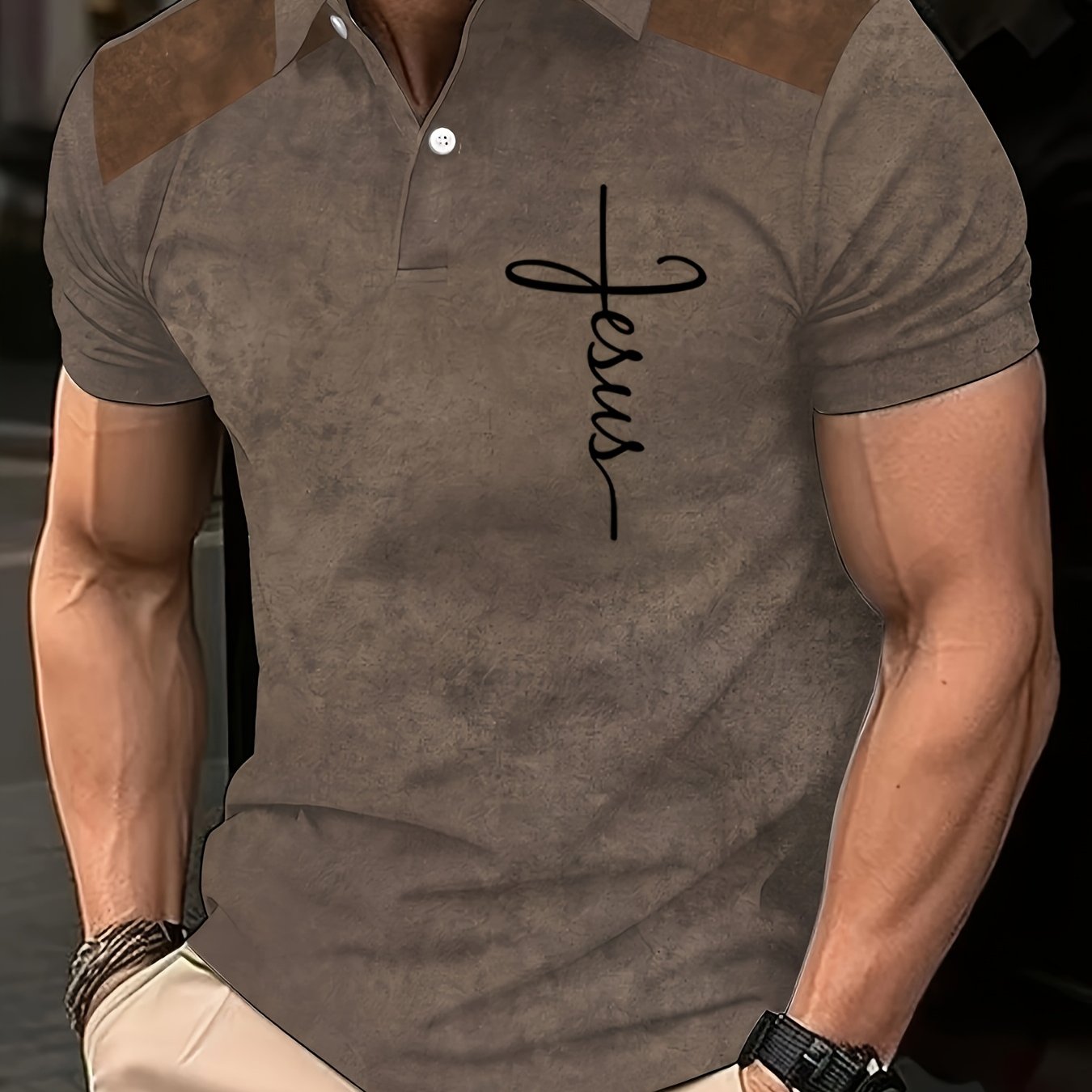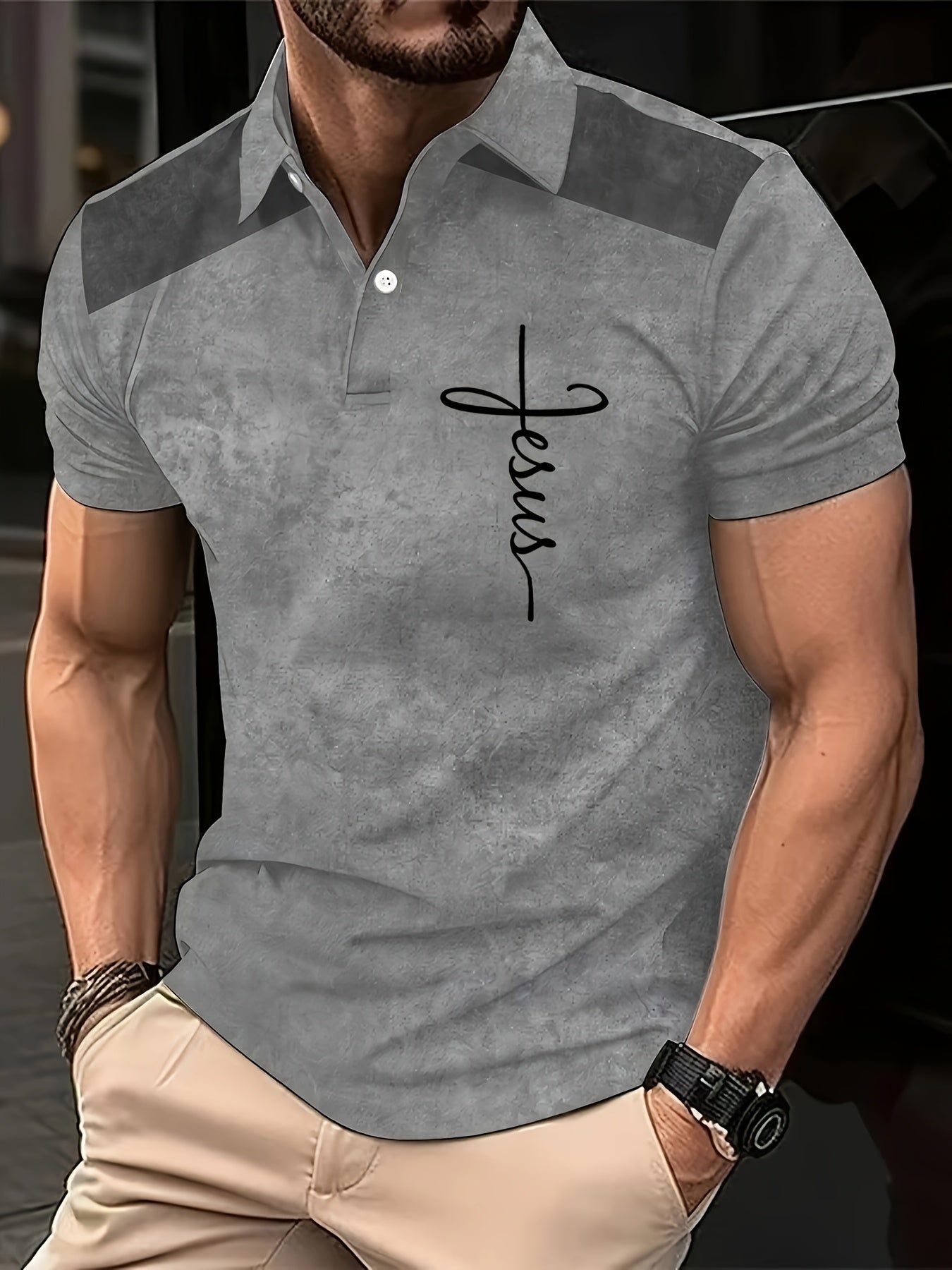 Տղամարդկանց Նորաձևություն Պատահական անհատականության կարճաթև մանյակ պոլո վերնաշապիկ, Vintage Splicing անգլերեն տառերով տպագիր, ամառային հագուստ