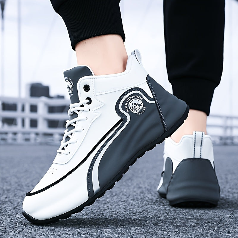 Men'S Fashion Classic Sneakers, Low Top Lace-up Athletic Shoes, Shock Absorbing Breathable Running Shoes, Durable Thick Sole Skateboard Shoes, Solid Color Graphic Design, Round Toe, Faux Upper/Sole, Fabric Inner, EVA Insole f
