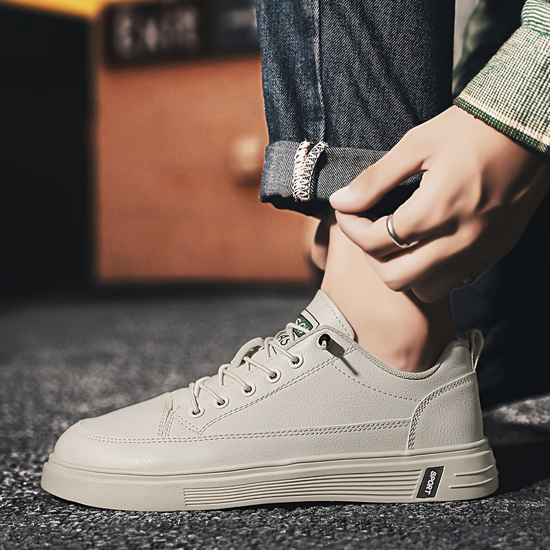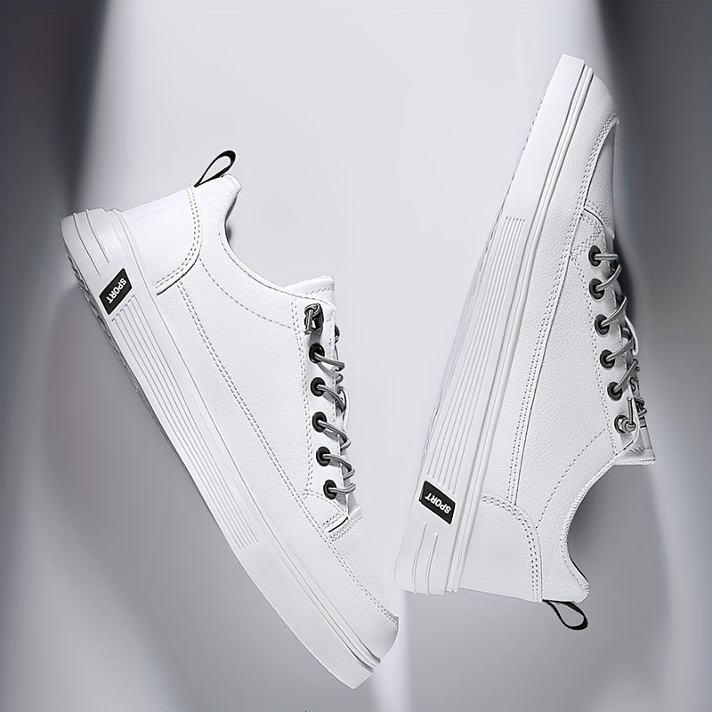 Տղամարդու նորաձև սպորտային կոշիկներ, սպիտակ, թեթև, չսահող, շնչող, կապիչներով, առօրյա քայլքի կոշիկներ, միագույն, առաձգական ժապավենով փակվող, կլոր քթով, ցածր վերնամասով, բոլոր եղանակների, պրեպի ոճի, արհեստական վերնամաս, կտորե ներքին մաս, ՊՎՔ ներբան,