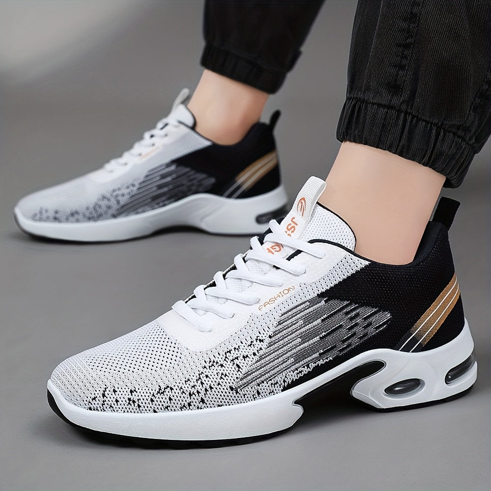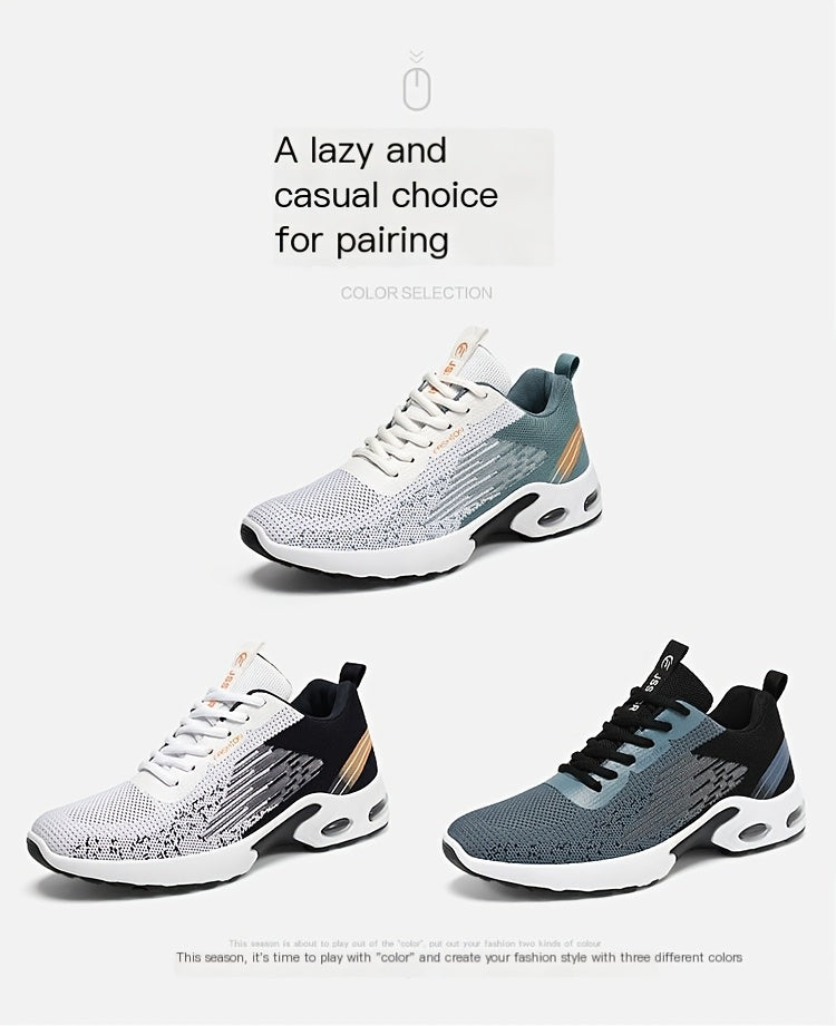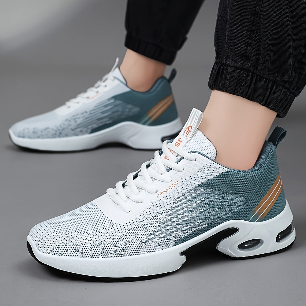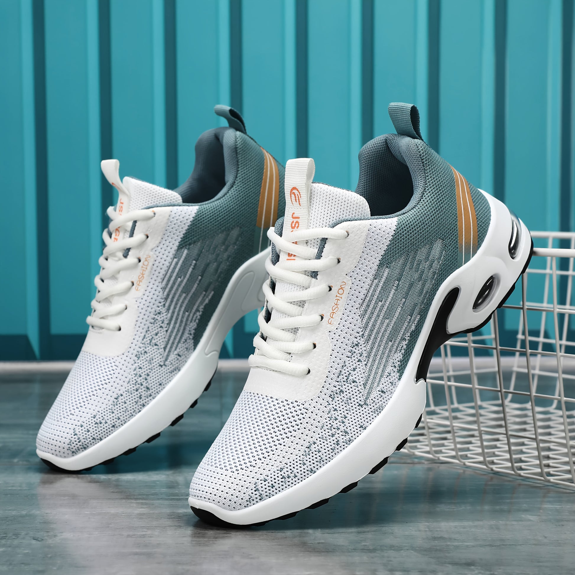 Տղամարդկանց նորաձև սպորտային սպորտային կոշիկներ, շնչող ցանցկեն գործվածքից վերնամաս, հարմարավետ կապիչներով վազքի կոշիկներ՝ ՊՎՔ ներբանով և գործվածքե ներբանով՝ բոլոր եղանակների համար։