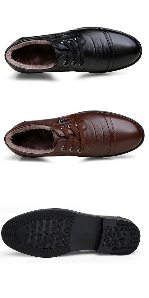 Տղամարդու բնական կաշվից ձմեռային տաք, գործնական, առօրյա կոշիկներ՝ ռետինե ներբանով, ցածր վերնամասով, կապիչներով և գործվածքային աստառով՝ ամբողջ օրվա հարմարավետության համար, սև միագույն՝ գրասենյակի և ամենօրյա կրելու համար։