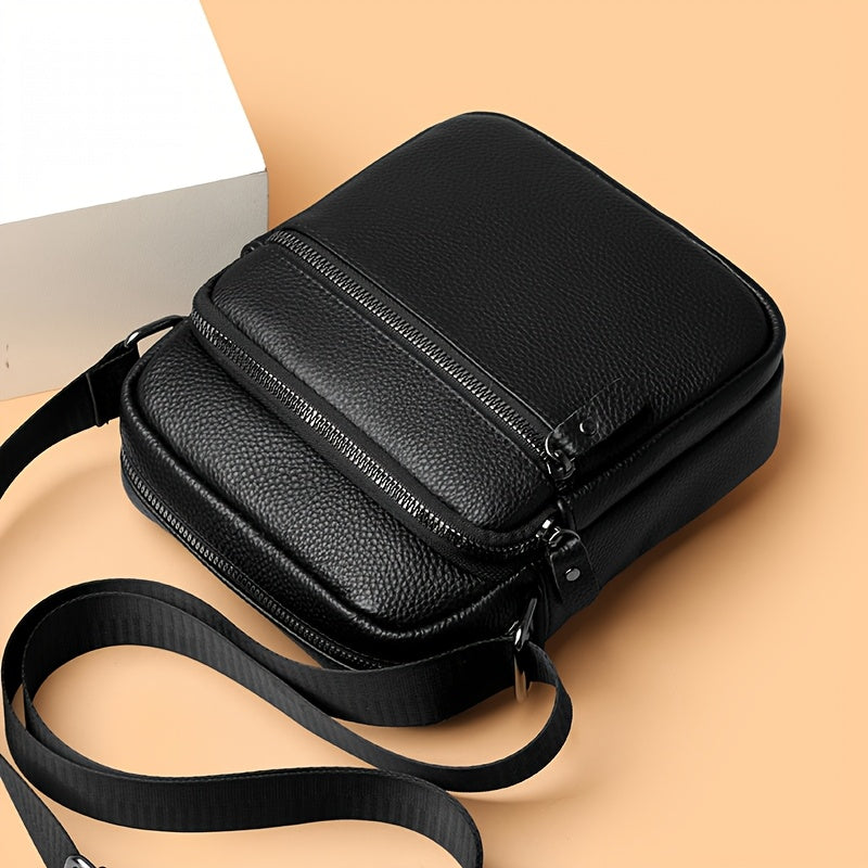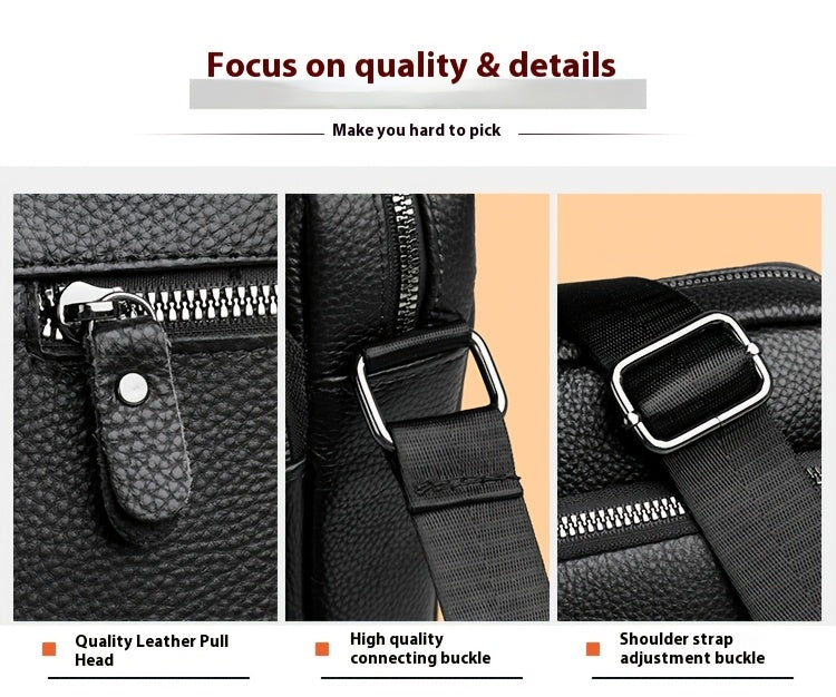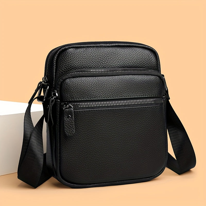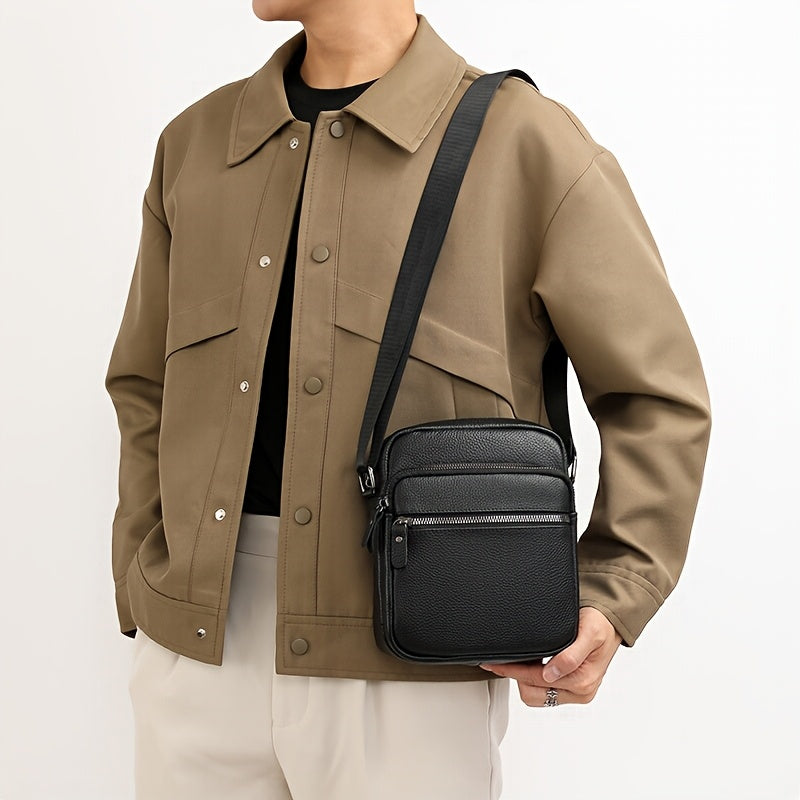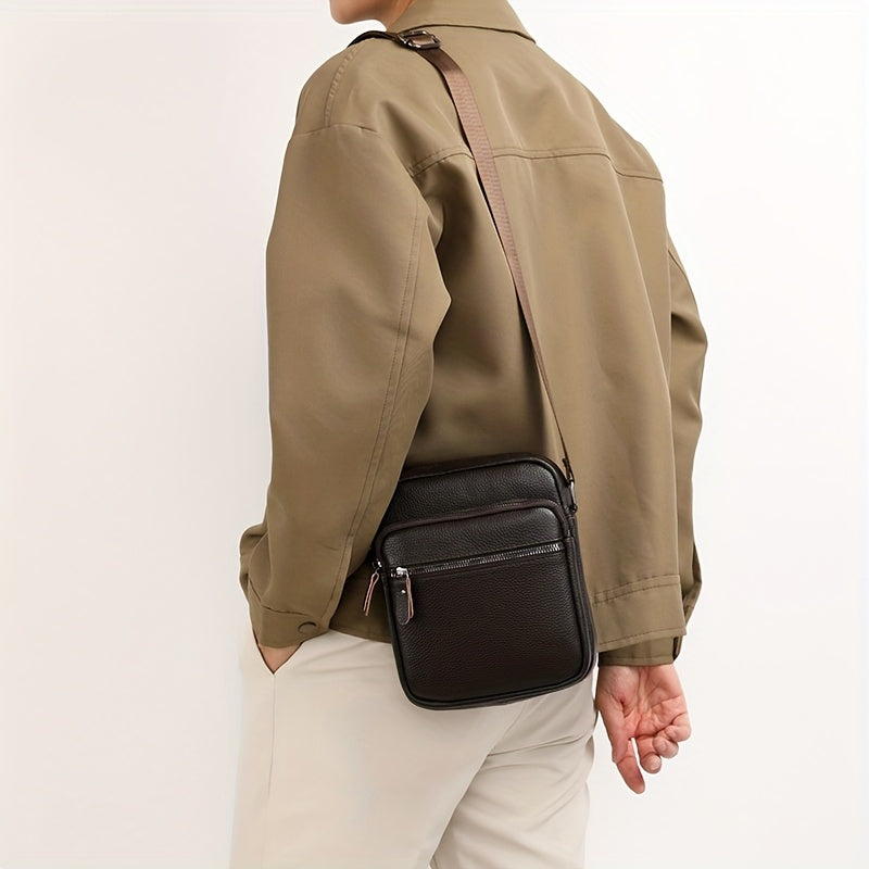Տղամարդու իսկական վերին հատիկավոր կաշվից պատրաստված խաչաձև պայուսակ - առօրյա ոճ, կարգավորվող ժապավենով, մեծ տարողությամբ ուսի պայուսակ՝ զբոսանքի համար