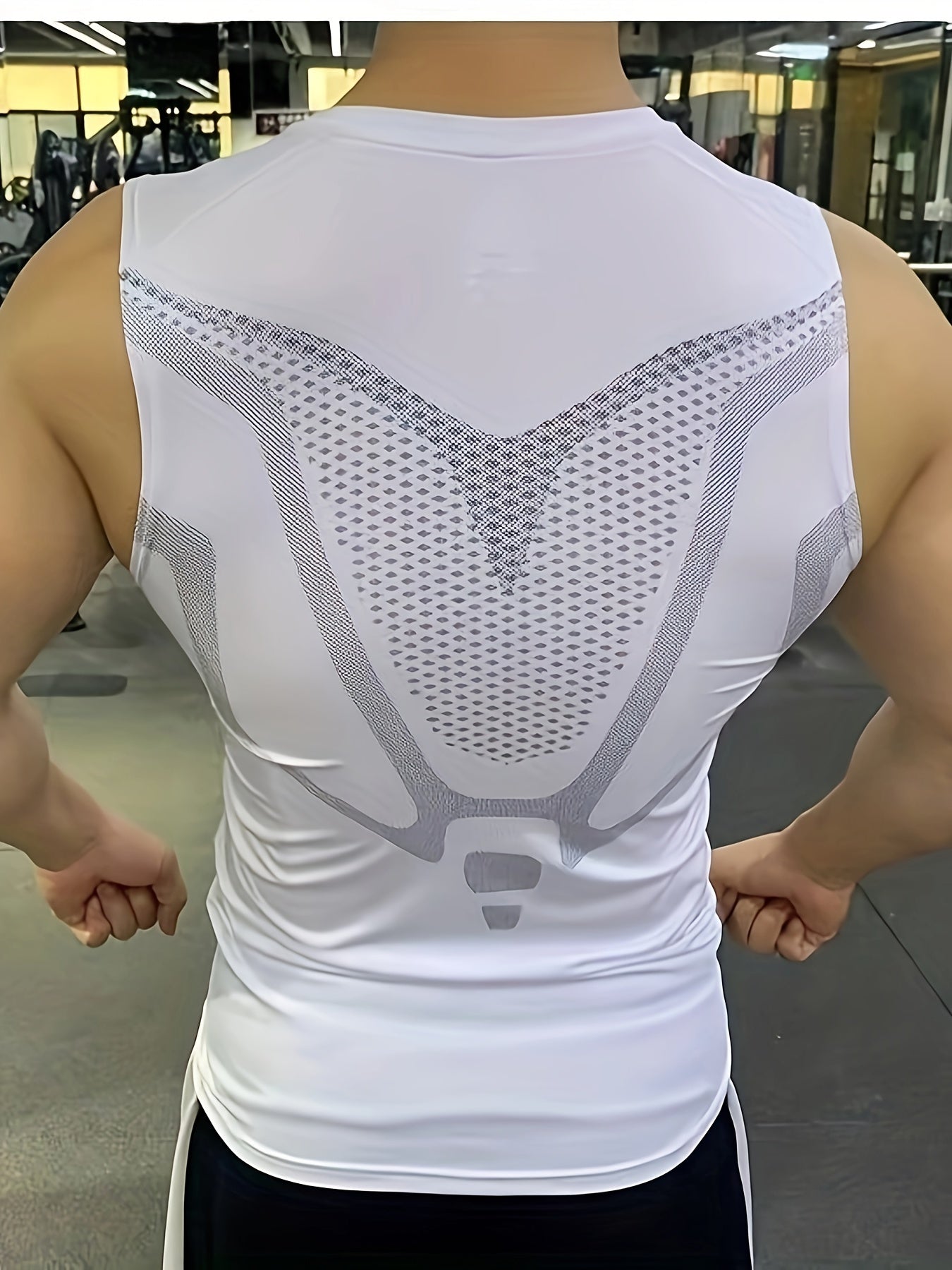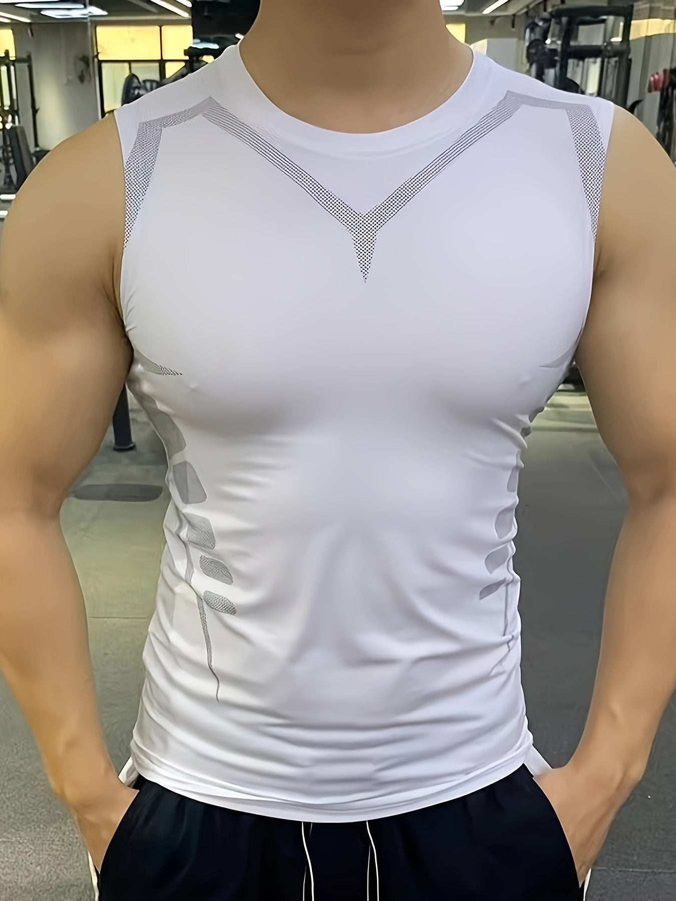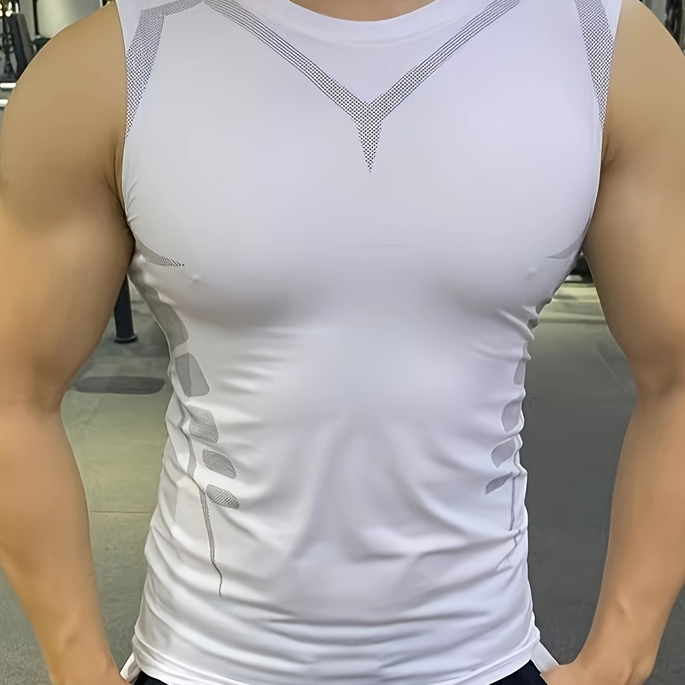 Տղամարդկանց երկրաչափական պրինտով, բարձր ձգվող նիհար, հարմարեցված տանկի վերնաշապիկ, արագ չորացում և խոնավությունը մաքրող սպորտային ժիլետ՝ բոդիբիլդինգի, վազքի և մարզման հագուստի համար