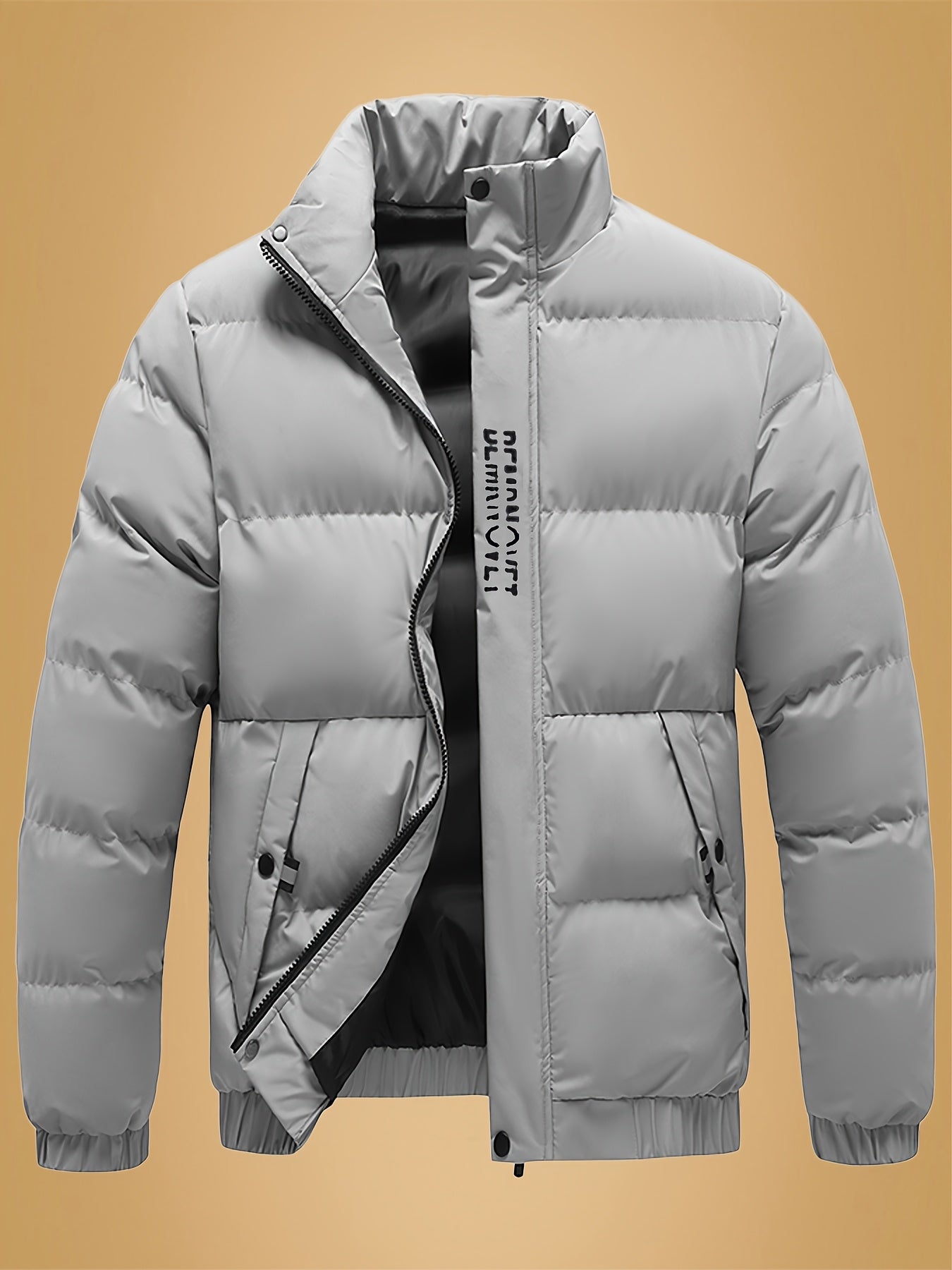 Տղամարդու ամուր ջերմային բաճկոն - Ձմեռային վերնազգեստ՝ կանգնած օձիքով և կայծակաճարմանդով, սև/սպիտակ վերարկու՝ գրվածքով - լվացքի մեքենայով լվացվող սառը եղանակի բաճկոն տղամարդկանց համար (առօրյա և պաշտոնական) - իդեալական է դահուկավազքի, սնոուբորդի համար