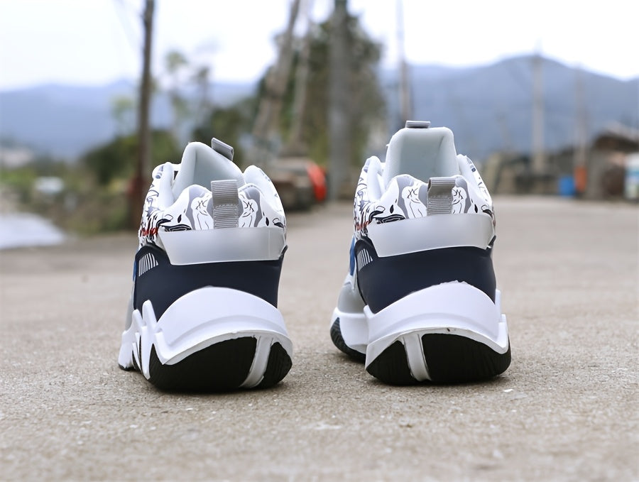 Men's High-Top Basketball Sneakers, Preppy Street Style, Solid Color with Cartoon Stripes, All-Season Lace-Up Sports Shoes, Faux Upper, Fabric Inner, Rubber Sole, for Running, Hiking Casual Wear, Outdoor Activities Shoes