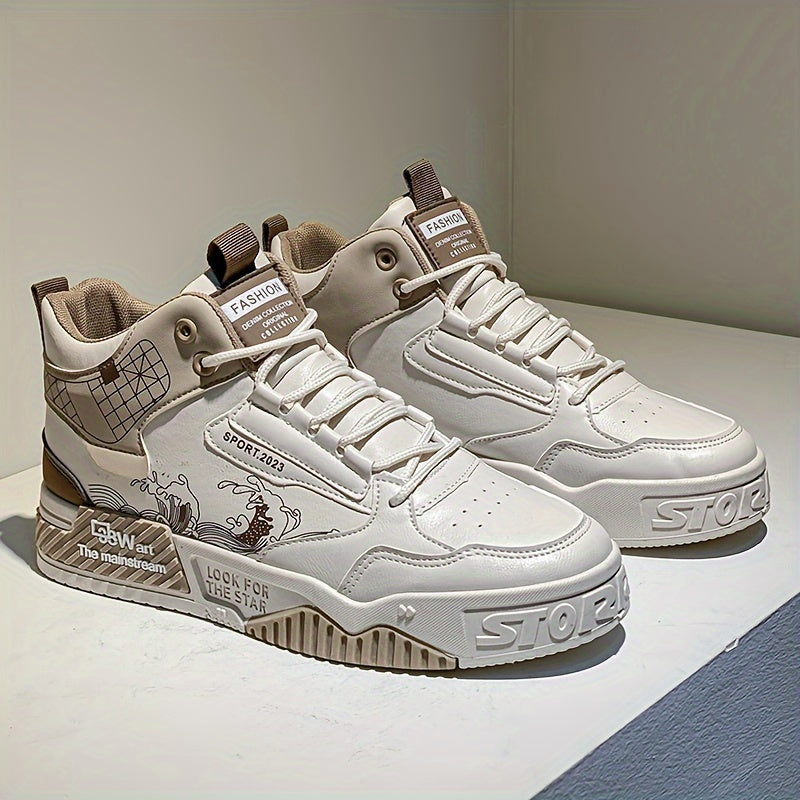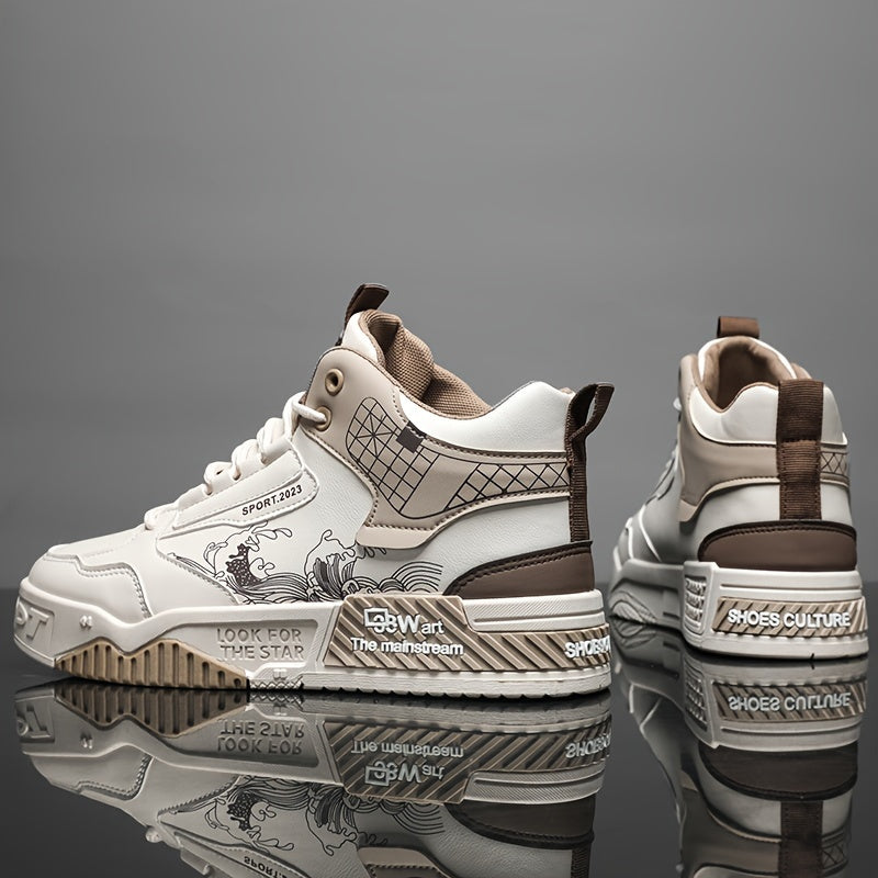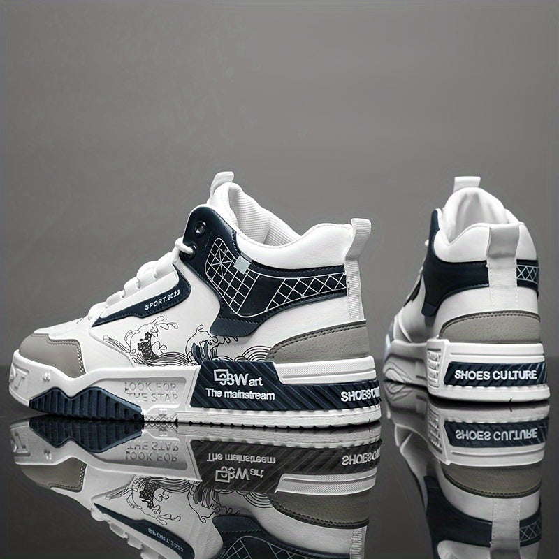 Տղամարդկանց բարձրակրունկ սքեյթբորդ սպորտային կոշիկներ՝ հարմարավետ, չսահող, ամենօրյա կոշիկներ՝ զբոսանքի և վազքի համար, ոճային գծավոր/միատարր դիզայնով, կապիչներով, բոլոր եղանակներին համապատասխան։