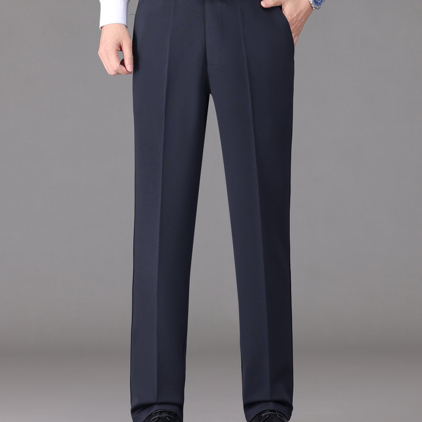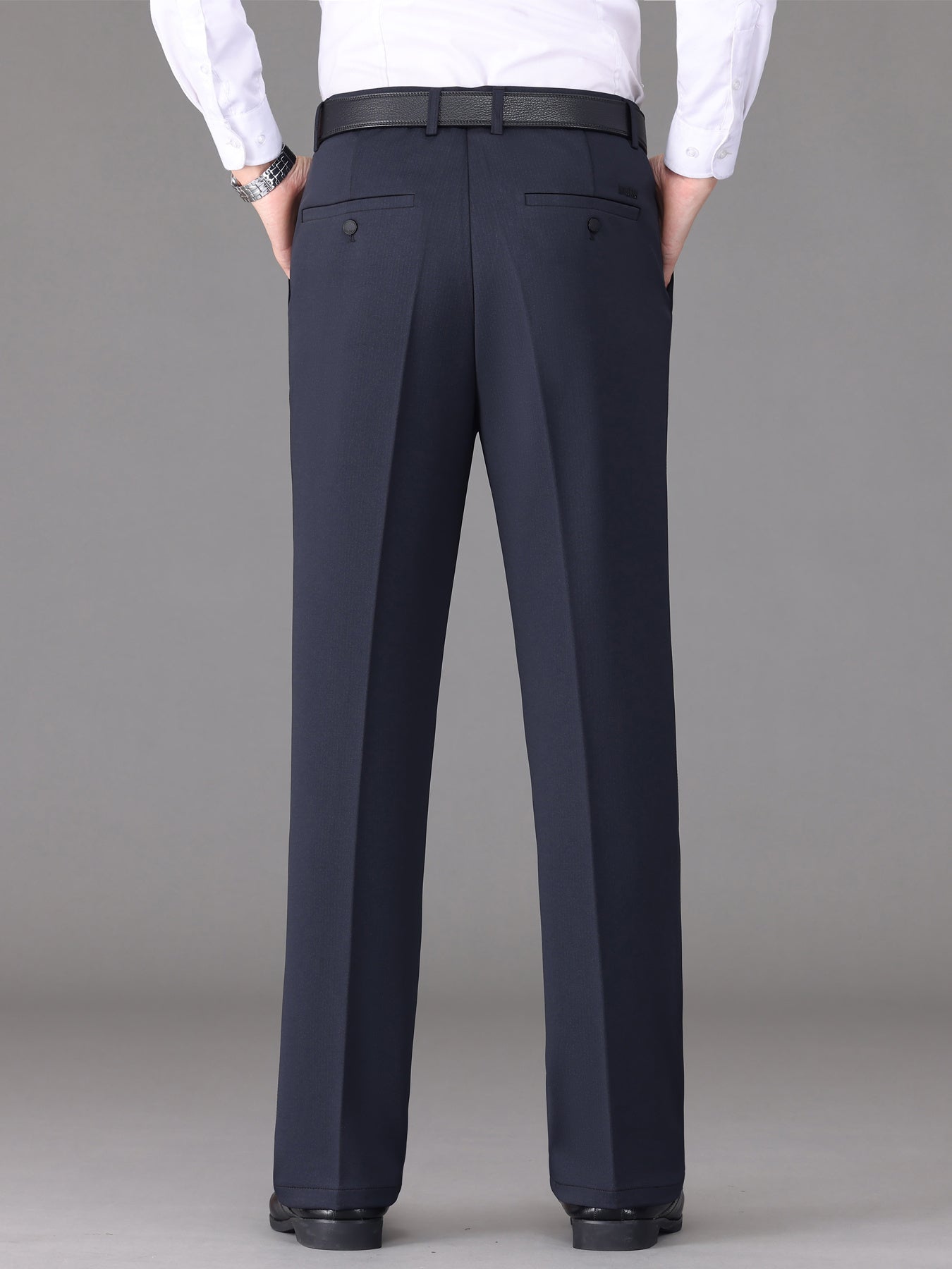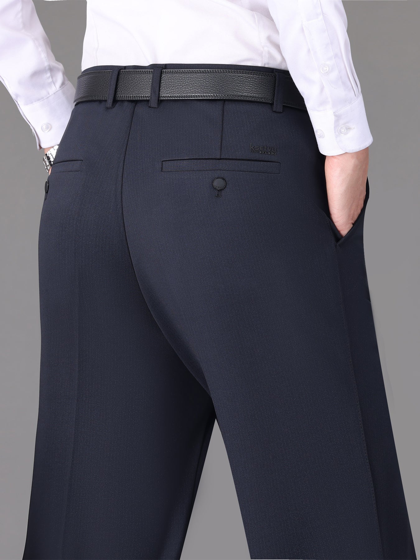 Տղամարդկանց բարձր գոտկատեղով ձգվող շալվար - կնճիռների դիմացկուն, մուգ կապույտ բիզնես պատահական գրպաններով, ուղիղ ոտքերի համար նախատեսված գարուն/աշուն