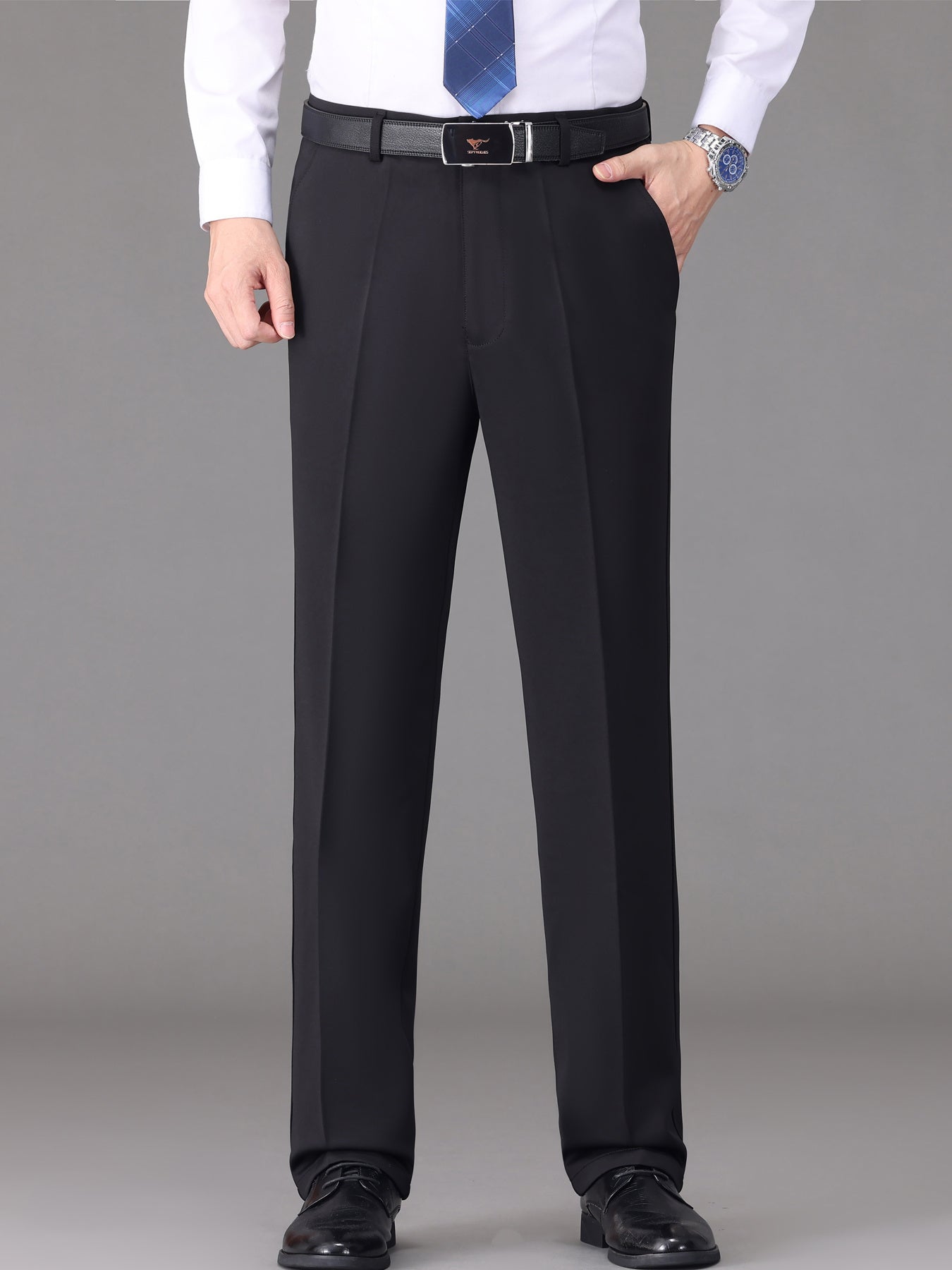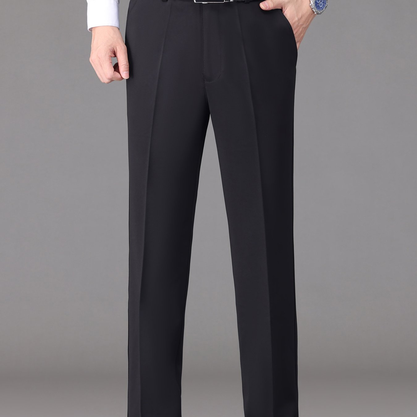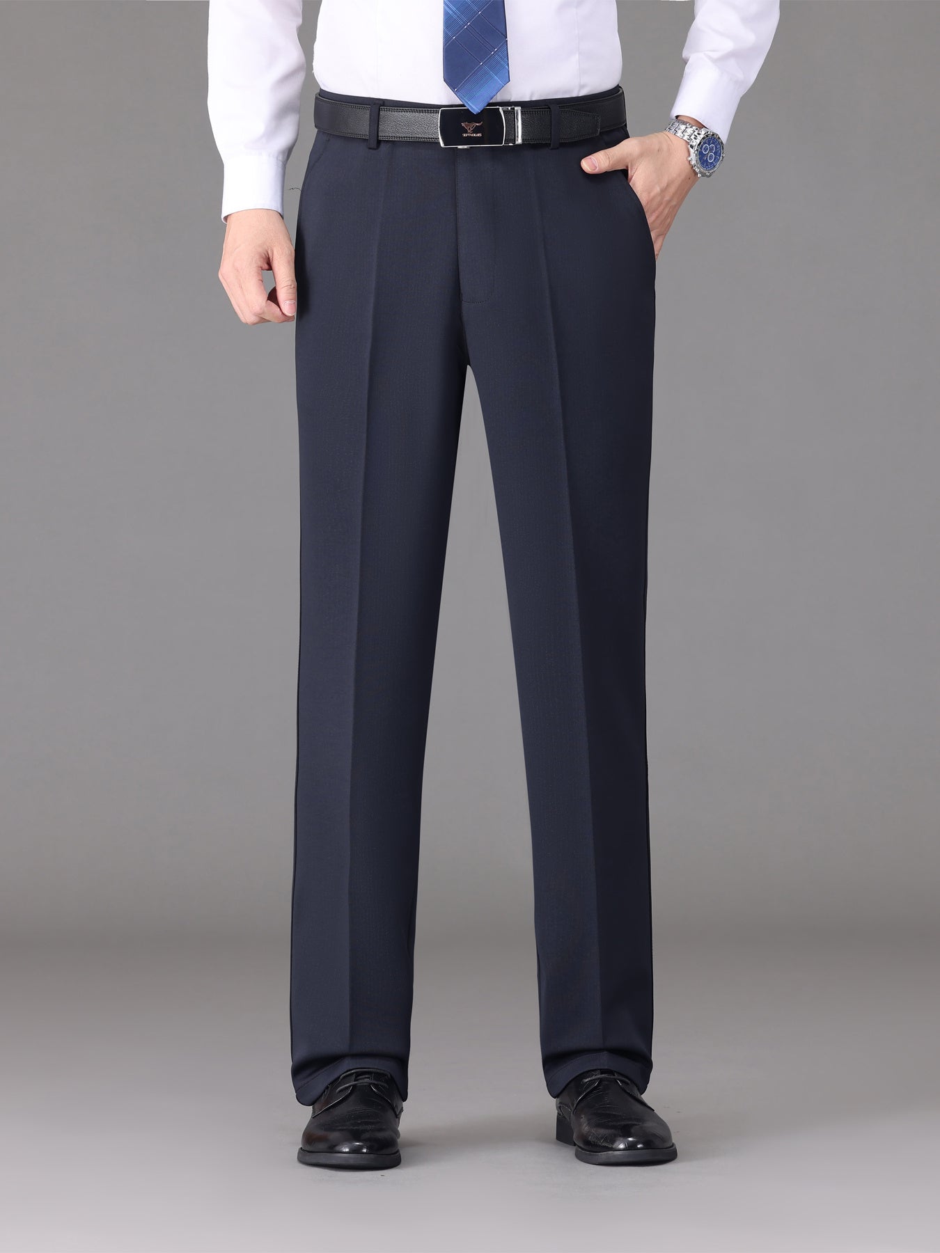 Տղամարդկանց բարձր գոտկատեղով ձգվող շալվար - կնճիռների դիմացկուն, մուգ կապույտ բիզնես պատահական գրպաններով, ուղիղ ոտքերի համար նախատեսված գարուն/աշուն
