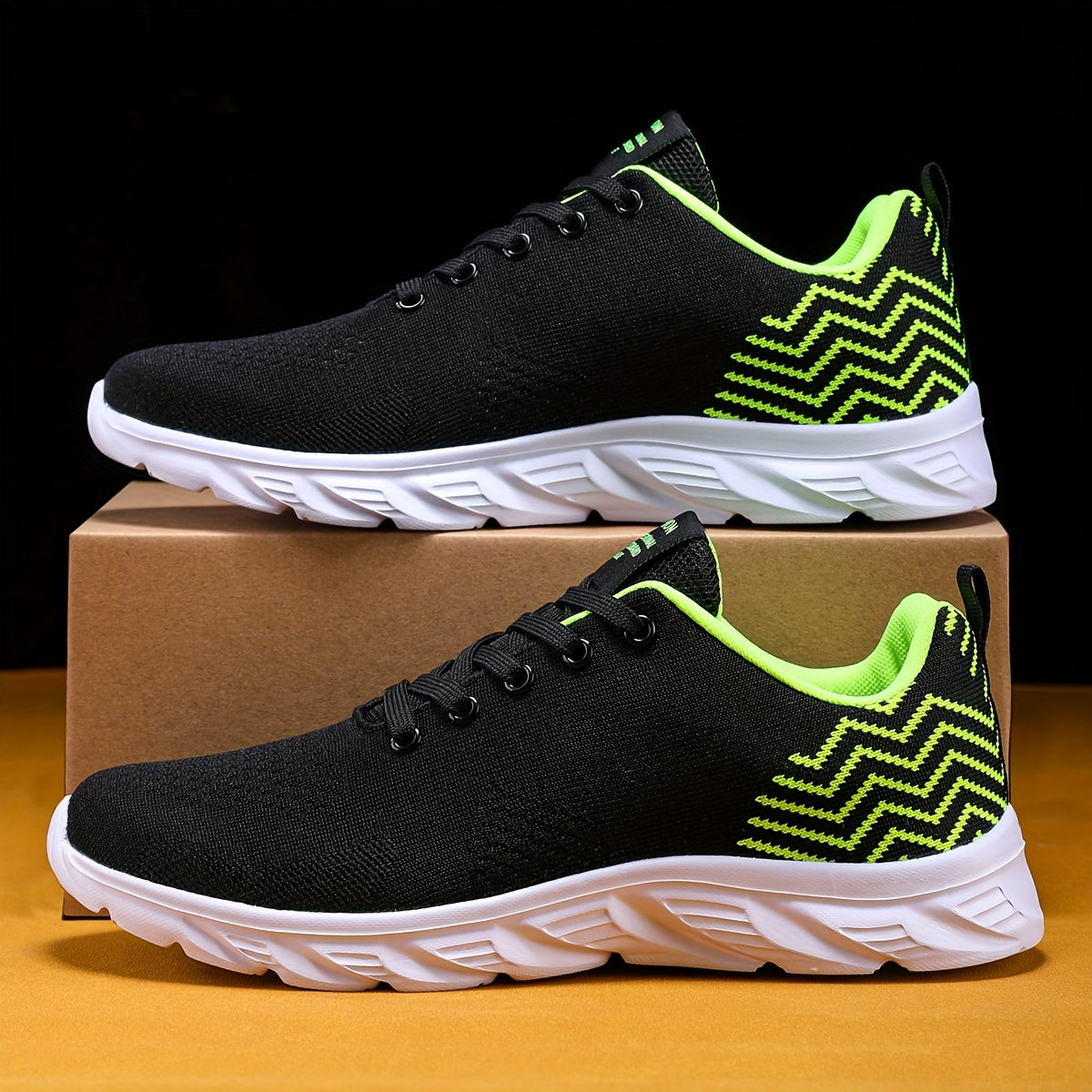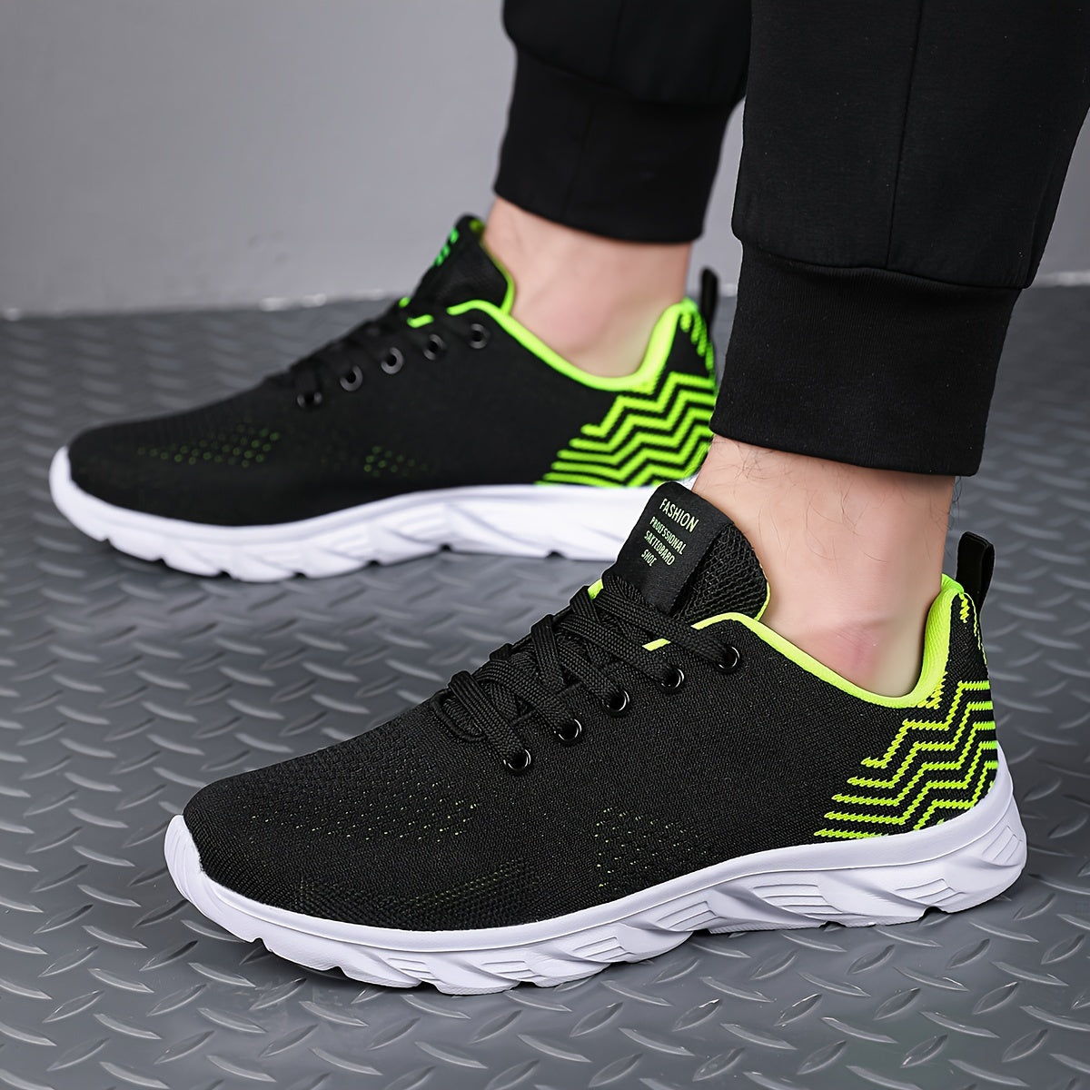 Տղամարդու տրիկոտաժե, շնչող վազքի կոշիկներ, թեթև, չսահող, փափուկ ներբանով, հարմարավետ զբոսանքի, վազքի, ֆիթնեսի, ամենօրյա ակտիվության համար, EVA ներբան, գործվածքային վերնամաս, ցածր, կապիչներով փակվող, գծավոր նախշերով, բոլոր եղանակների նորաձևություն
