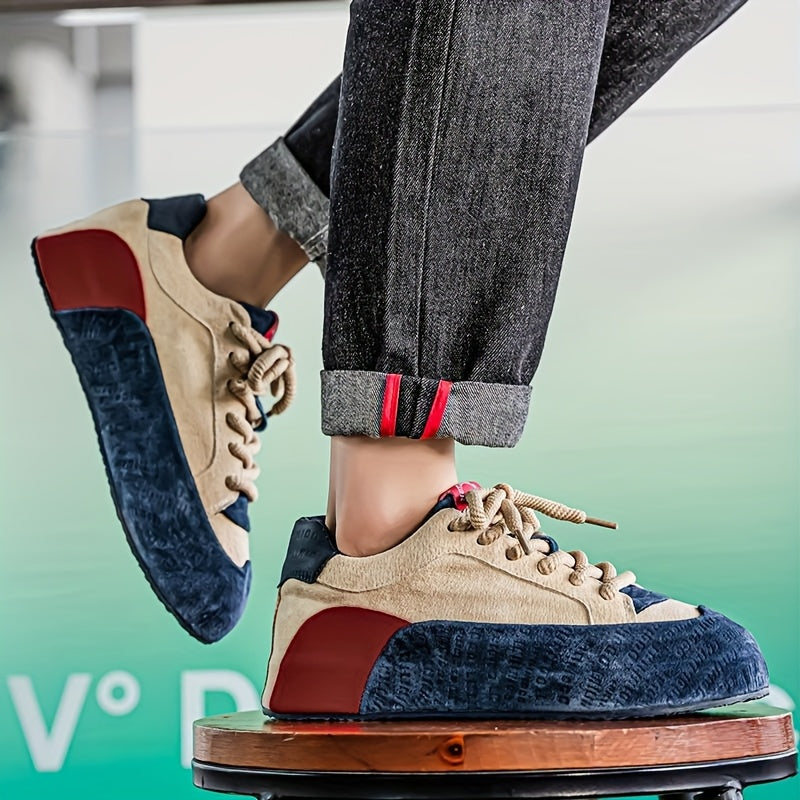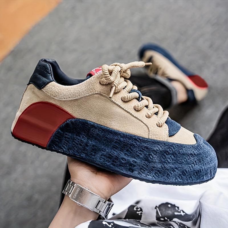 Men's Lightweight Breathable Casual Sneakers - Thick Cushioned Sole, Lace-Up Low-Top Design, Durable PU PVC Construction for All-Season Outdoor, Gym, Running Daily Wear - Black, Outdoor Walking Shoes, Chunky Sole, Comfort