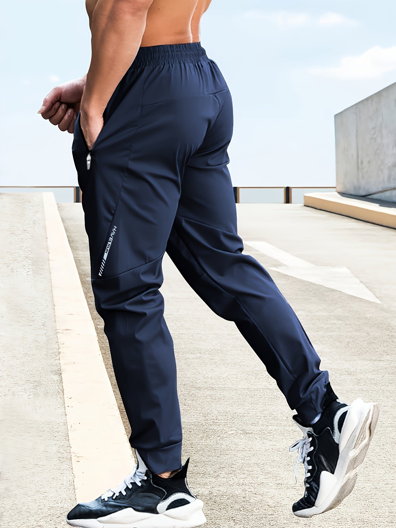 Տղամարդկանց թեթև կարմիր ջոջեր՝ կայծակաճարմանդ գրպաններով - սովորական սպորտային տաբատ, էլաստիկ գոտկատեղ, պոլիեսթեր խառնուրդ, իդեալական վազքի և բացօթյա գործունեության համար, վազքի տաբատ