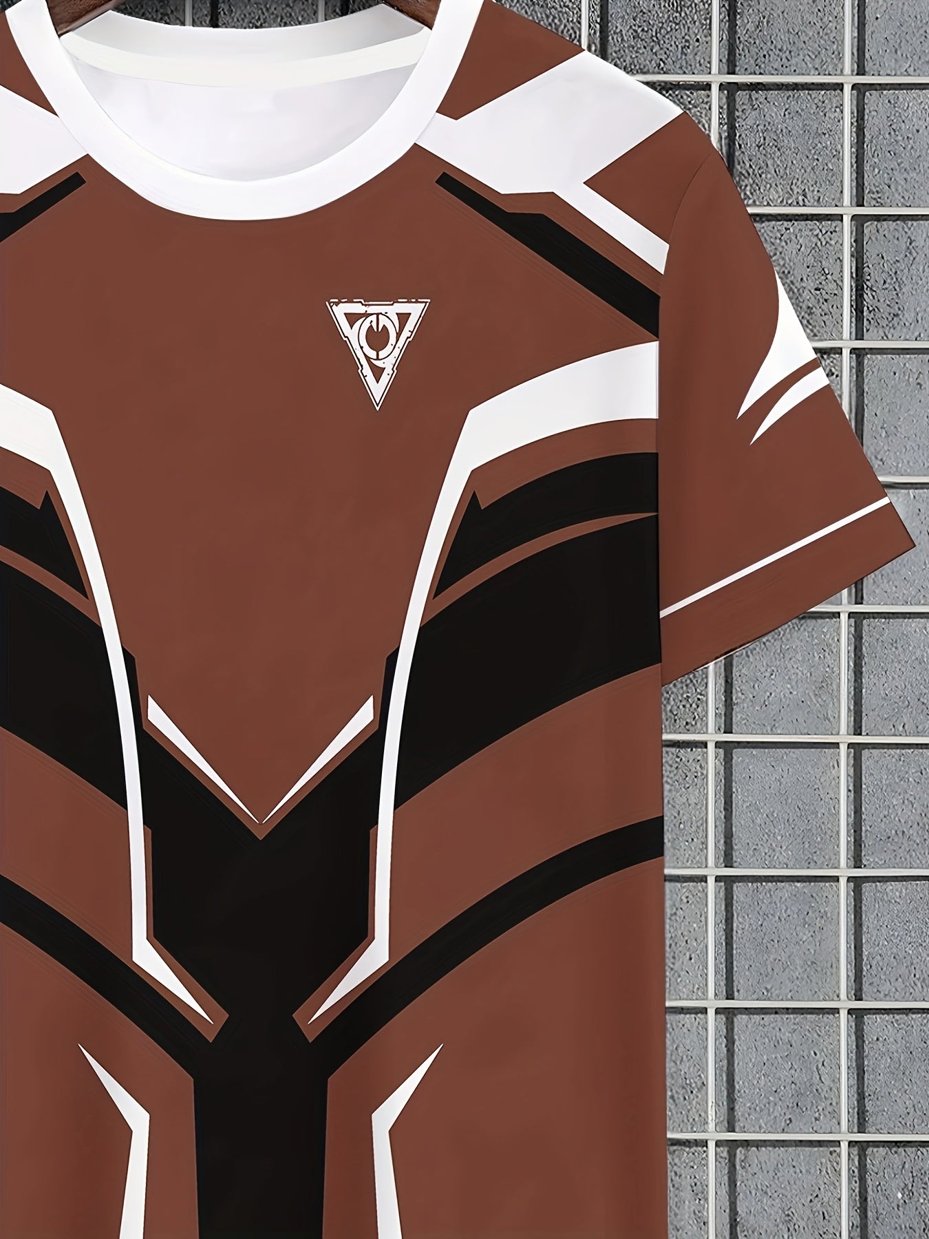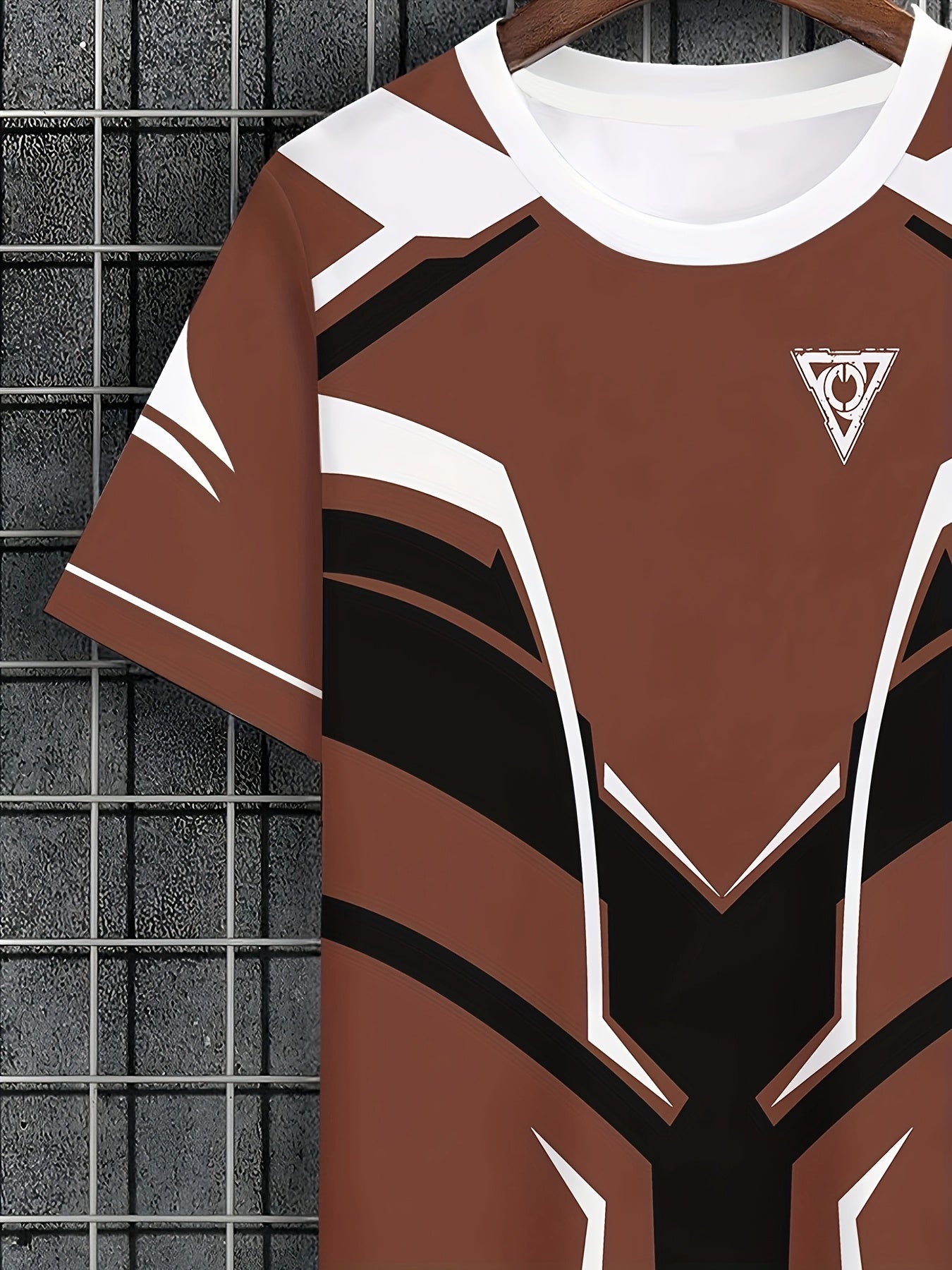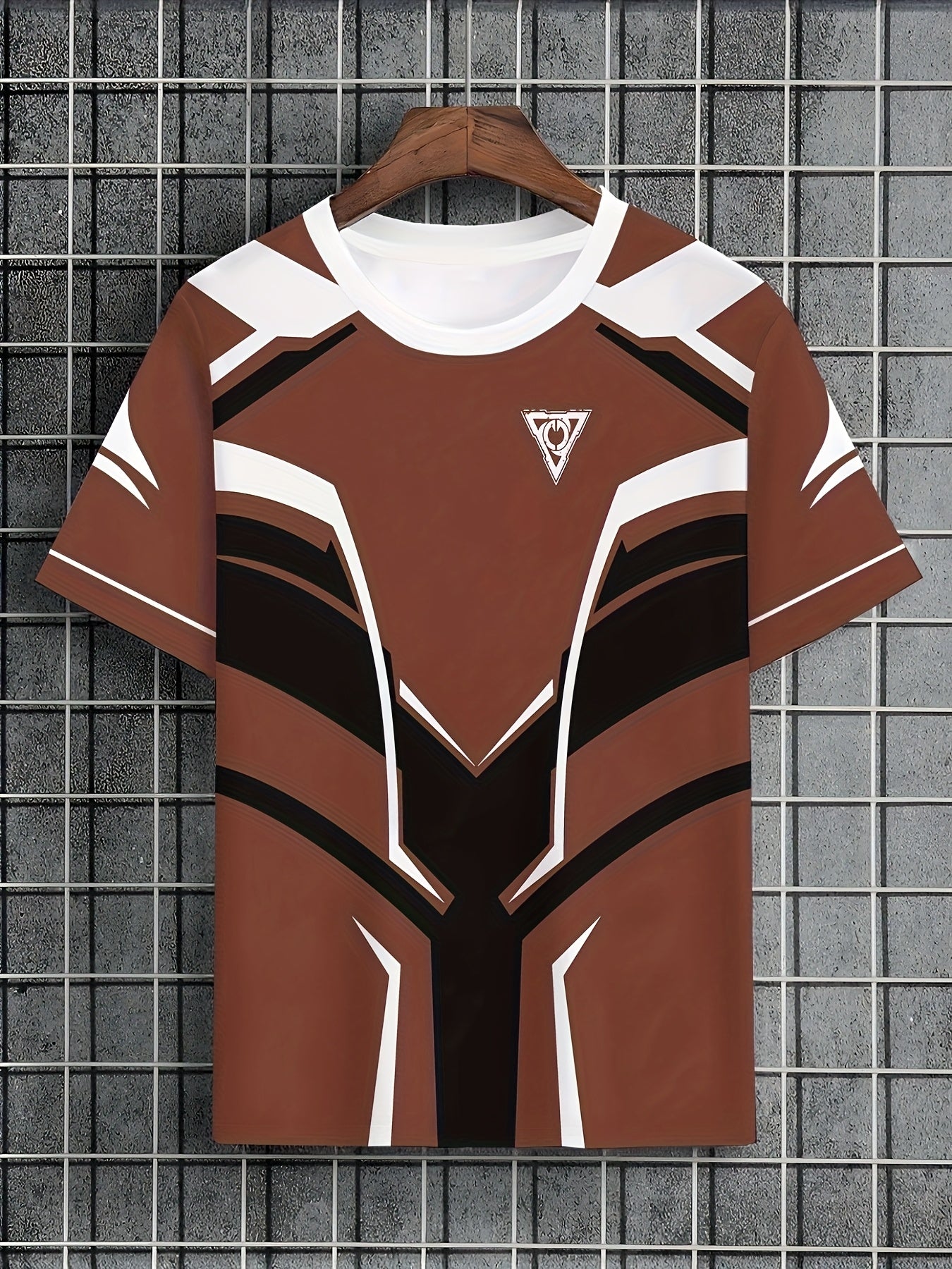 Men's Lightweight Summer T-Shirt - Black/White Print Tee with Modern Angular Lines - Breathable Fabric for Everyday Formal Outfits - Casual Crewneck Shirt for Hot Weather, Summer T Shirts, Stylish Streetwear, Nontransparent