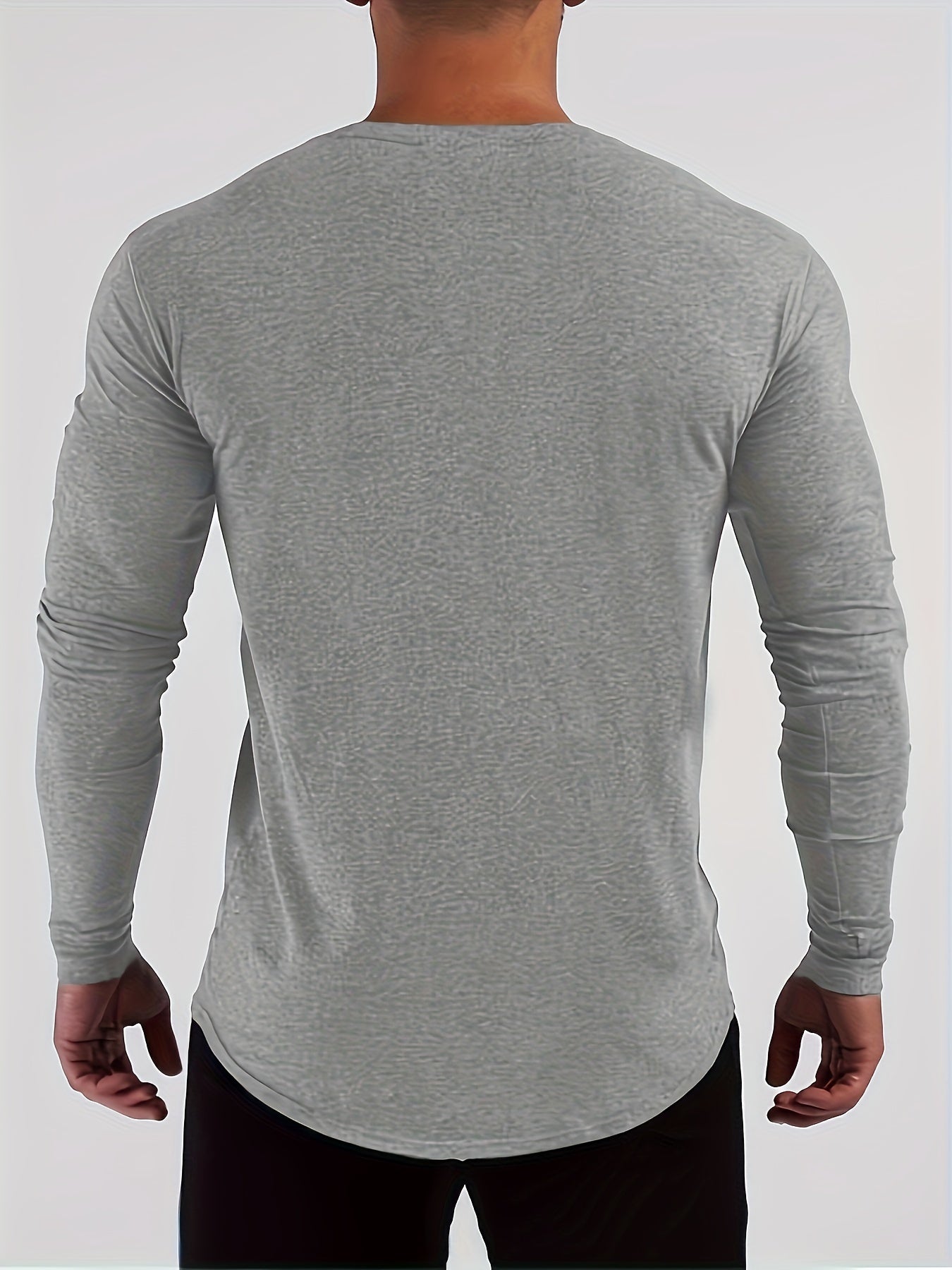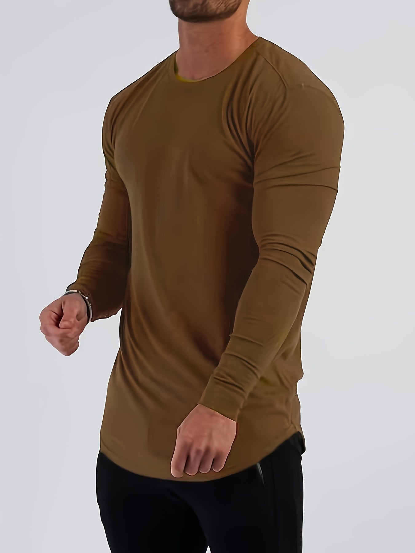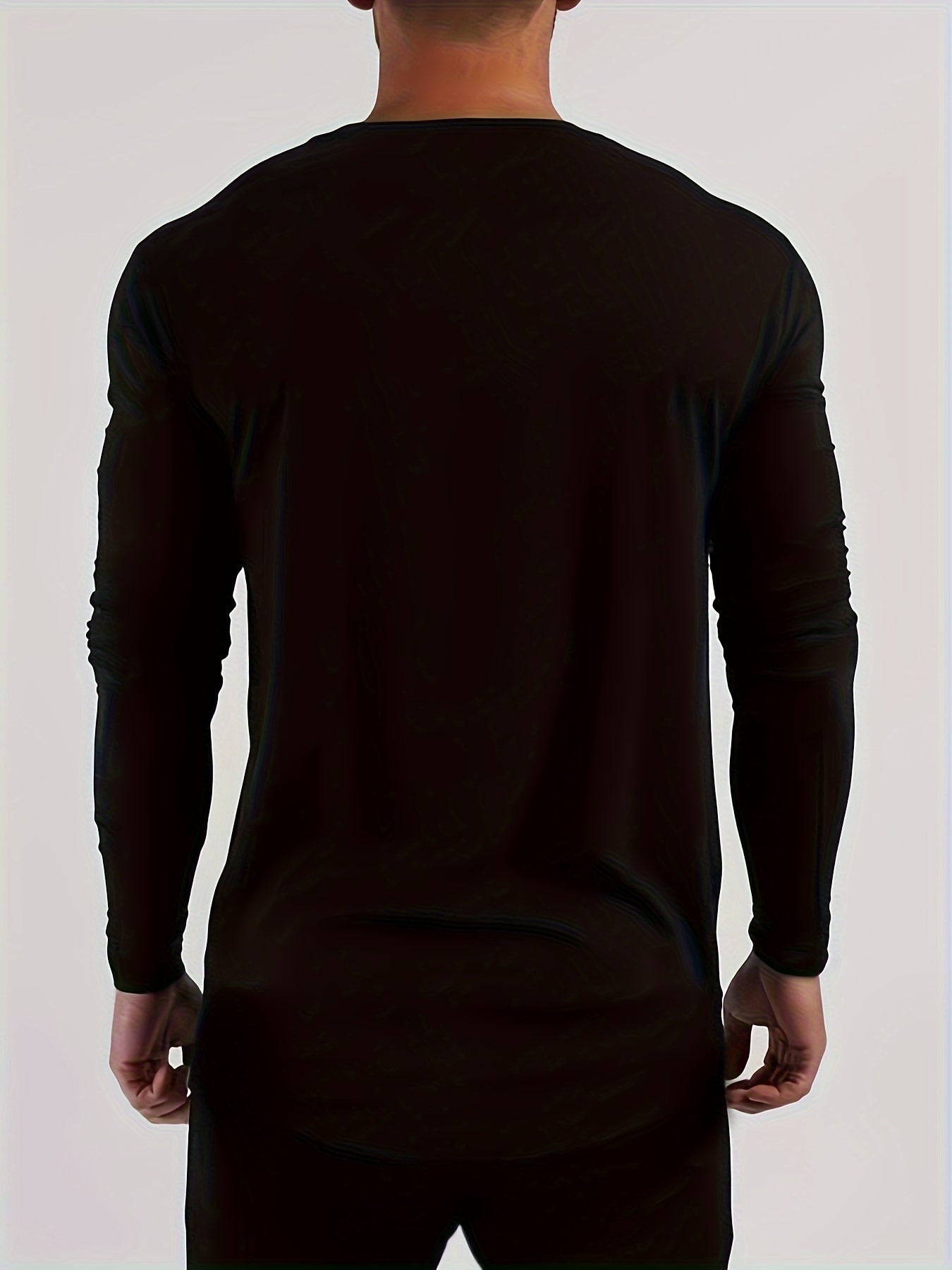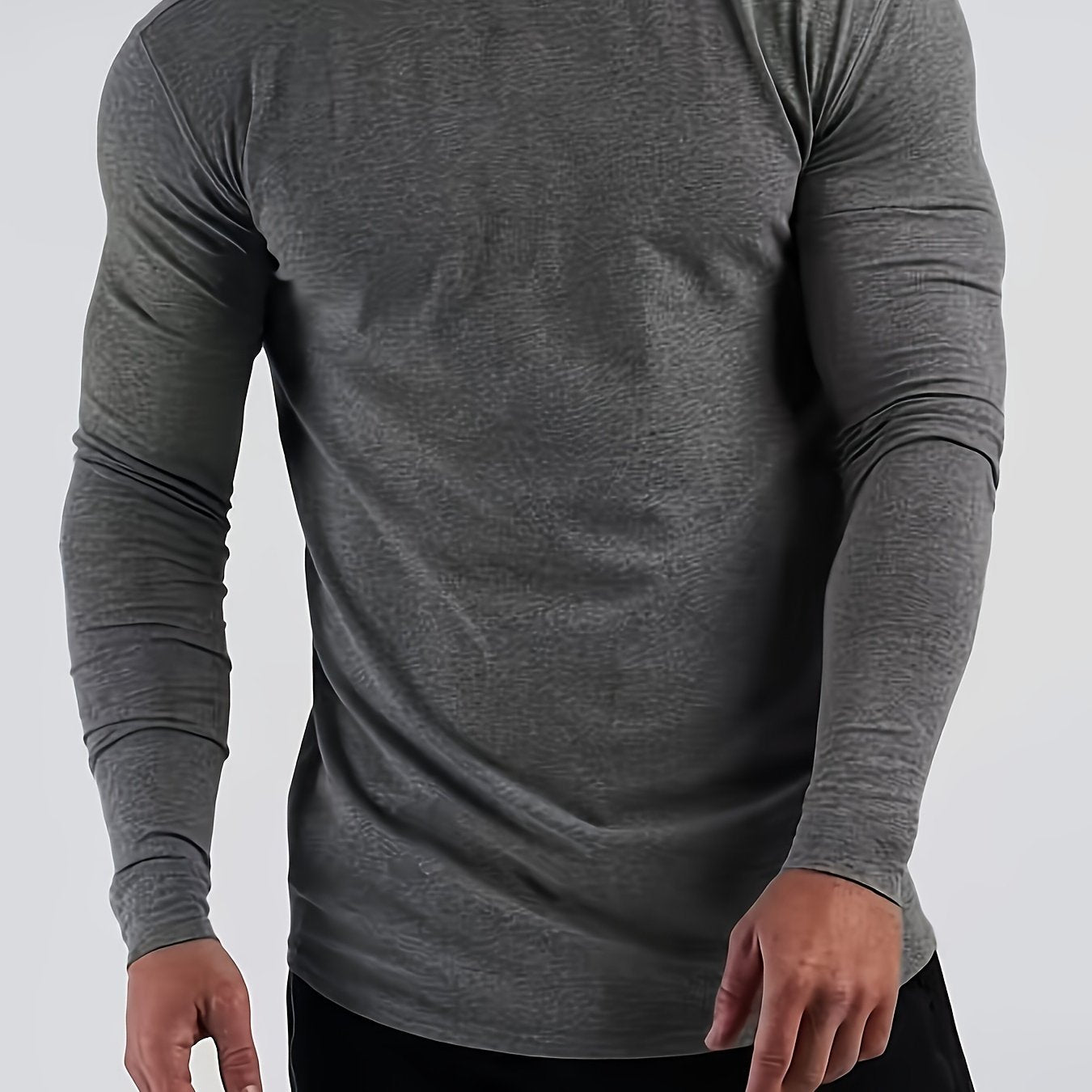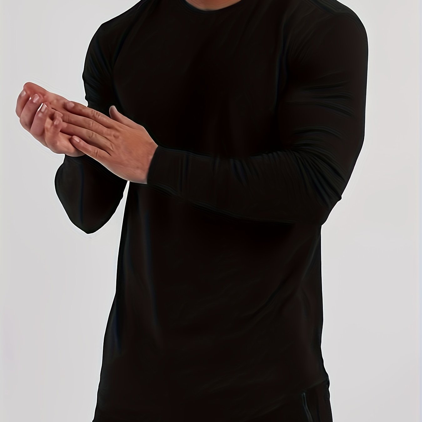 Տղամարդկանց երկարաթև միաձույլ գույնի բազային շերտով վերնաշապիկ - սպորտային ոճ, պոլիեսթեր, տրիկոտաժե գործվածք, կլոր վզով, բարակ, առանց գոտի, առանց դետալների, միջին առաձգականություն