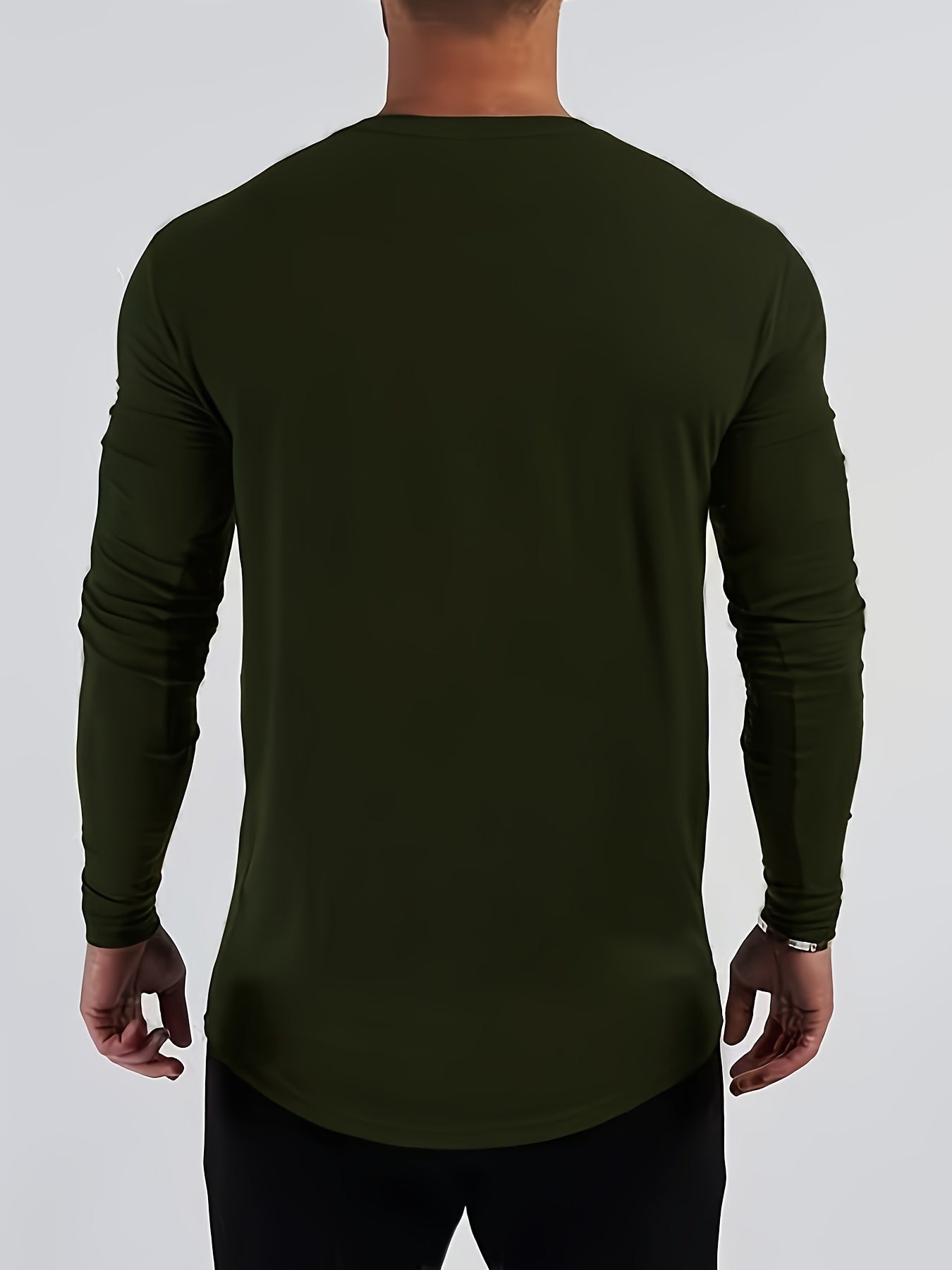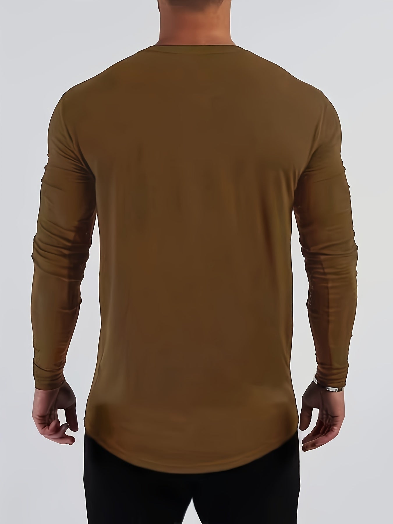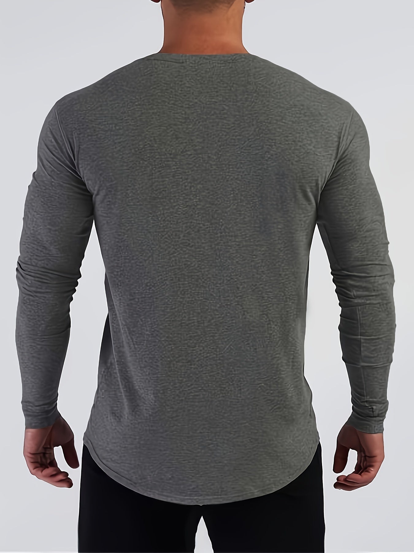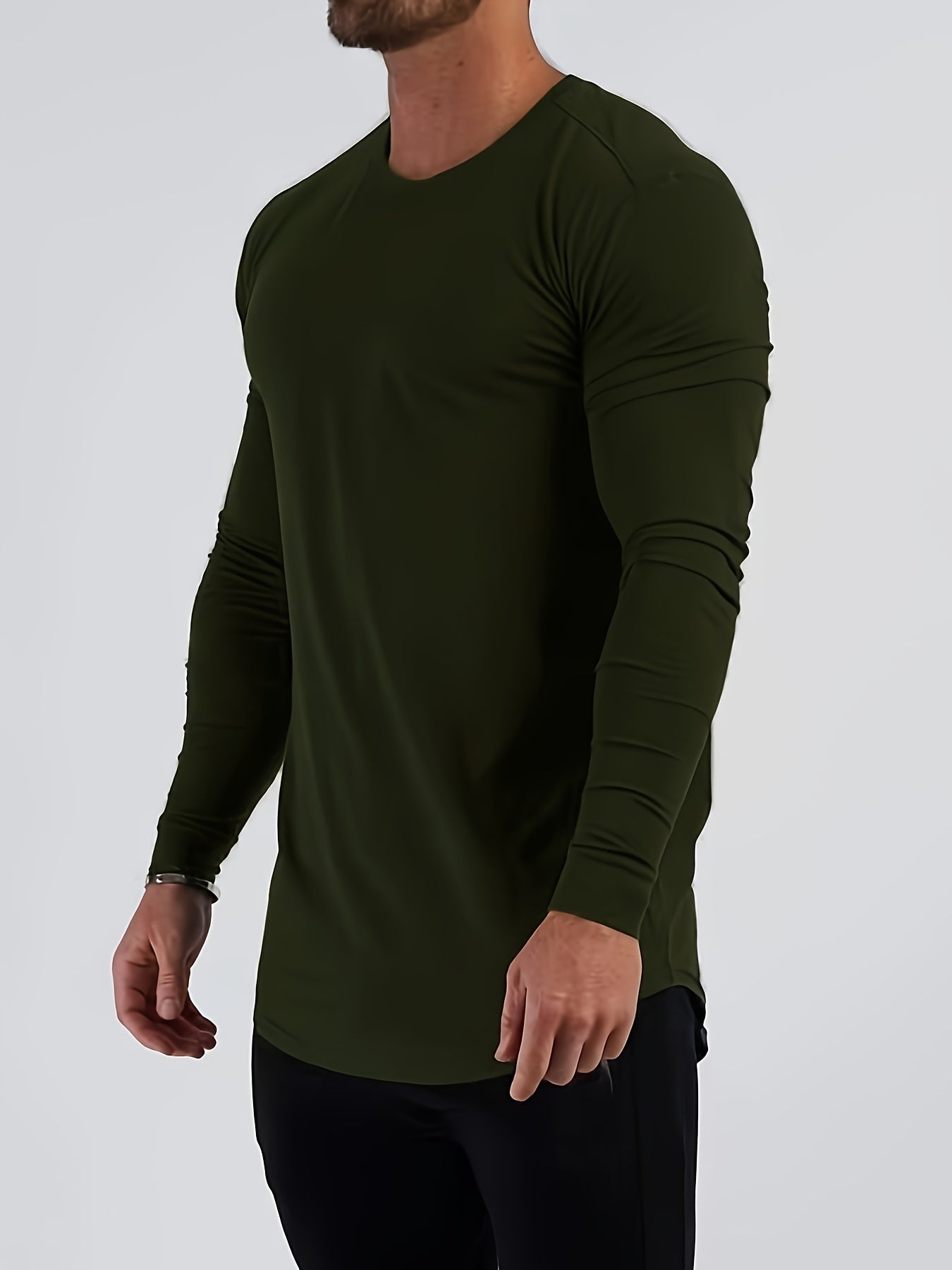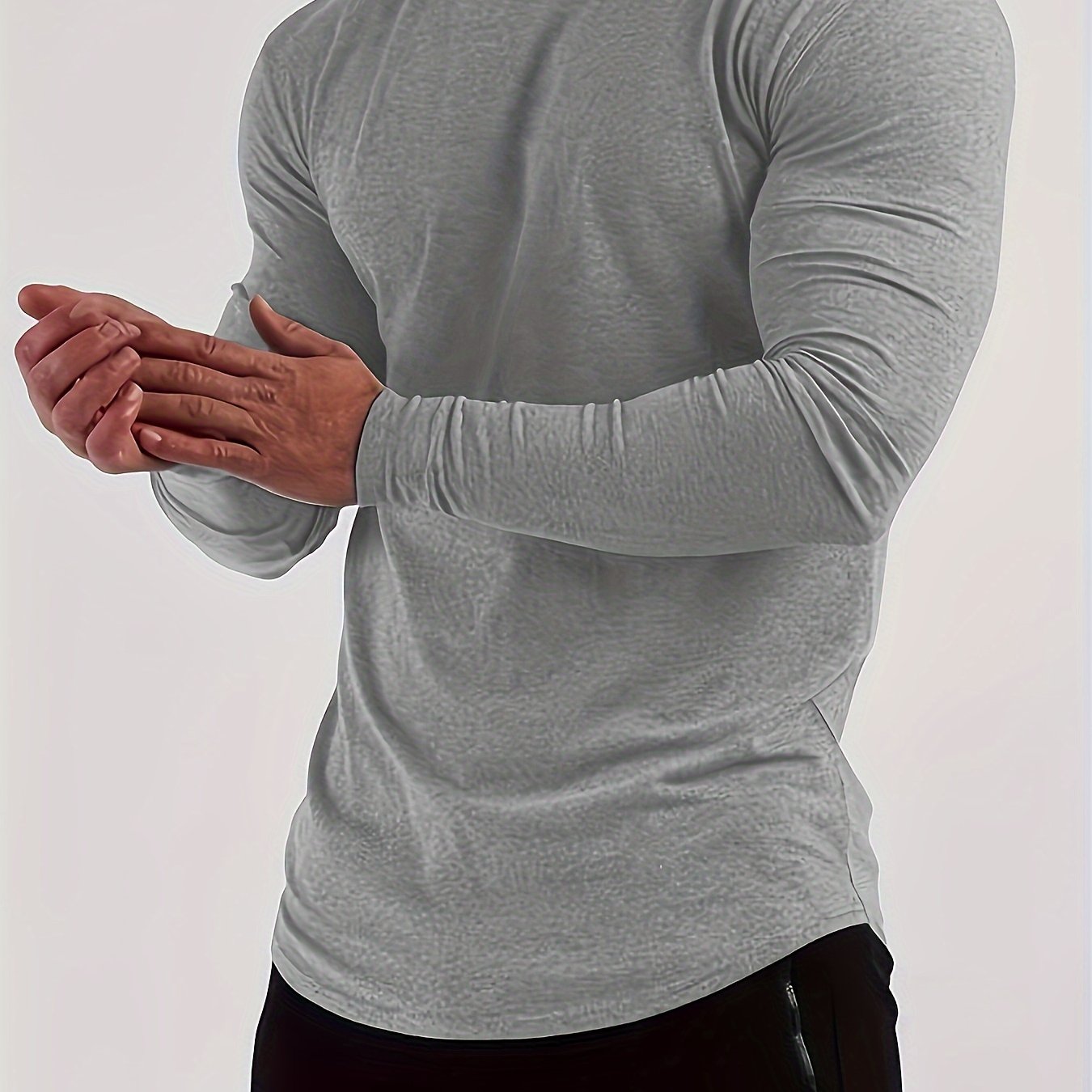 Տղամարդկանց երկարաթև միաձույլ գույնի բազային շերտով վերնաշապիկ - սպորտային ոճ, պոլիեսթեր, տրիկոտաժե գործվածք, կլոր վզով, բարակ, առանց գոտի, առանց դետալների, միջին առաձգականություն