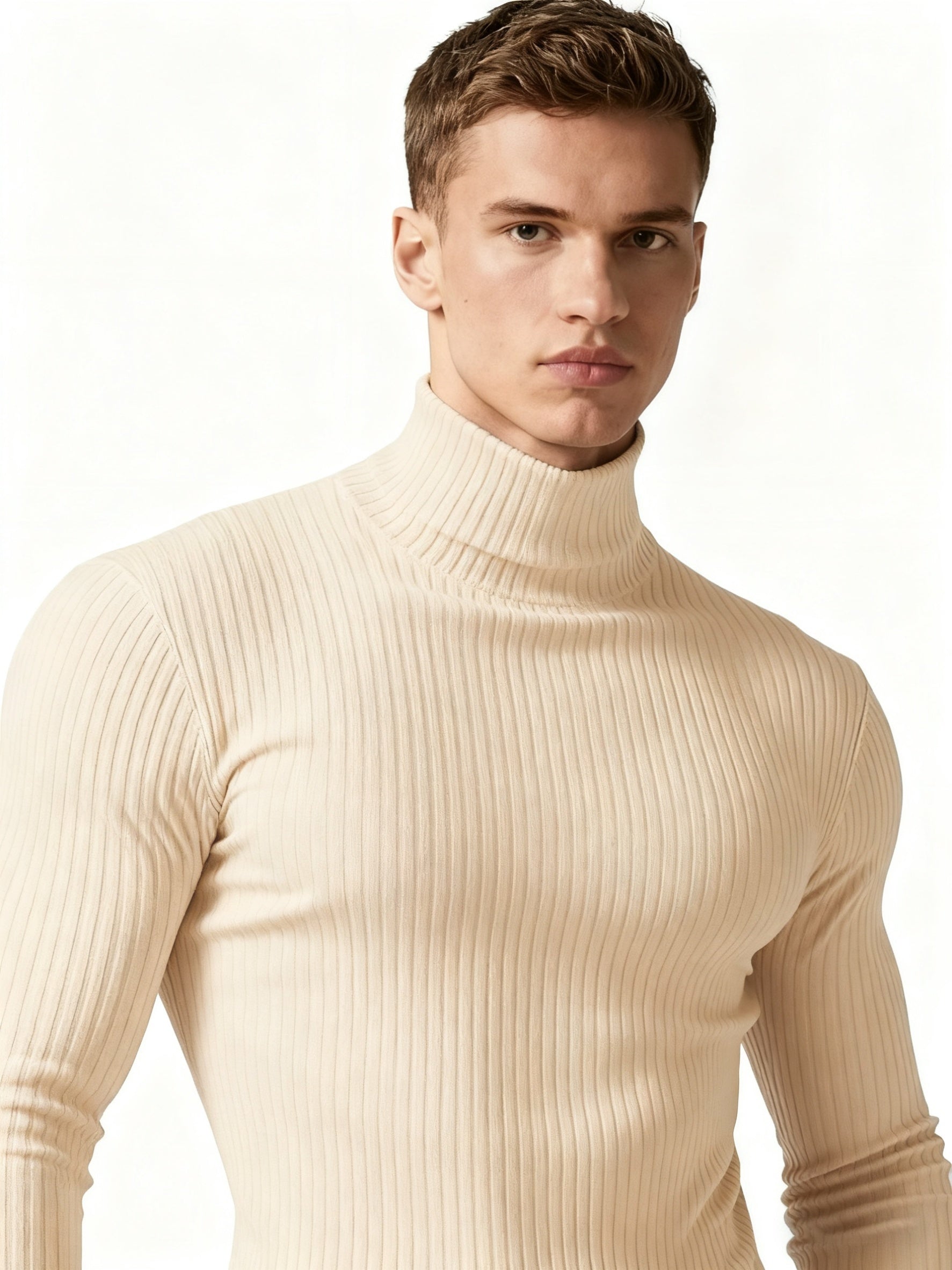 Տղամարդու երկարաթև սվիտեր աշնանային և նորաձև, բարձր օձիքով, տրիկոտաժե դիզայնով, ամենօրյա և նորաձև վերնազգեստի համար