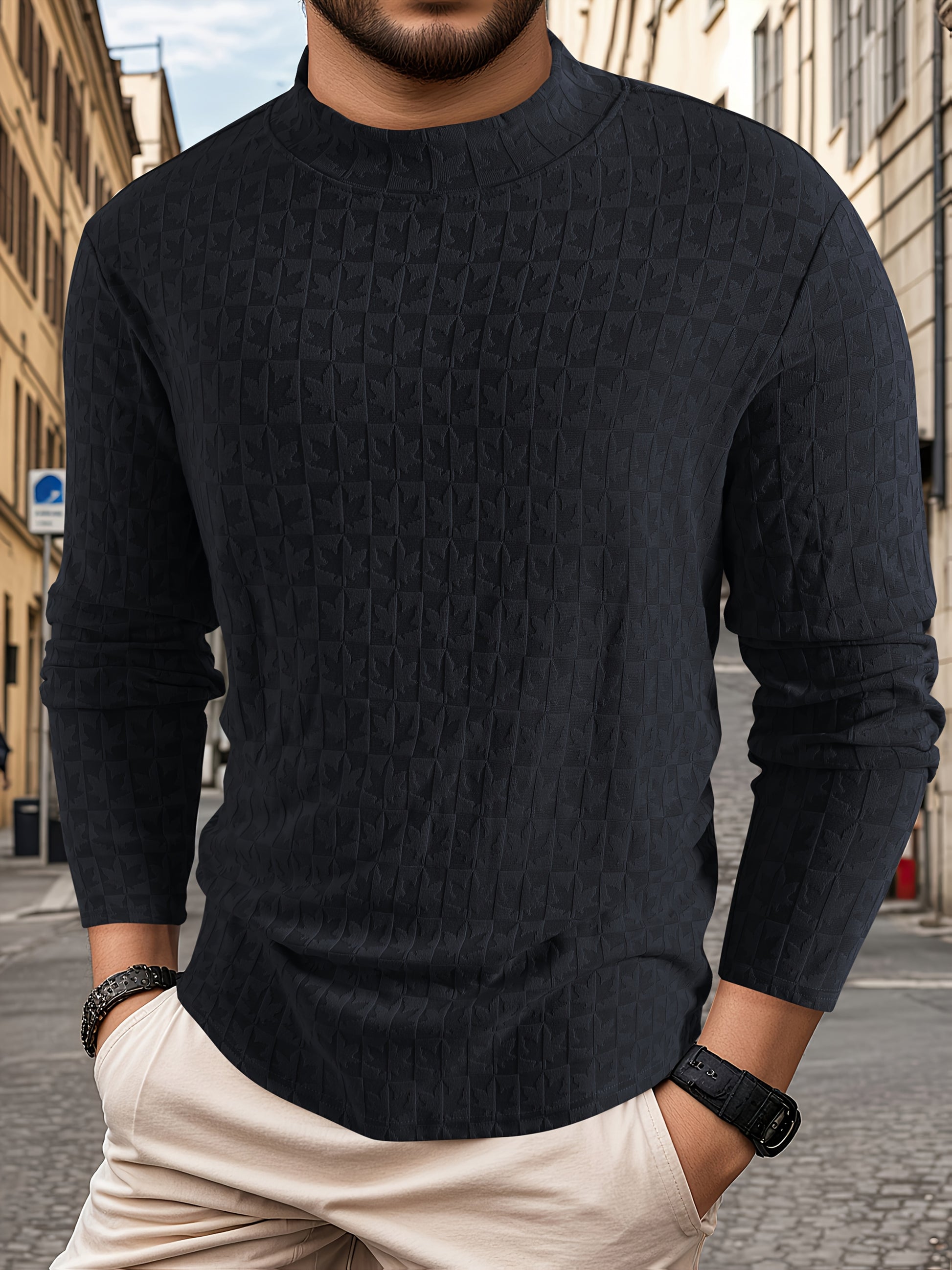Տղամարդու երկարաթև մարզաշապիկ կիսաբարձր օձիքով, առօրյա ժակարդե հիմք վերնաշապիկի համար, աշնանային և ձմռան համար նախատեսված ոճային և բարձրորակ վերնաշապիկ
