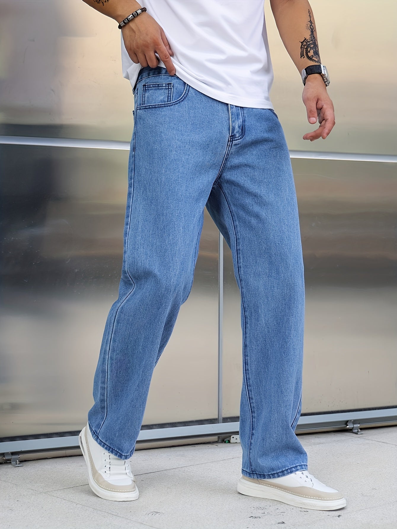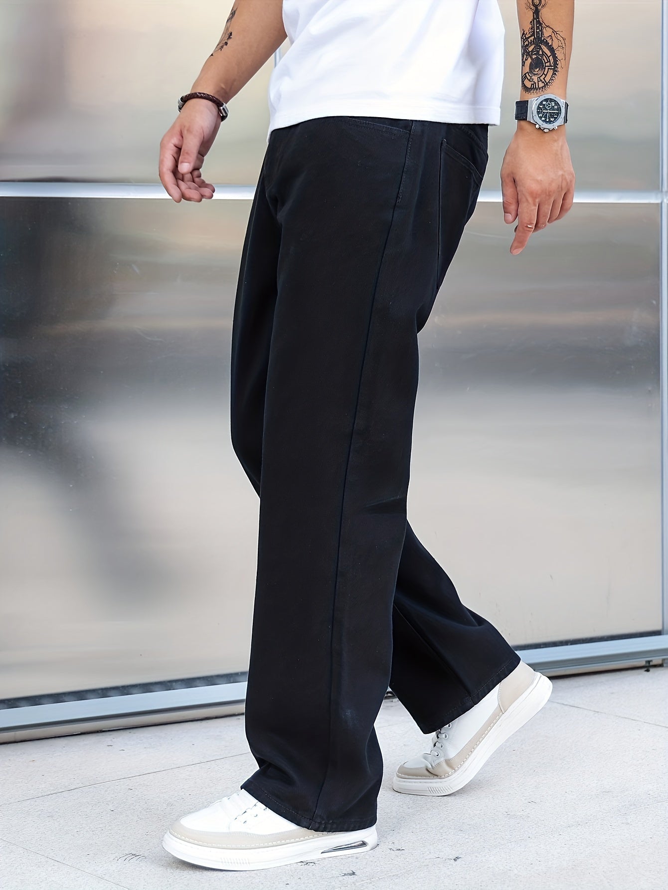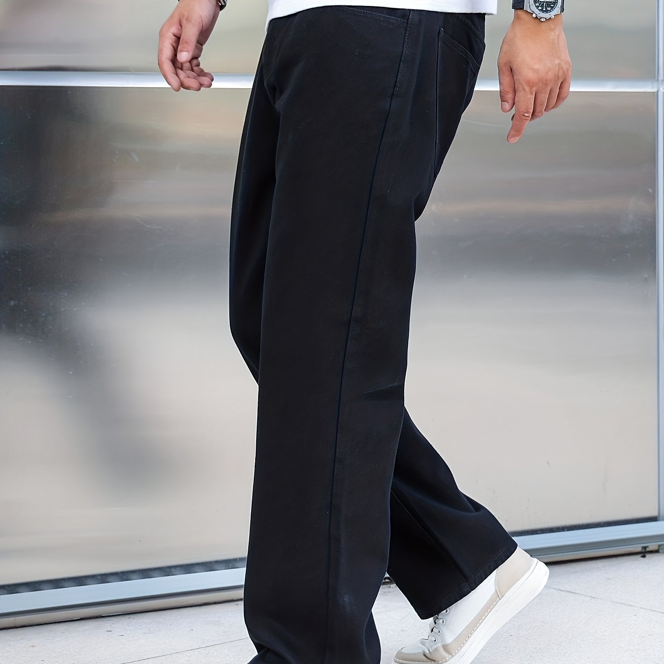 Տղամարդկանց լայն ոտքերի ջինսեր, փողոցային ոճի ձգվող պատահական տաբատ