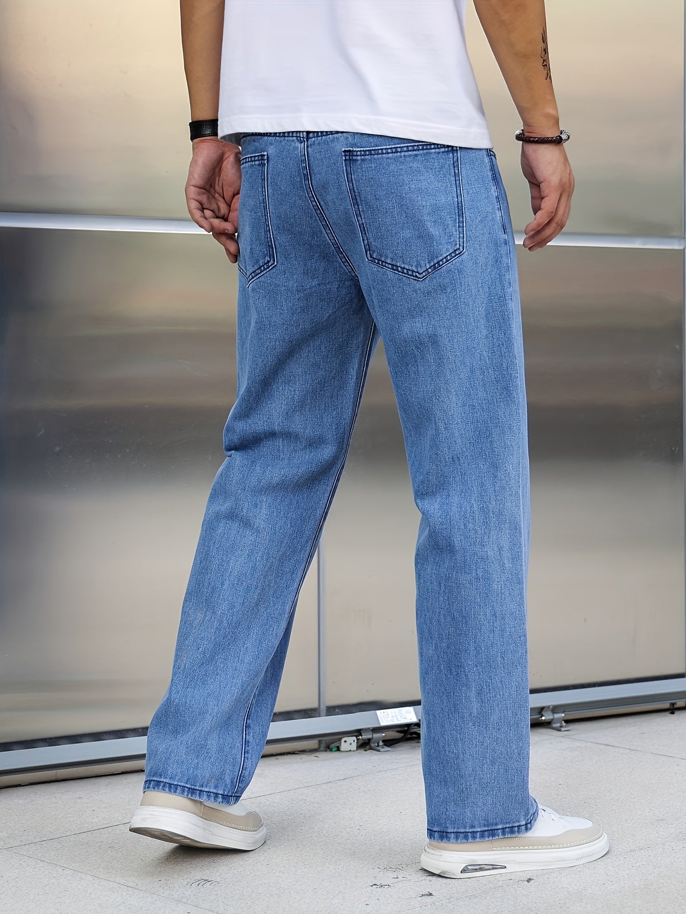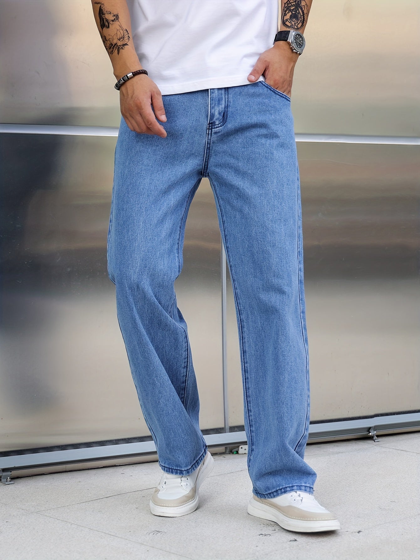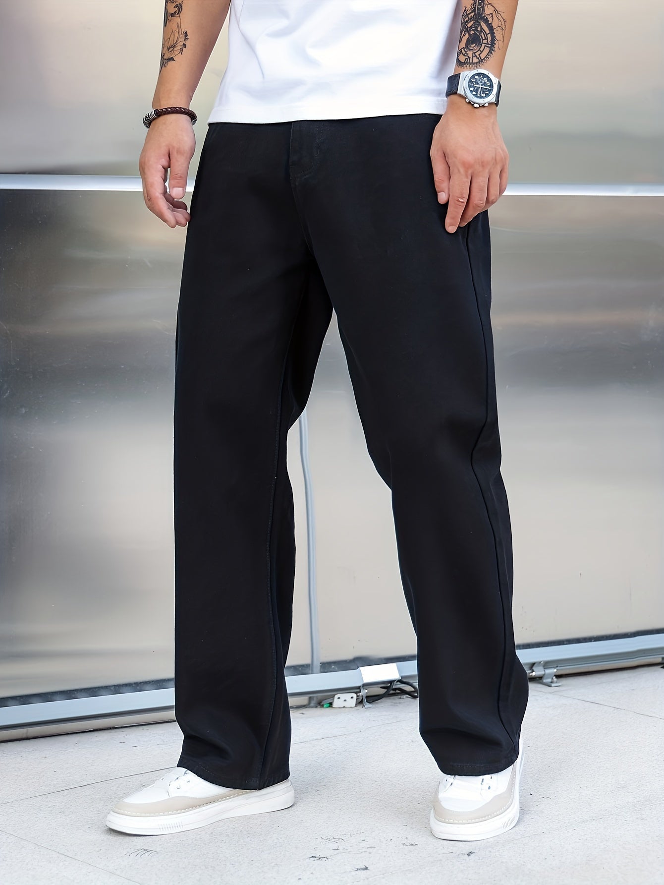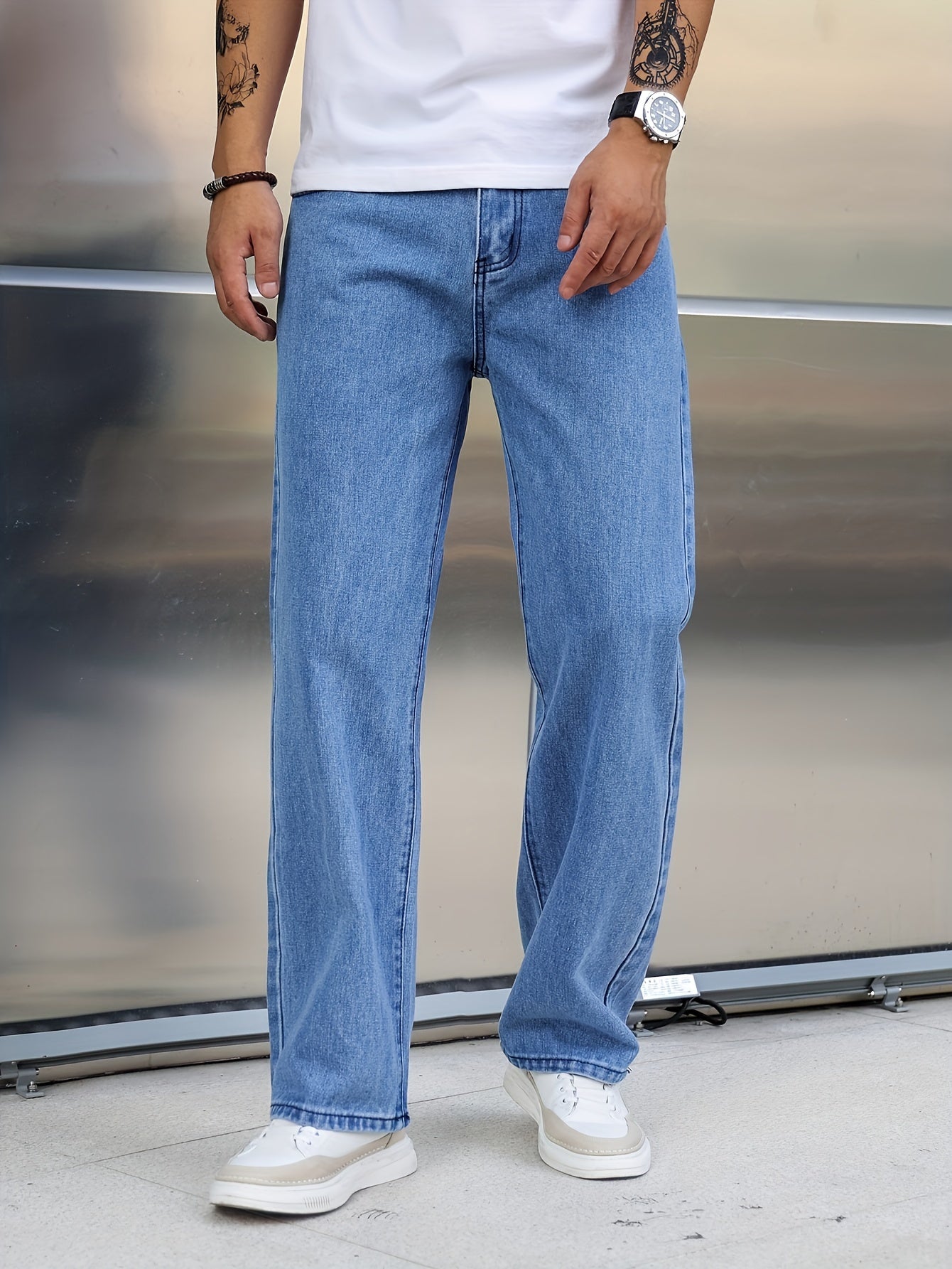 Տղամարդկանց լայն ոտքերի ջինսեր, փողոցային ոճի ձգվող պատահական տաբատ