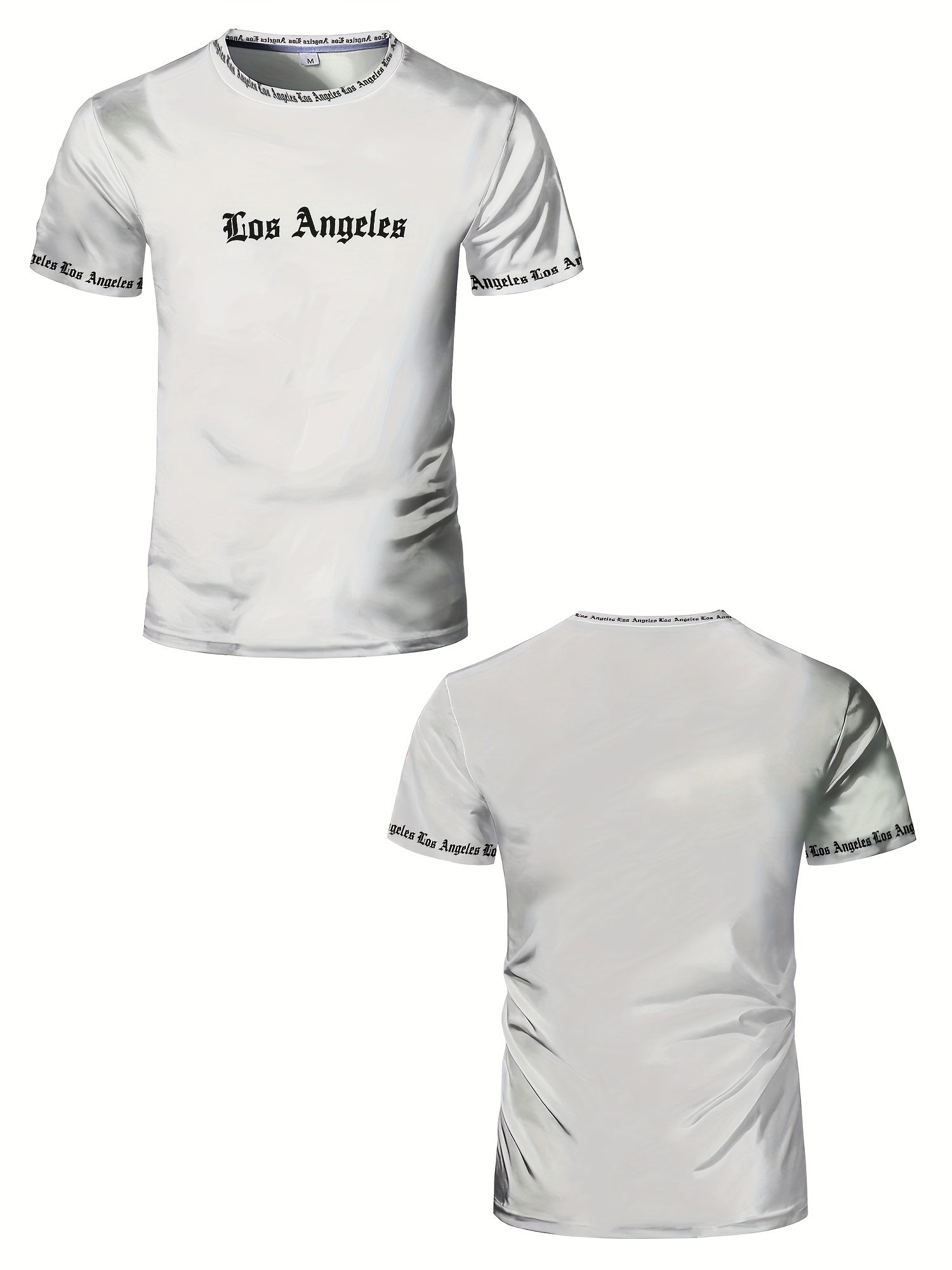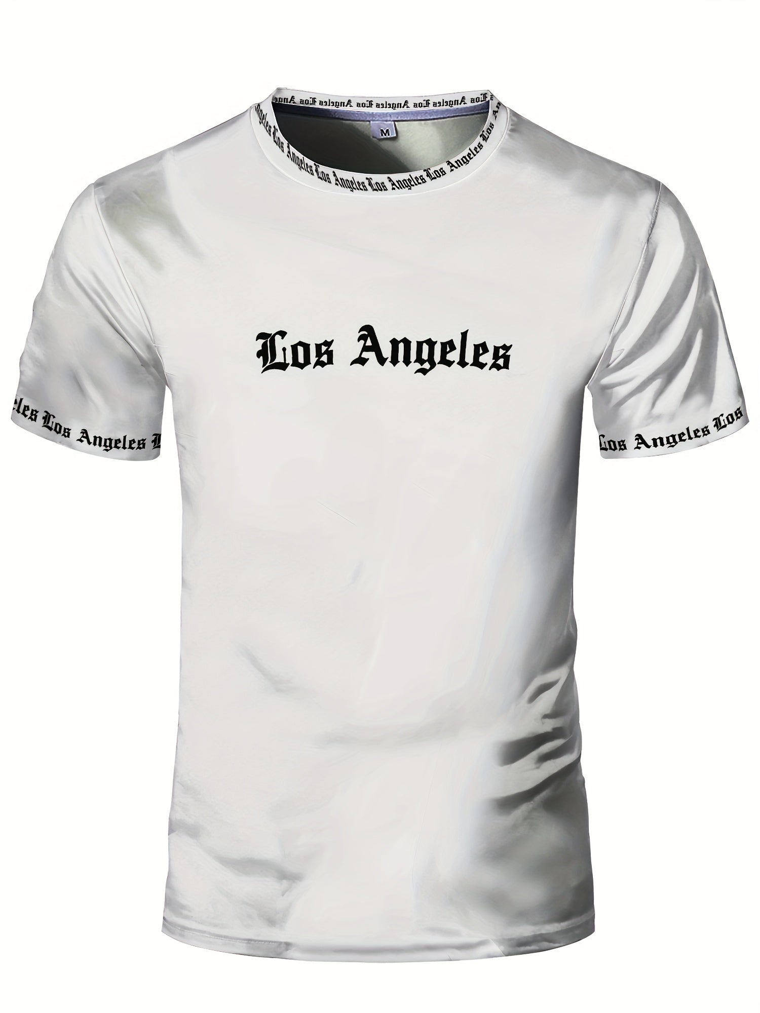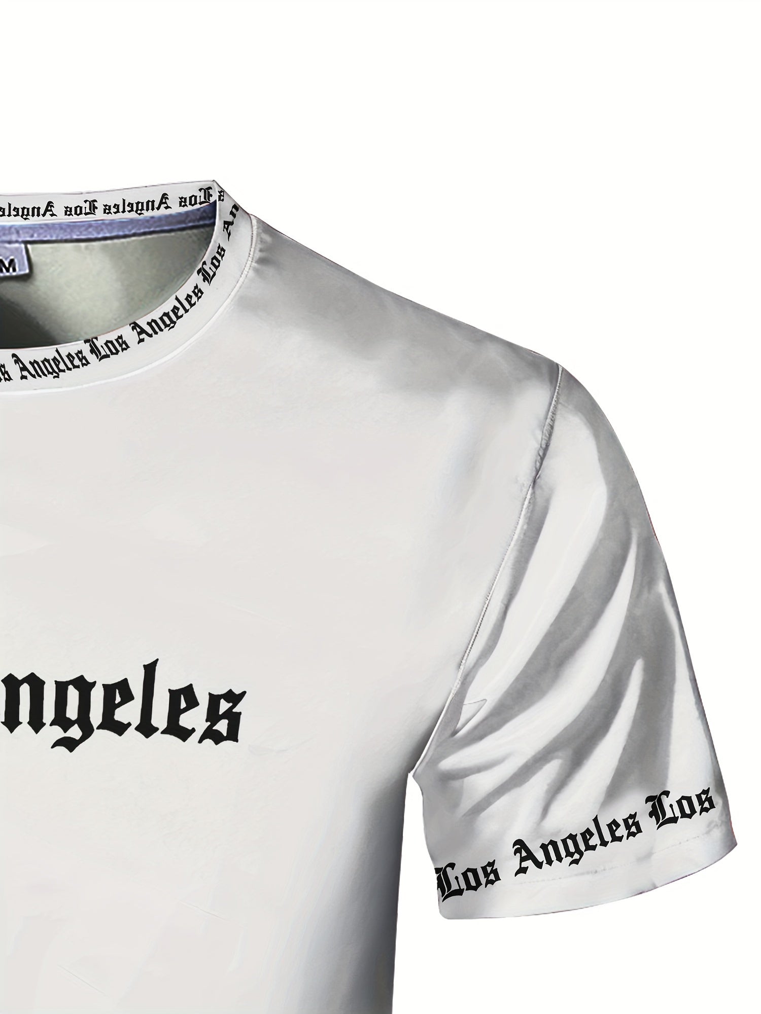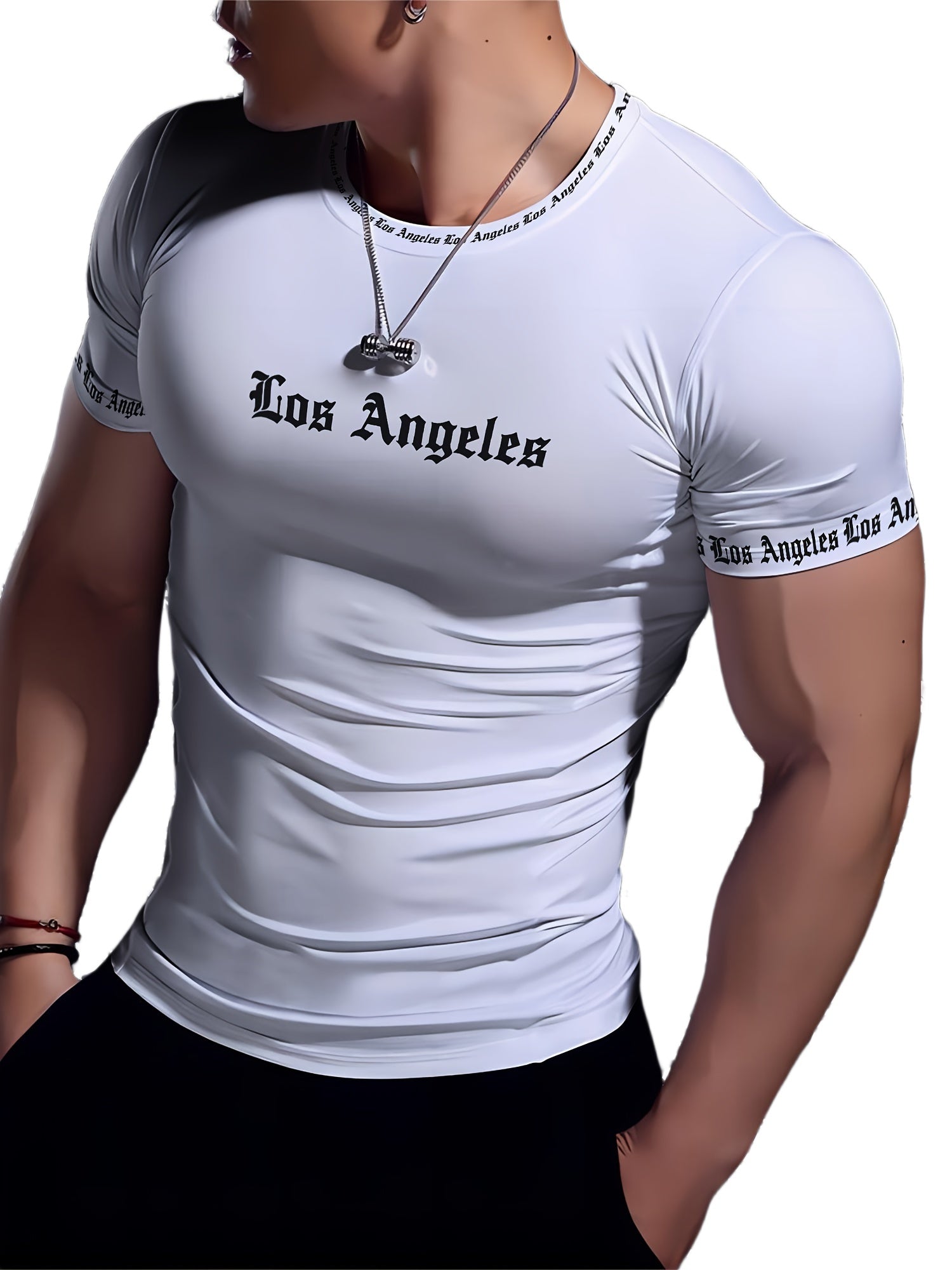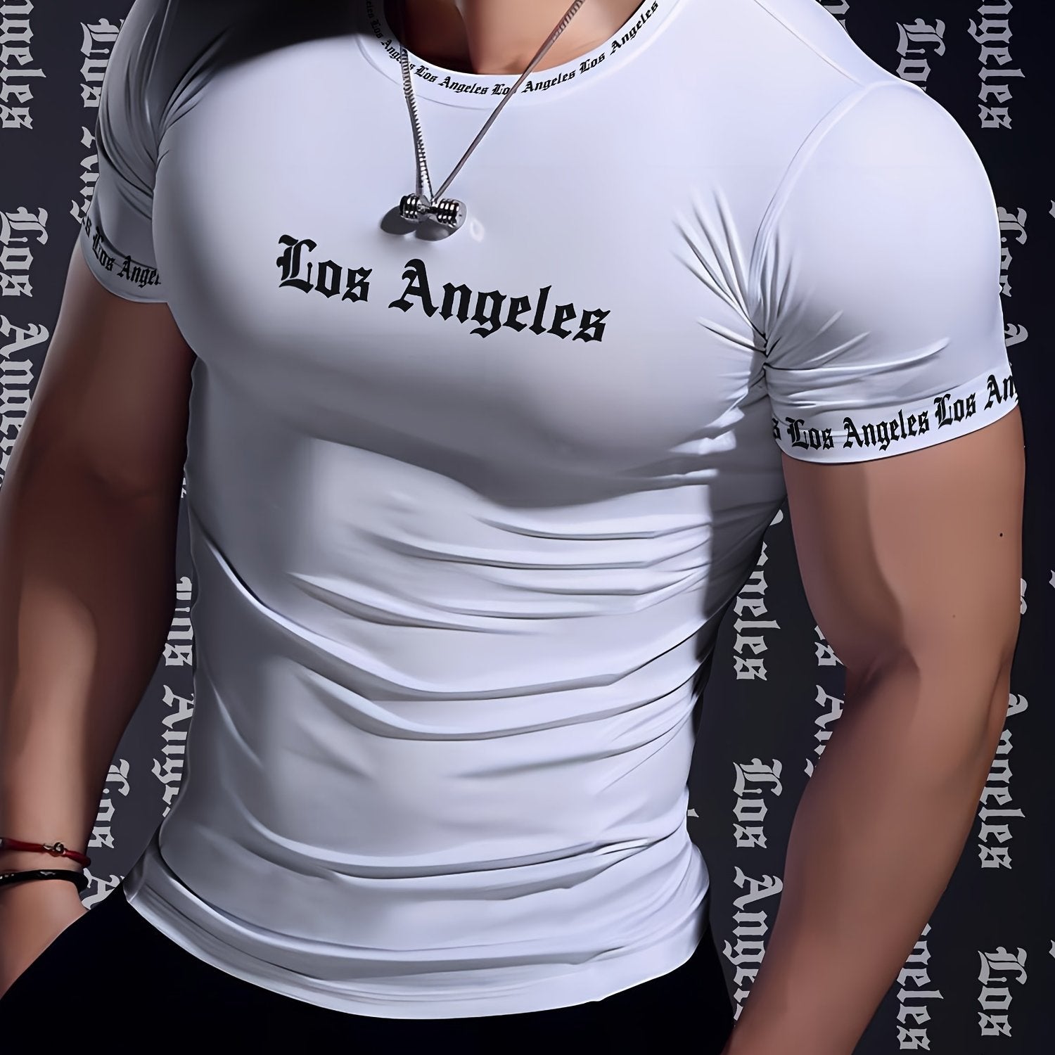 Տղամարդկանց Լոս Անջելեսի տպագիր մկանային շապիկ՝ շնչող և արագ չորացող, բարձր առաձգականություն մարզասրահի, վազքի և հեծանվավազքի համար, սպիտակ սև տառերով, պոլիեսթեր և սպանդեքս խառնուրդ