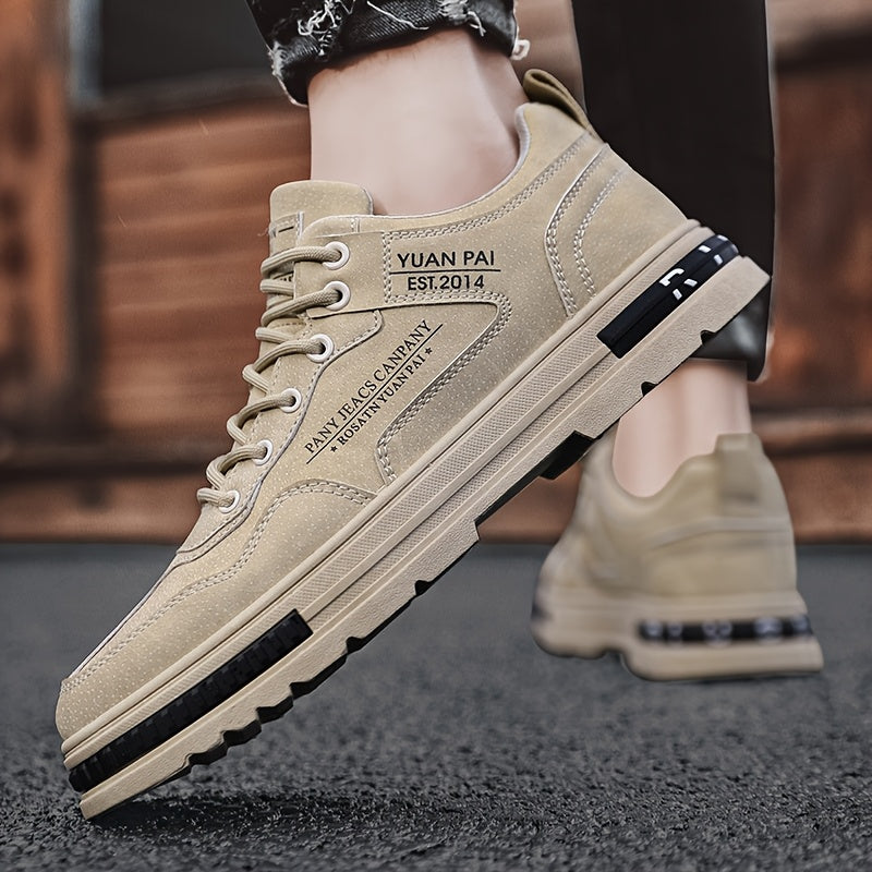 Տղամարդկանց ցածր վերնաշապիկով բացօթյա չմուշկներով կոշիկներ՝ նորաձև և հարմարավետ ժանյակավոր սպորտային կոշիկներ՝ երկարակյաց PU վերին և PVC տակացուով, տառերով սպորտի և ժամանցի համար