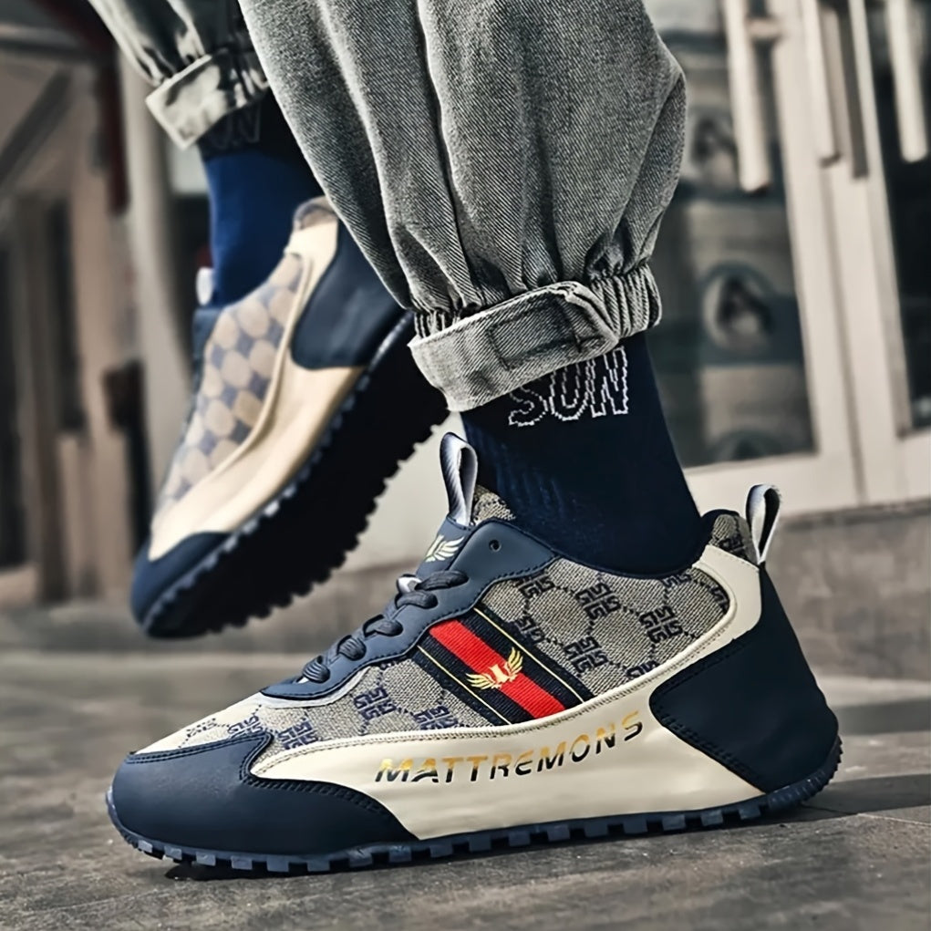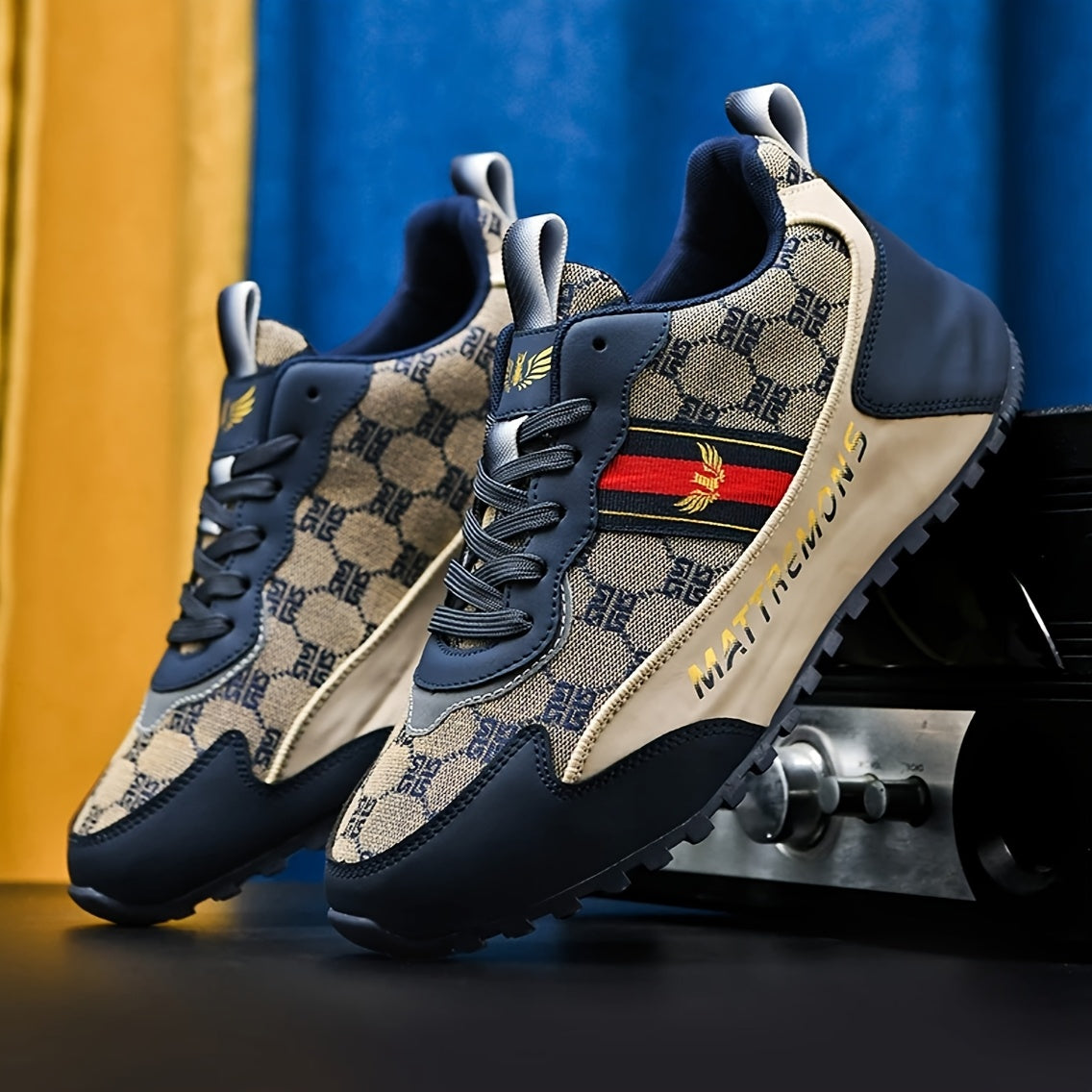 Men'S Luxury High-Top Sneakers - Stylish Black Beige Design with Golden Accents, Lace-Up Casual Shoes for Spring/Fall, Comfortable Fabric Upper Rubber Sole, Everyday Footwear Luxury Sneakers Rubber Sole Sneakers
