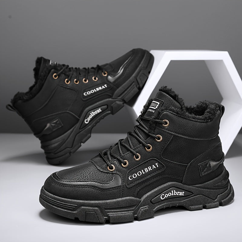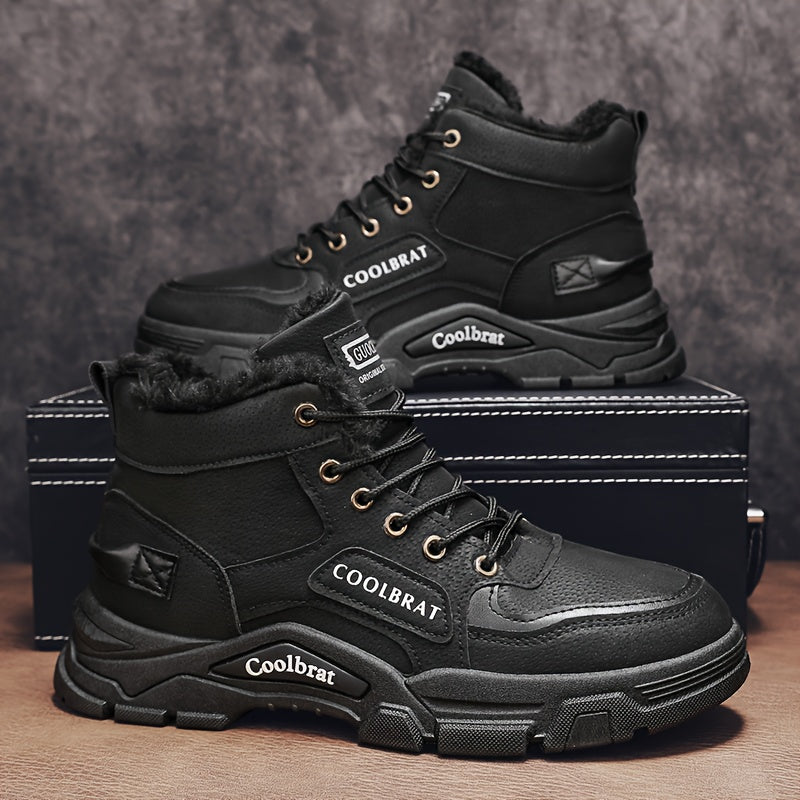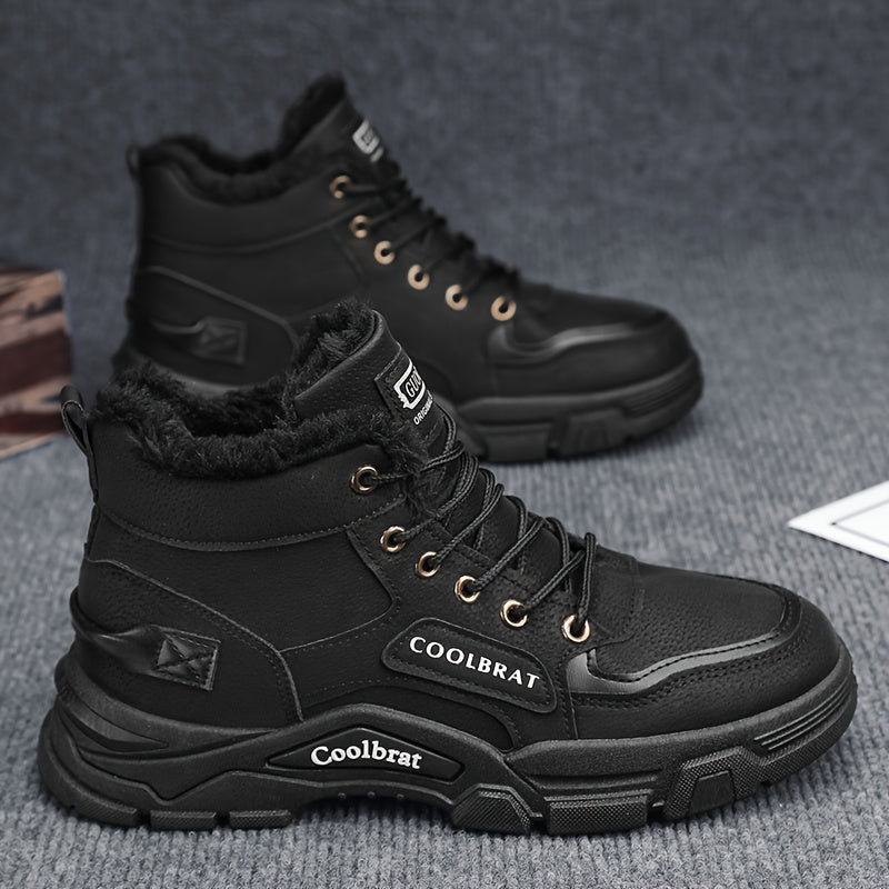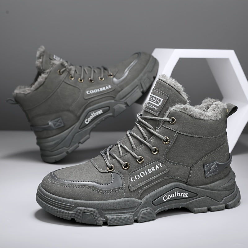 Տղամարդու միջին սրունքի ձմեռային կոշիկներ՝ օձիքով և փափուկ կտորով - ամուր պոլիուրեթանային վերին մաս, պոլիվինիլքլորիդային ներբան, կապիչներով կոճ՝ նախատեսված բացօթյա, ամենօրյա և մարզասրահի համար - բեժ/դեղնավուն (տաք, ցուրտ եղանակի արշավային կոշիկներ)