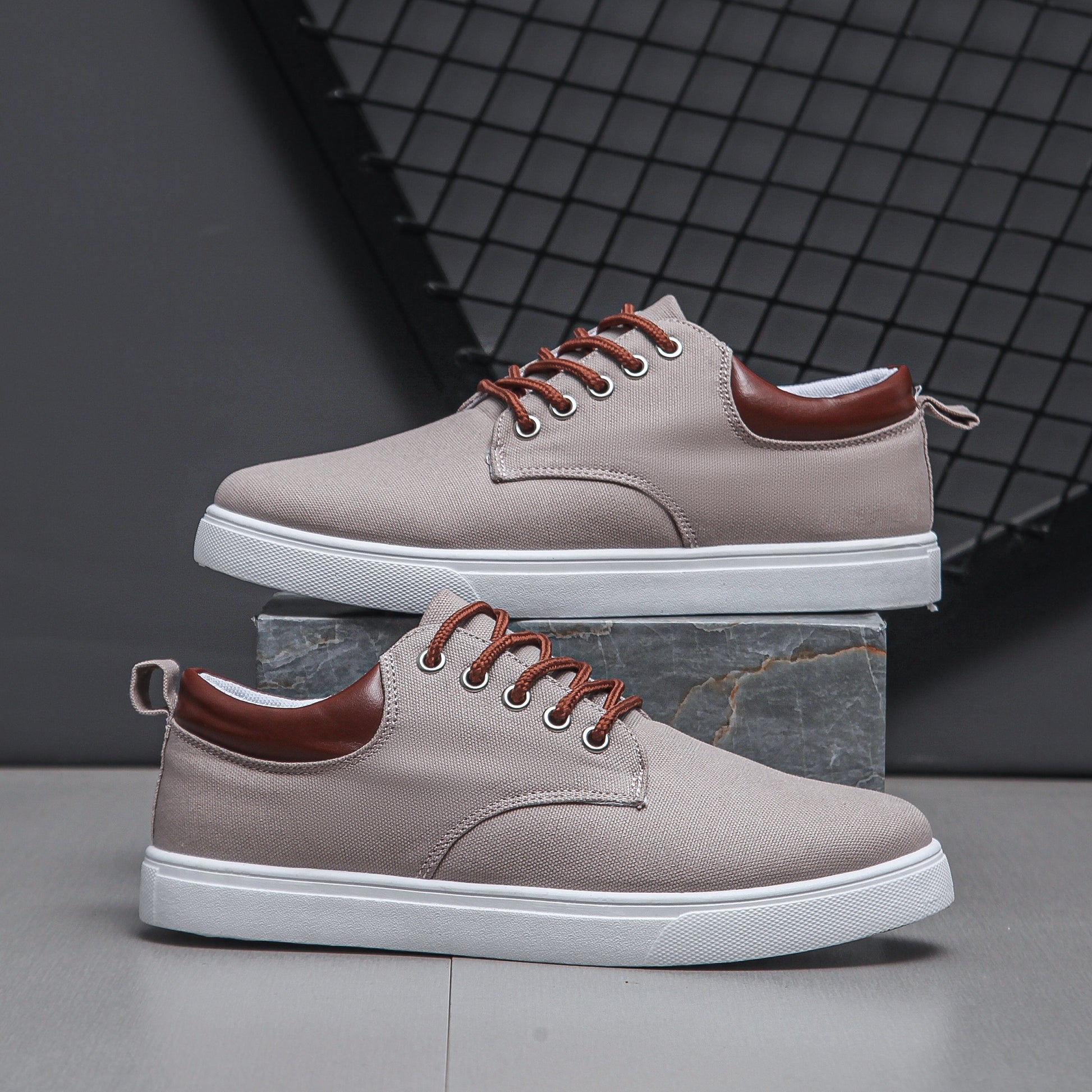 Men's Navy Blue Canvas Sneakers - Breathable, Durable, Non-Slip Casual Shoes with Brown Accents & White Sole - Perfect for Spring, Summer, and Fall Outdoor Wear, Everyday Sneakers | Casual Sporty Look | Breathable Canvas Uppe