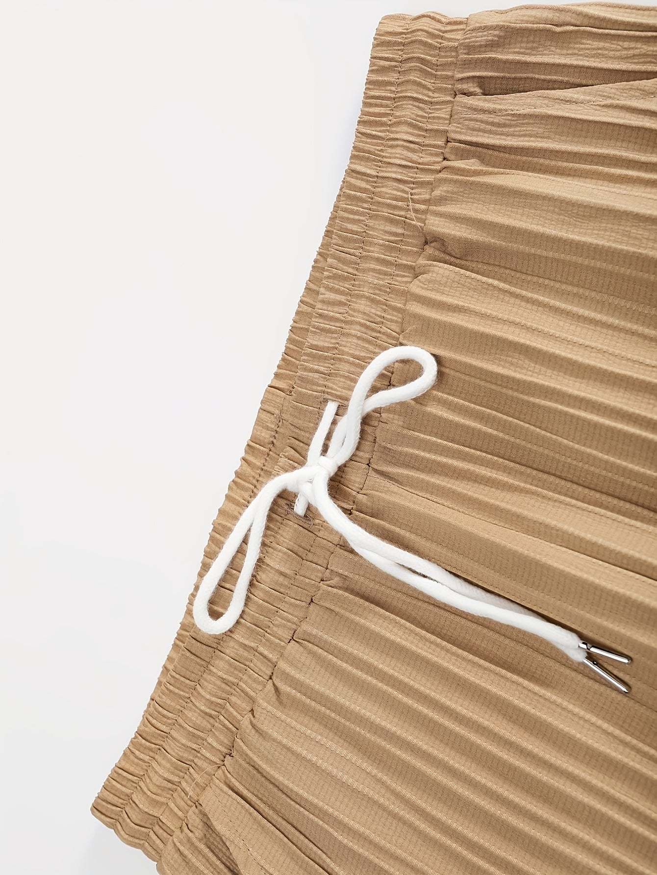 Տղամարդկանց նորաձև հյուսվածքային ալիքաձև շերտավոր կարճ թևքերով երկար տաբատ՝ առօրյա կոստյումով